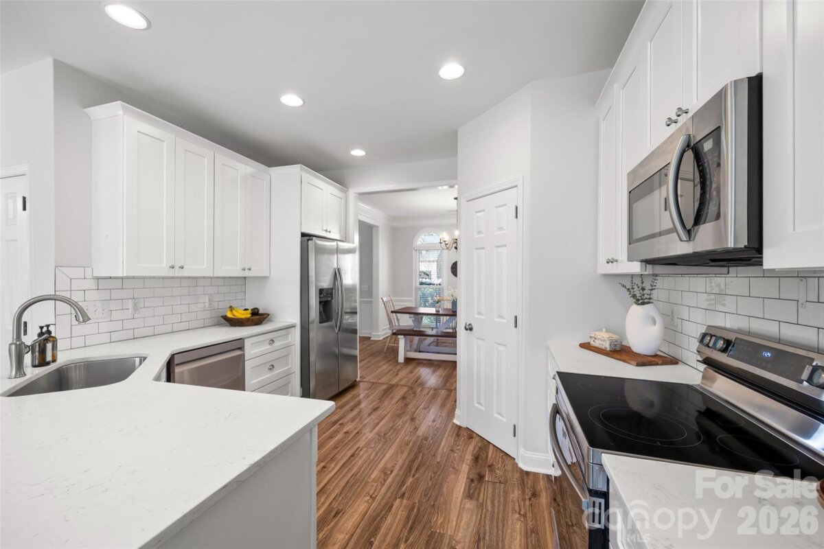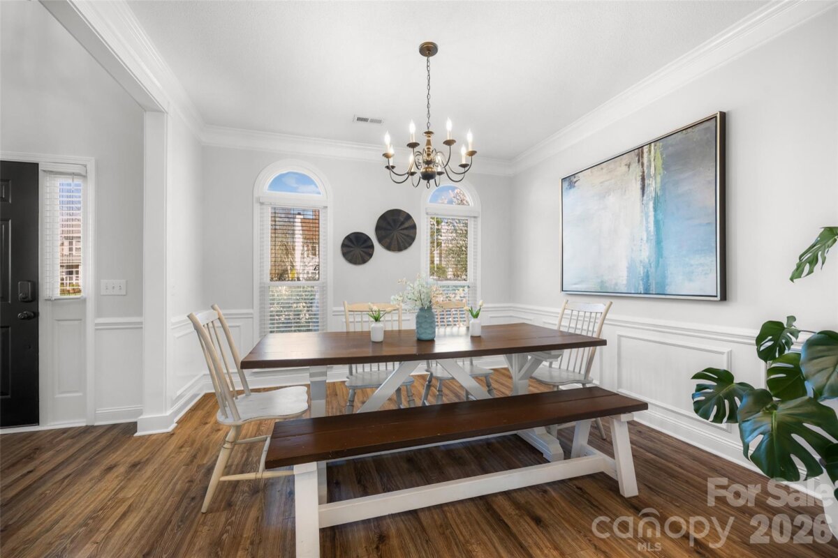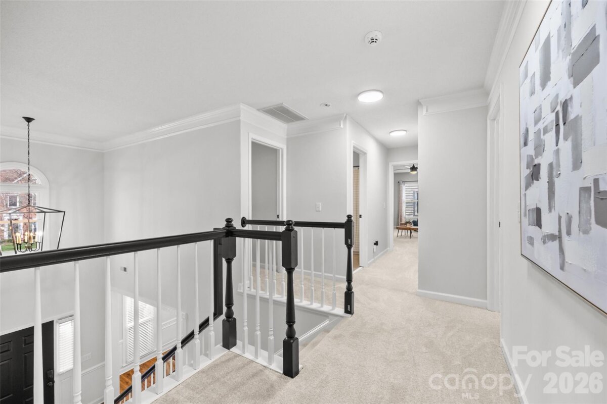 This is the one you’ve been waiting for — a great house on one of the best lots in highly desirable Landen Meadows! Freshly painted with new carpet upstairs, an updated kitchen and primary bath, modern lighting and NEW WINDOWS throughout in 2020, this home is truly move-in ready. Step inside to a bright, open floorplan filled with natural light. The updated kitchen is the heart of the home, featuring quartz countertops, tile backsplash, soft-close cabinetry, a custom walk-in pantry, and a coffee bar with beverage fridge in the sunny morning room. Shiplap accent walls in the family room and morning room add warmth and character, creating the perfect space to relax or entertain. A dedicated office on the main level provides the ideal work-from-home space. All bedrooms are located upstairs, including a spacious fourth bedroom that offers great flexibility for a playroom, media room, or additional living space. The primary suite features wood floors and a beautifully updated modern bath with frameless shower, freestanding tub, dual vanities, and a large walk-in closet. Outside, enjoy a level lot with a fantastic backyard and plenty of space to play. The home backs to a large HOA common area and wooded backdrop, providing extra privacy and a peaceful setting. Landen Meadows is a hidden gem — an established neighborhood with mature trees, walkable to Blakeney and zoned for top-rated schools. Community amenities include a pool (yes, there’s a swim team!), new pickleball courts, and a playground, all with low HOA dues. Enjoy the perfect combination of neighborhood charm, outdoor space, and unbeatable convenience to shopping, dining, and everything Ballantyne has to offer. Don’t miss your chance to call this special home yours!