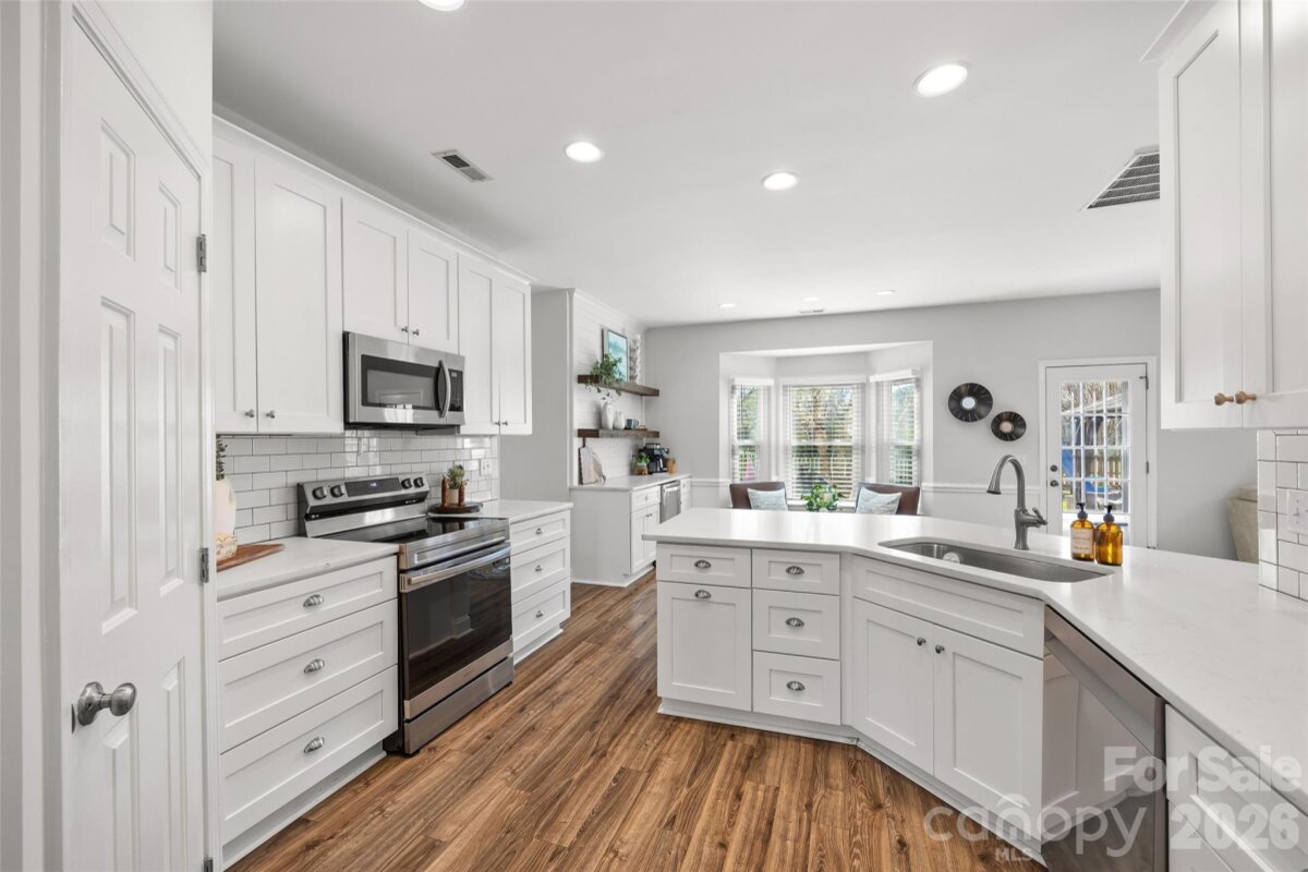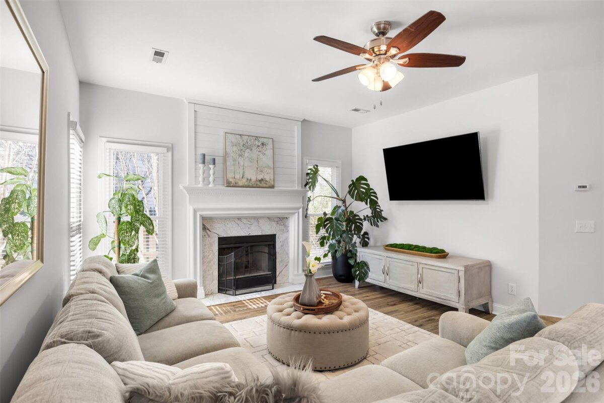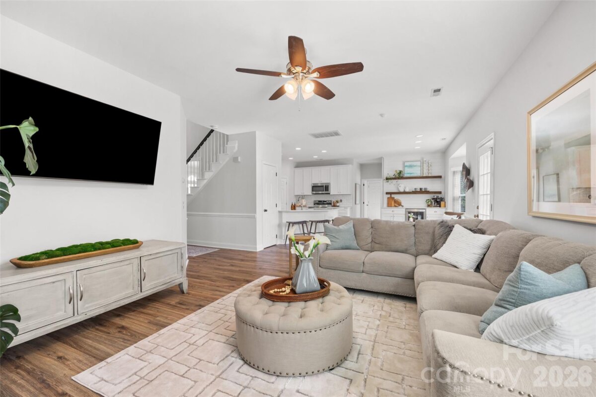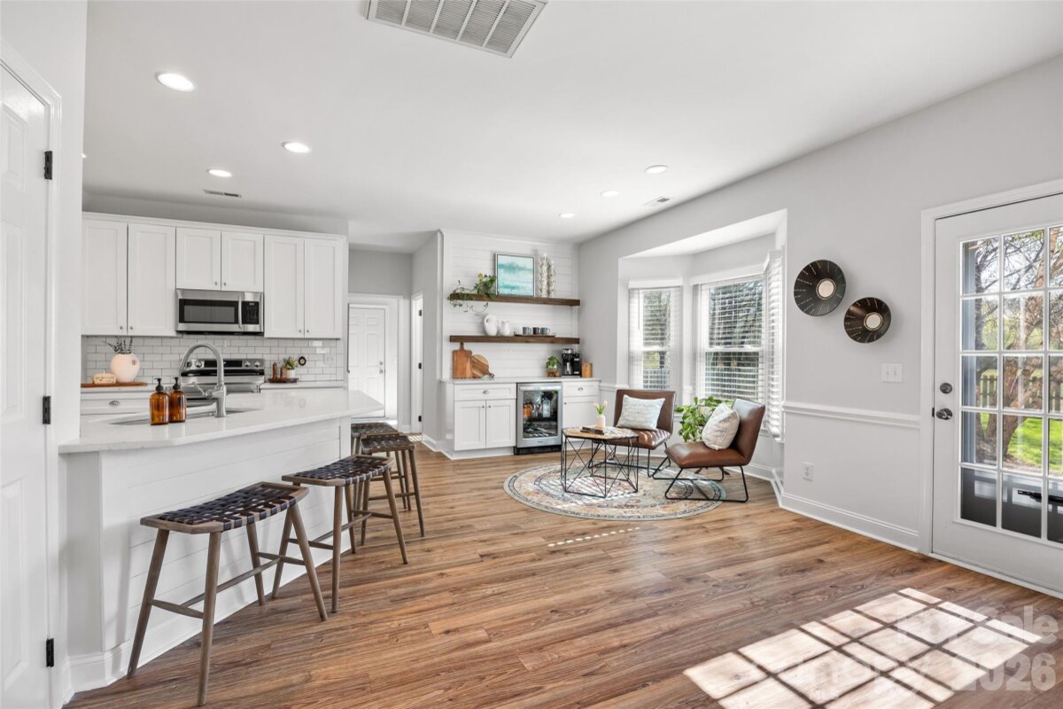 This is the one you’ve been waiting for — a great house on one of the best lots in highly desirable Landen Meadows! Freshly painted with new carpet upstairs, an updated kitchen and primary bath, modern lighting and NEW WINDOWS throughout in 2020, this home is truly move-in ready. Step inside to a bright, open floorplan filled with natural light. The updated kitchen is the heart of the home, featuring quartz countertops, tile backsplash, soft-close cabinetry, a custom walk-in pantry, and a coffee bar with beverage fridge in the sunny morning room. Shiplap accent walls in the family room and morning room add warmth and character, creating the perfect space to relax or entertain. A dedicated office on the main level provides the ideal work-from-home space. All bedrooms are located upstairs, including a spacious fourth bedroom that offers great flexibility for a playroom, media room, or additional living space. The primary suite features wood floors and a beautifully updated modern bath with frameless shower, freestanding tub, dual vanities, and a large walk-in closet. Outside, enjoy a level lot with a fantastic backyard and plenty of space to play. The home backs to a large HOA common area and wooded backdrop, providing extra privacy and a peaceful setting. Landen Meadows is a hidden gem — an established neighborhood with mature trees, walkable to Blakeney and zoned for top-rated schools. Community amenities include a pool (yes, there’s a swim team!), new pickleball courts, and a playground, all with low HOA dues. Enjoy the perfect combination of neighborhood charm, outdoor space, and unbeatable convenience to shopping, dining, and everything Ballantyne has to offer. Don’t miss your chance to call this special home yours!