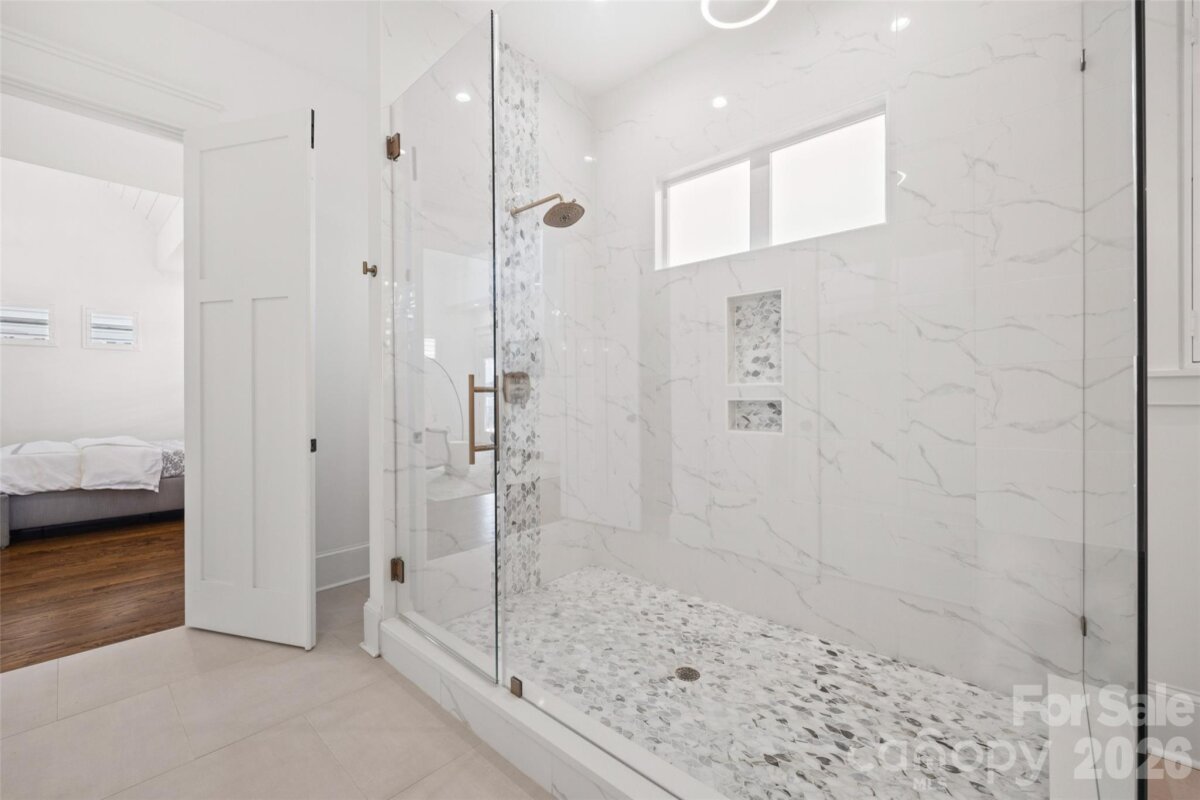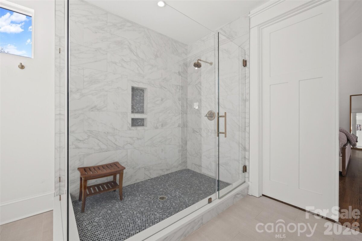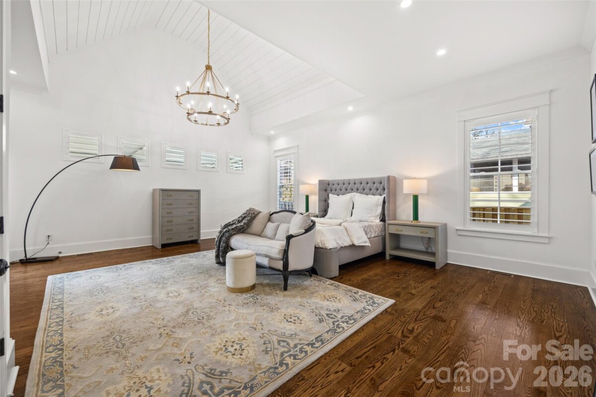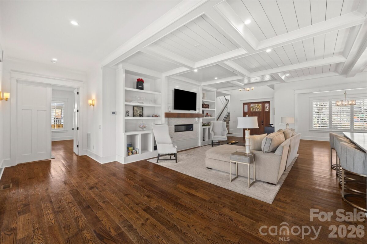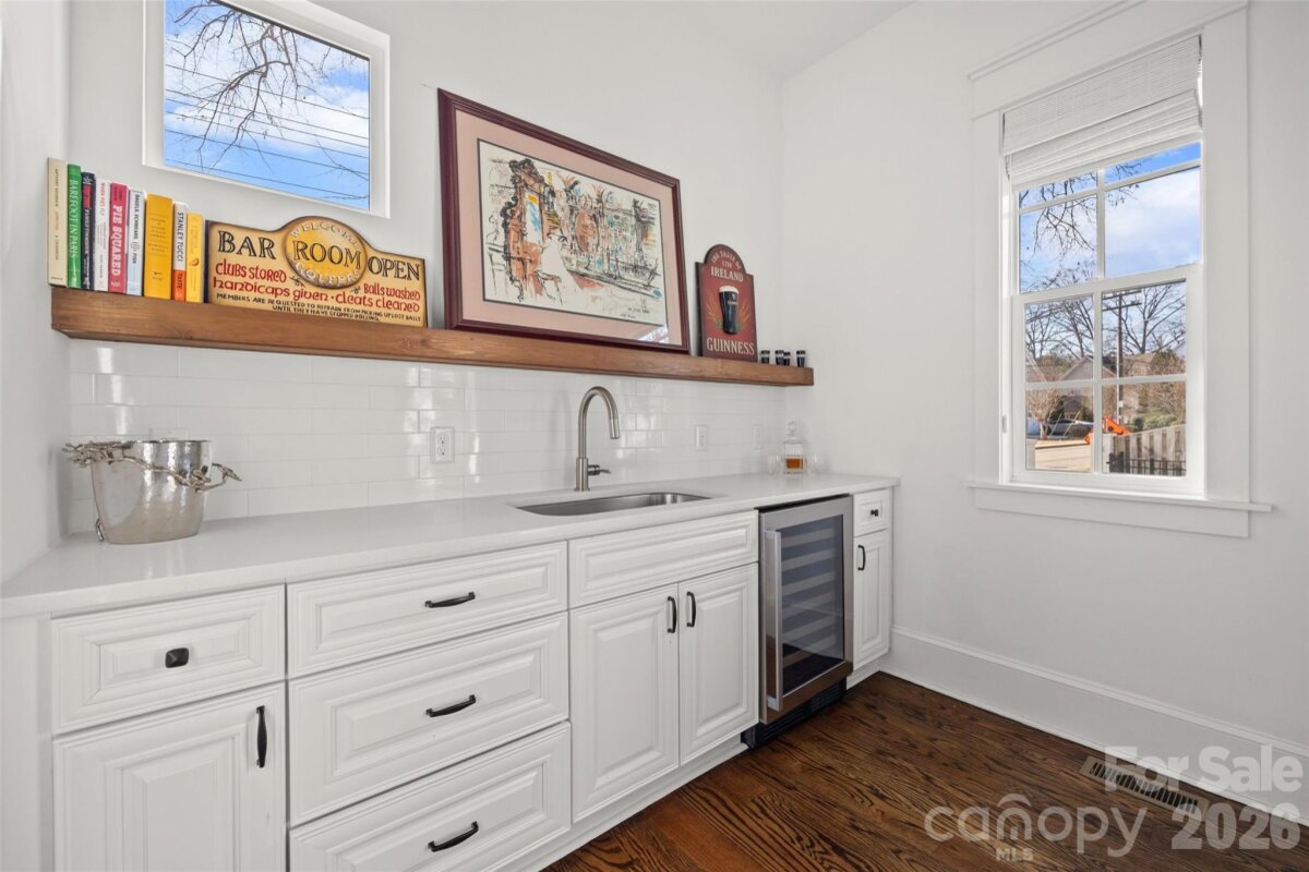 Stunning 5 bed /4 bath luxury home in the heart of Dilworth with inviting front porch and timeless curb appeal. This home offers a wonderful floorplan with seamless flow and elevated finishes. Wide-plank hardwood floors throughout the home, plantation shutters, amazing abundant natural light, 10 foot ceilings on main and 9 foot ceilings on upper level. The gourmet kitchen features an expansive quartz island and gas range, pot filler and custom hood, beautifully appointed butler’s pantry, equipped with a beverage refrigerator and bar sink connects to the kitchen through a walk-through pantry with built-in cabinetry, additional counterspace and floating shelves. Formal Dining and a sophisticated family room featuring coffered ceilings and tongue-and-groove detail. Gas fireplace enhanced by custom built-in shelving and an oversized sliding glass door that opens to a large covered rear porch—perfect for indoor-outdoor living. Two luxurious owner’s suites provide unparalleled flexibility, with one on the main level and a second on the upper level. Each suite features vaulted ceilings, designer lighting, large custom walk-in closets with built-in shelving systems and spa-inspired baths with dual vanities, freestanding soaking tubs, large tile surround walk-in showers. The main level primary suite features an ensuite laundry closet and the upper primary suite opens to a private covered terrace and offers dual walk-in closets. Spacious secondary bedrooms with walk in closets. Large hall bathroom with an oversized double vanity and a tile surround shower/tub combo. Great storage and closets throughout home. The third-floor offers endless possibilities for a home theater, executive office or large bonus room. Outdoor living is remarkable with paver patio, covered electronic retractable pergola with ceiling fan and built-in gas grill area with countertop and beverage refrigerator. Outdoor fireplace with custom built-in niches for storing wood. Dual parking pads - front and rear with electronic gate. Fantastic, flat corner lot. Excellent location with convenient access to SouthEnd and Uptown. Walking distance to shops, dining and parks. Subdivision is Sunset Hills in tax record but is commonly known as Dilworth. Construction began and tax year built date is 2018 but House Completion/CO date is 5/12/2020. Move-in ready and a wonderful opportunity!