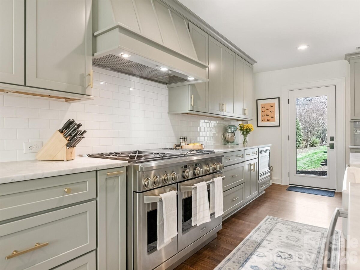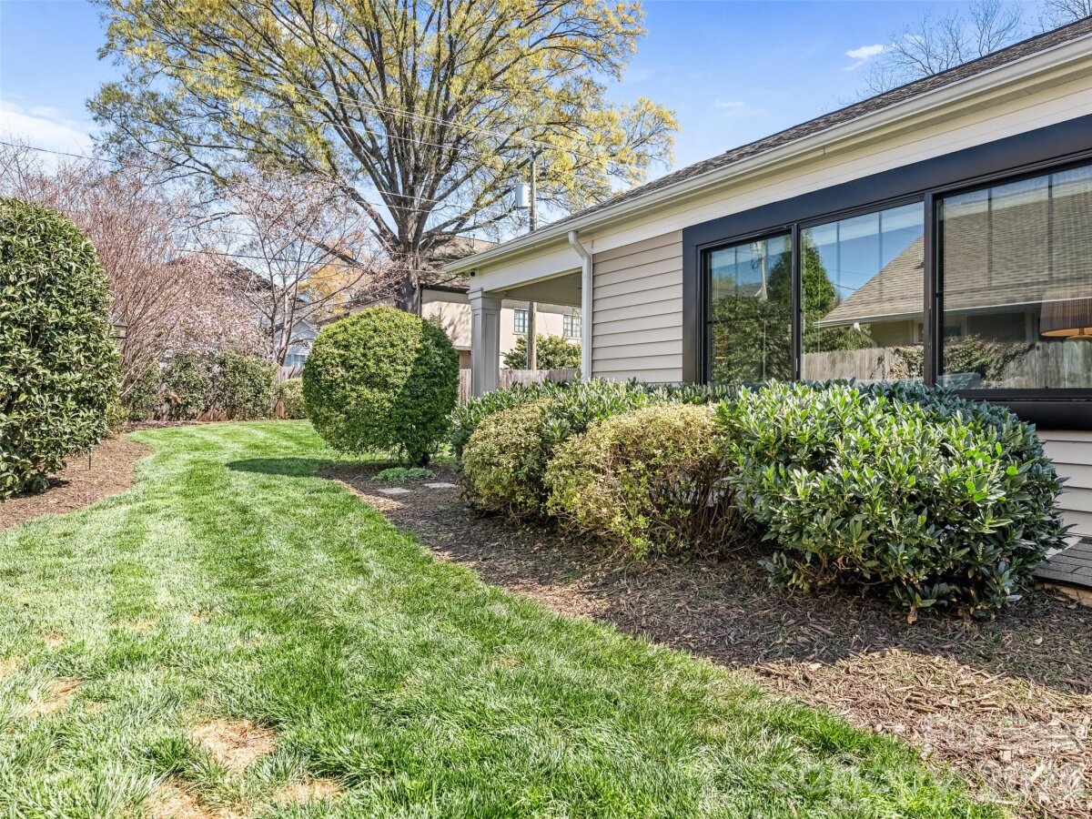 Immaculate Dilworth cottage with welcoming wrap around front porch. Spacious one level living offering a great balance of character and contemporary living. The property has been thoughtfully crafted to create a light filled, open floor plan--ideal for everyday living and entertaining. The kitchen is the heart of the house--large working island, ample countertops, custom cabinetry, and designer grade lighting. Beautiful hardwoods throughout, fresh interior paint, new carpet and recently installed Renewal by Andersen windows. The primary suite has dual walk in closets and a custom built in armoire--great for extra storage. The rear den can be used as a 4th bedroom , studio or additional living space. Ideal location--easy walk to restaurants, shopping and parks. Minutes to Uptown.