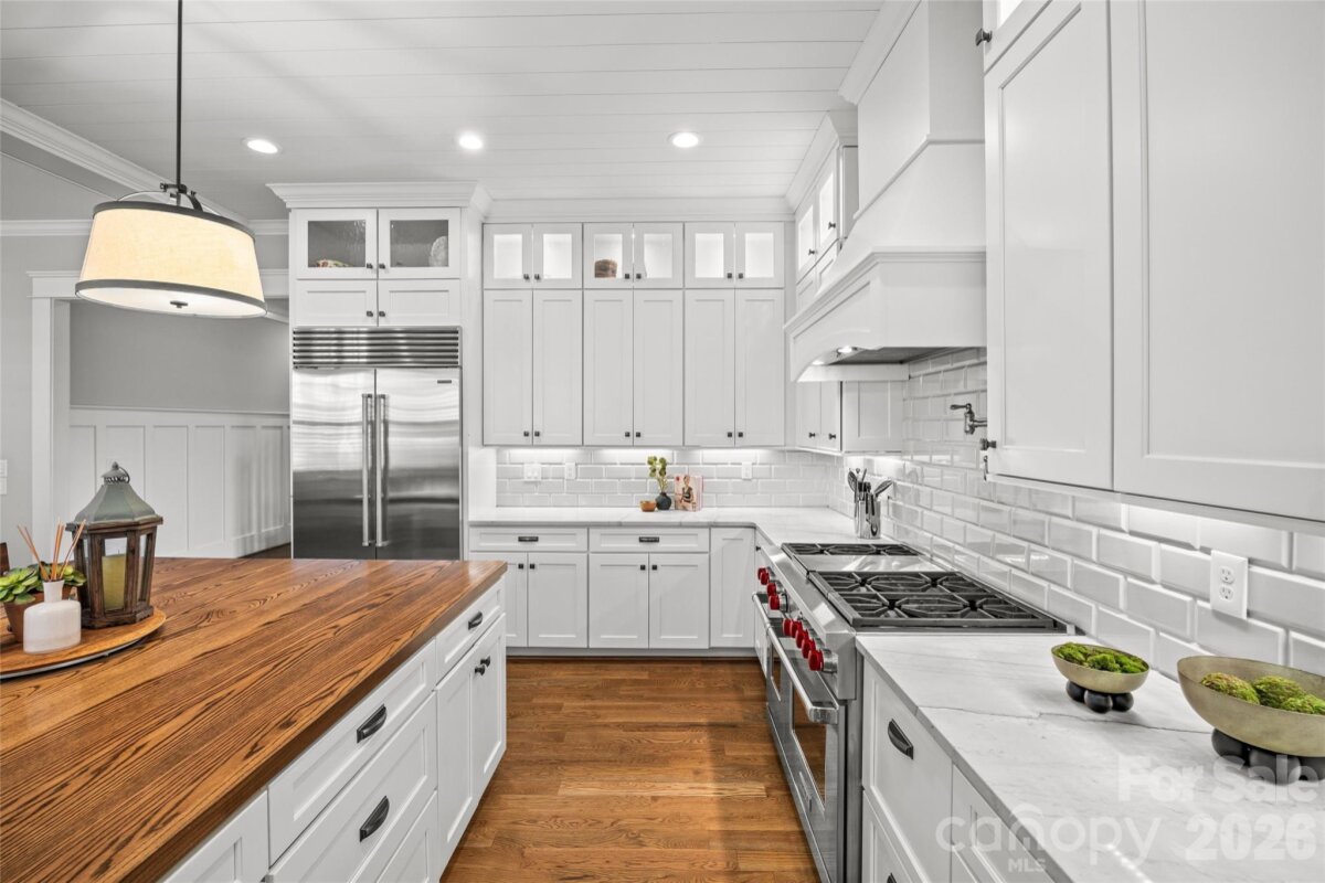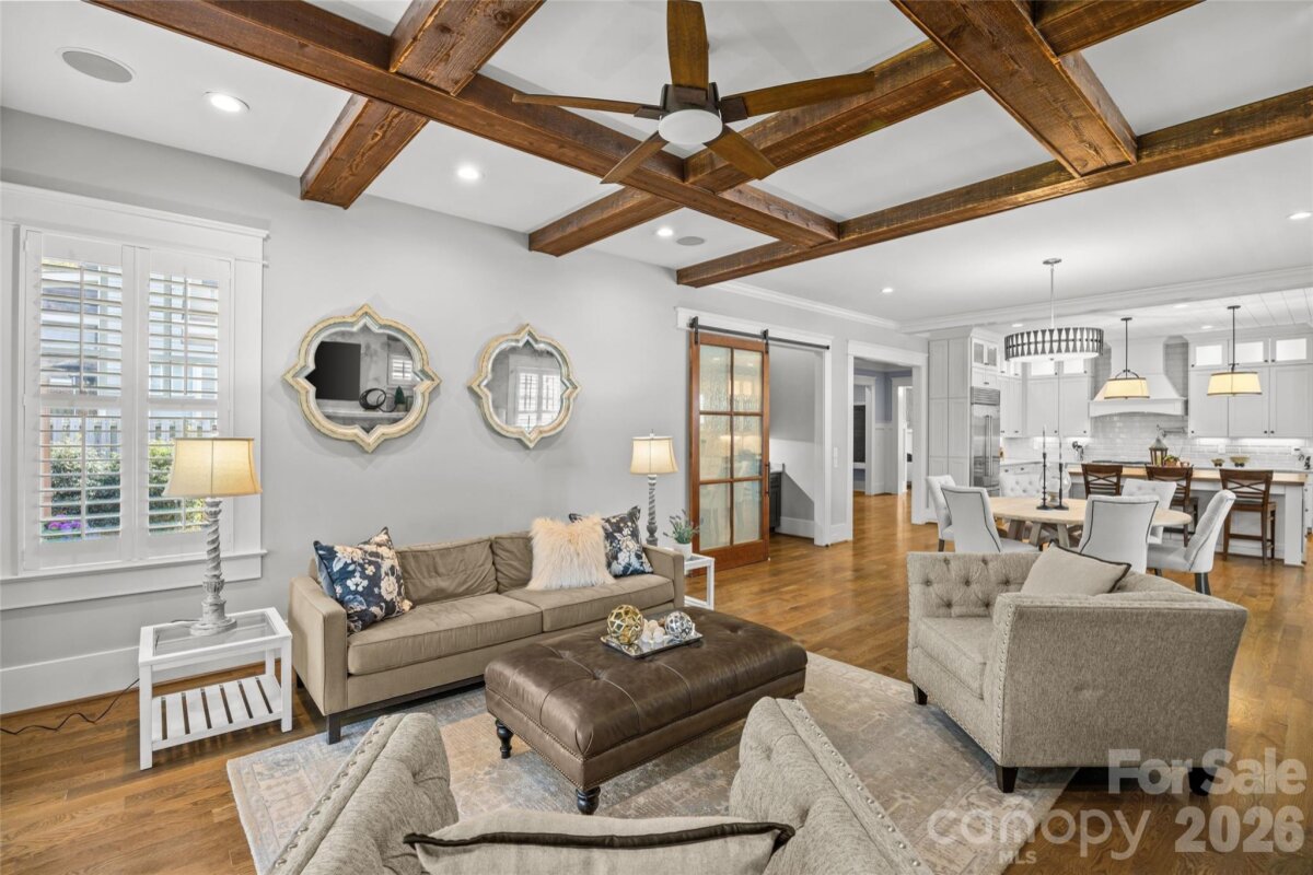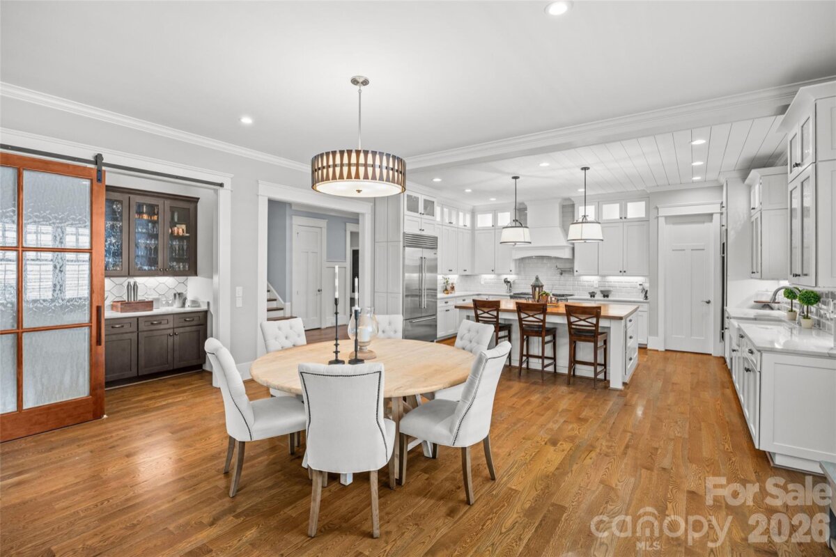 Nestled in the heart of Dilworth is this stunning, custom home built in 2018 by Crescent featuring 5BR/5BA, 10’ ceilings on both levels, hardwoods throughout, and exceptional design with high quality finishes. Open-concept on the main level living combines with seamless indoor-outdoor flow to a private outdoor oasis. Chef’s kitchen with oversized island, quartzite & butcher block countertops, Sub-Zero/Wolf appliances, 48†range, wine tower, scullery, and butler’s pantry is perfect for entertaining. Luxurious primary suite on main with vaulted ceilings, wet bar, laundry, and expansive custom closet, and oversized spa bathroom. Complete with vaulted office/guest suite on main with full bath. Upstairs offers 3 bedrooms/bathrooms, bonus room with cabinetry & beverage fridge, study loft and 2 generous sized walk-in attics that can be easily built out for additional living space. Enjoy a vaulted covered porch, brick paver patio with grilling station & firepit opening to a private flat yard with room for a pool. The perfect home with the perfect location in Dilworth, just minutes from Uptown, offering a rare blend of historic charm and walkable urban living, with easy access to top dining, shopping, parks, and Charlotte’s premier sports and entertainment venues.