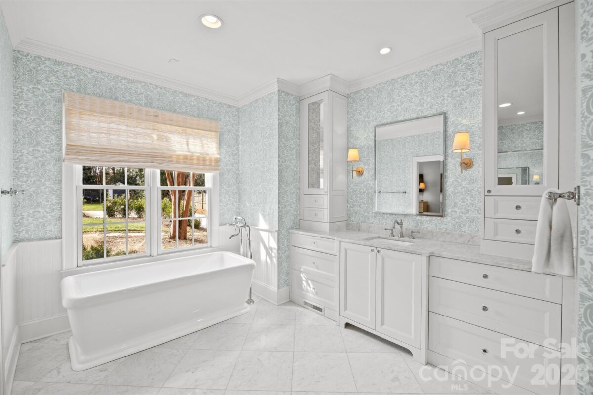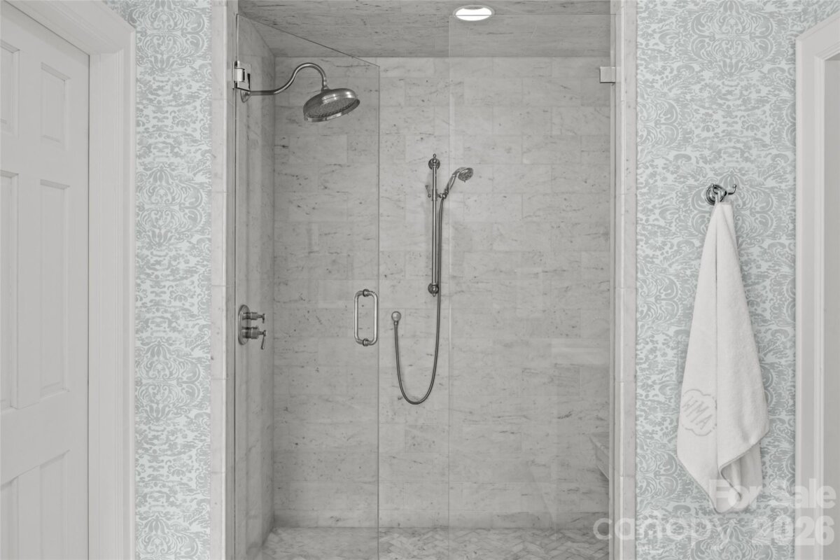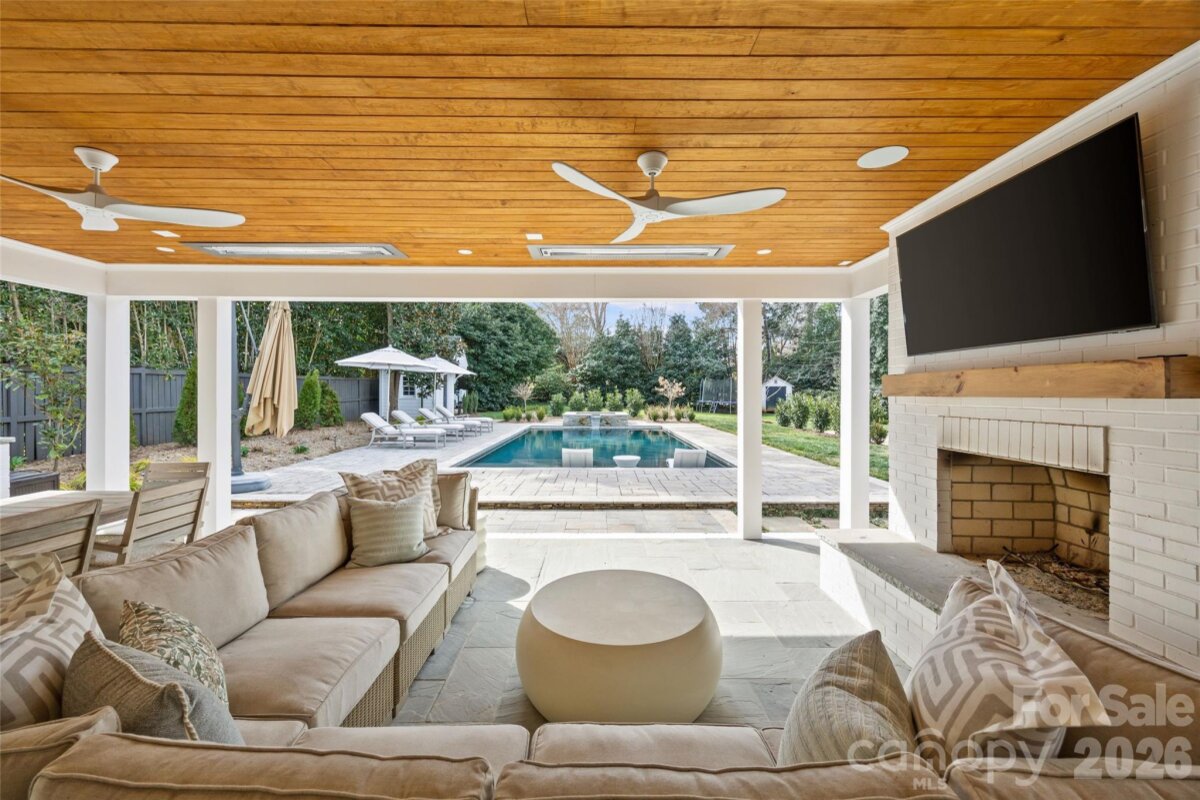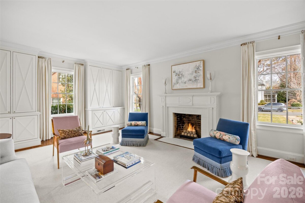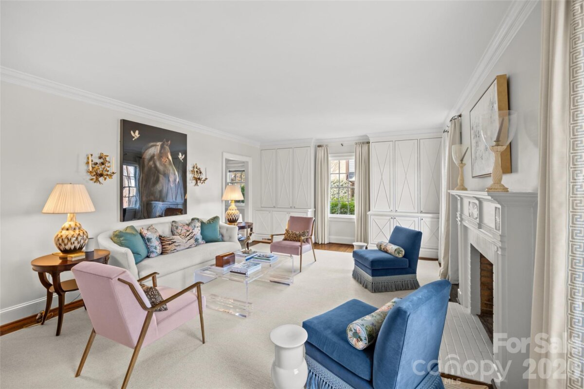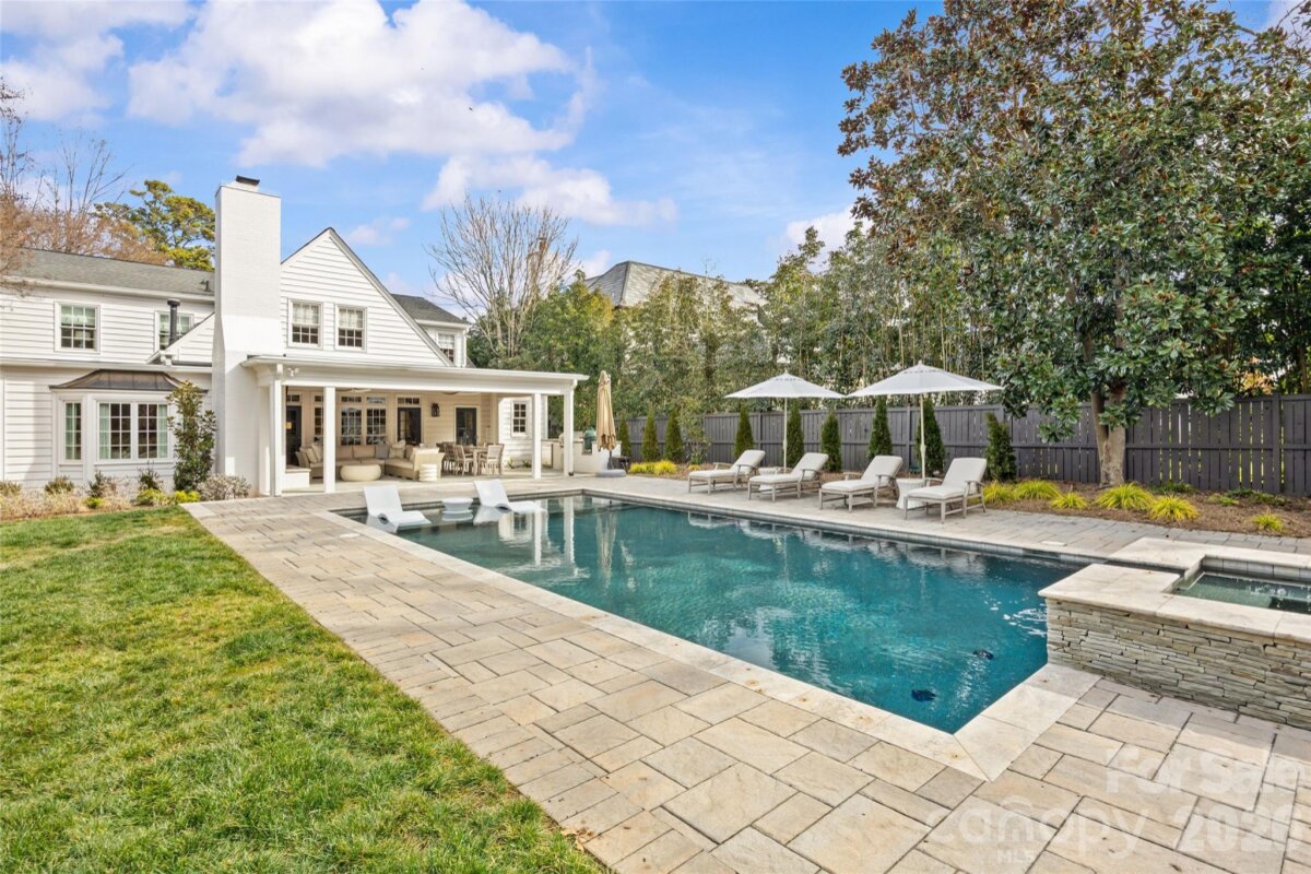 Welcome to 1950 Sterling Rd, a beautifully updated 5BR, 4.5BA home set on a rare .51-acre lot in the heart of Myers Park. Offering 4,200+ sq/ft of refined living space, this charming cottage blends timeless architecture with elevated, designer finishes throughout. Pristine landscaping and inviting curb appeal lead to a light-filled interior featuring 9’ ceilings, hardwoods, intricate moldings, and gracious formal and informal living spaces. The renovated white marble kitchen with high-end appliances, abundant custom cabinetry, and walk-in pantry opens to a sunny breakfast area with built-in banquet and spacious family room overlooking the backyard. Stunning scullery with marble countertops, pebble ice maker, and beverage fridge adds both style and function. Main-level primary suite offers a spa-like marble bath and custom walk-in closet, while upstairs includes four additional bedrooms all with direct en-suite bath access, and a flexible loft/play space. Exceptional outdoor living on the covered blue stone porch with outdoor fireplace, built-in heaters, and grilling station (added 2024) which overlooks the incredible heated saltwater pool with spa and huge fenced yard. Unbeatable in-town location, this is truly a special home you do not want to miss!