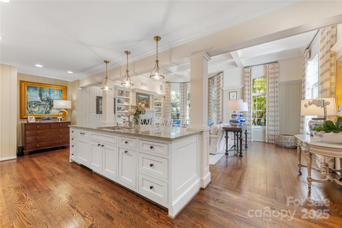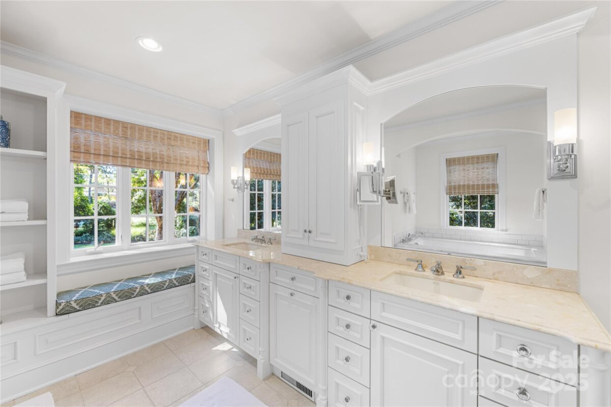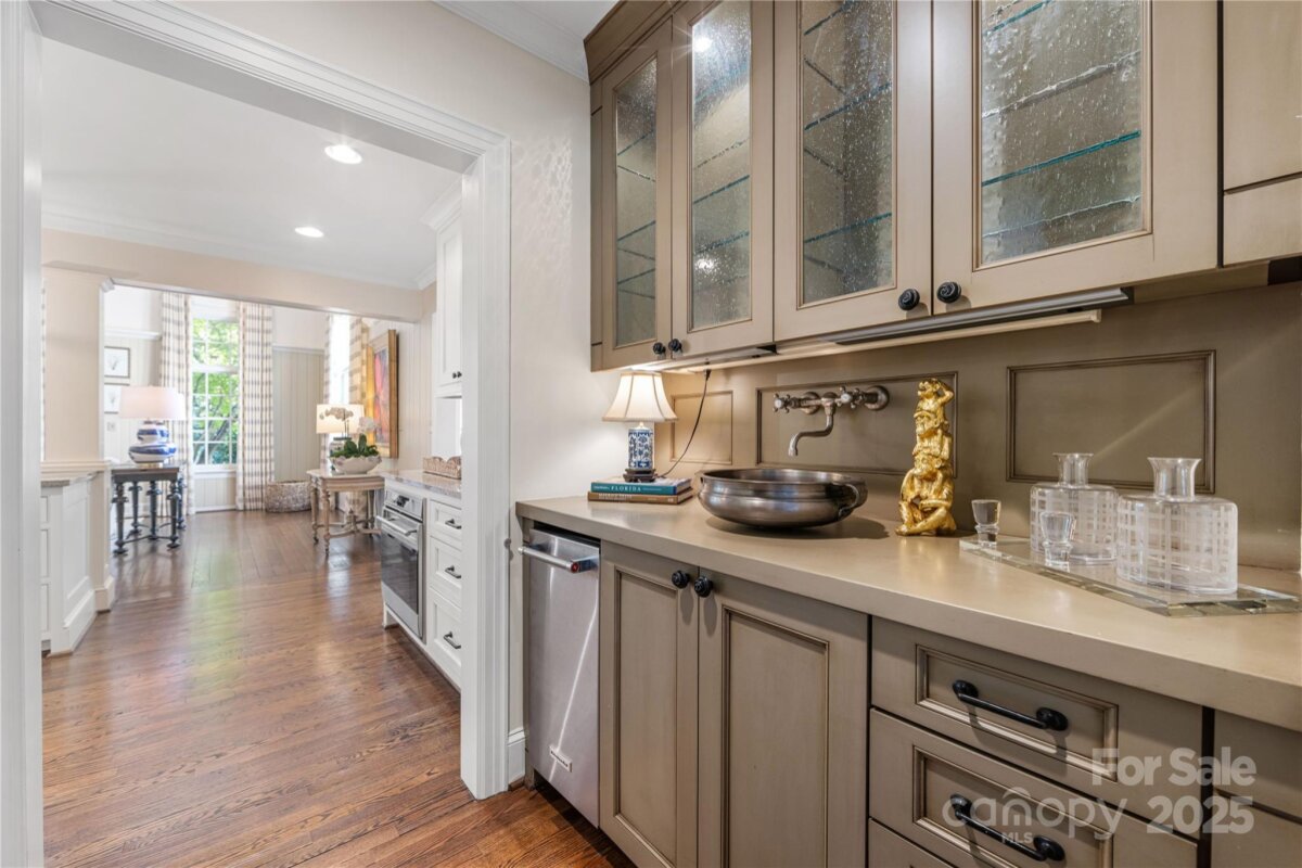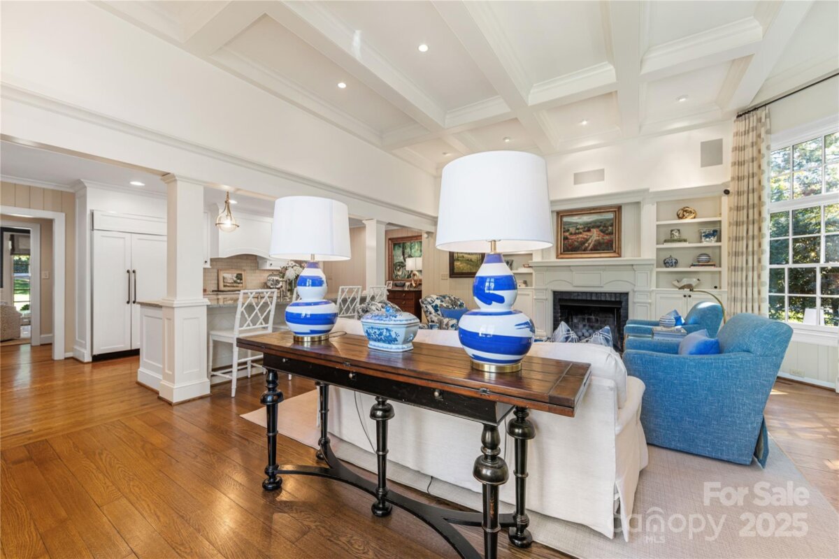 Welcome to this stunning Myers Park gem! Set on a grand, beautifully landscaped lot, this home effortlessly blends timeless charm with thoughtful modern updates throughout. Enter through a warm foyer framed by a refined study and an elegant formal dining room featuring a gas fireplace perfect for hosting gatherings. The spacious family room boasts high ceilings and abundant natural light, flowing seamlessly into the bright, renovated kitchen equipped with Sub-Zero, Wolf, and Cove appliances, plus a custom panel-front refrigerator/freezer that blends flawlessly with the cabinetry. The recently updated powder room features beautiful custom cabinetry and Taj Mahal Quartzite countertops. The laundry/mudroom offers a perfect balance of style and practicality, with ample storage, a second refrigerator, washer and dryer, and a dedicated home management area. The main-level primary suite, features a spa-inspired bathroom and a generous walk-in closet. Upstairs, you’ll find three additional bedrooms, two full bathrooms, built-in desks ideal for office or study use, and an extra den space that can serve as a workout room or additional office space. A detached two-car garage includes a finished room above, providing versatile space for an office area, workout space or studio. This home truly has it all—charm, space, and an unbeatable location in the heart of Myers Park!
