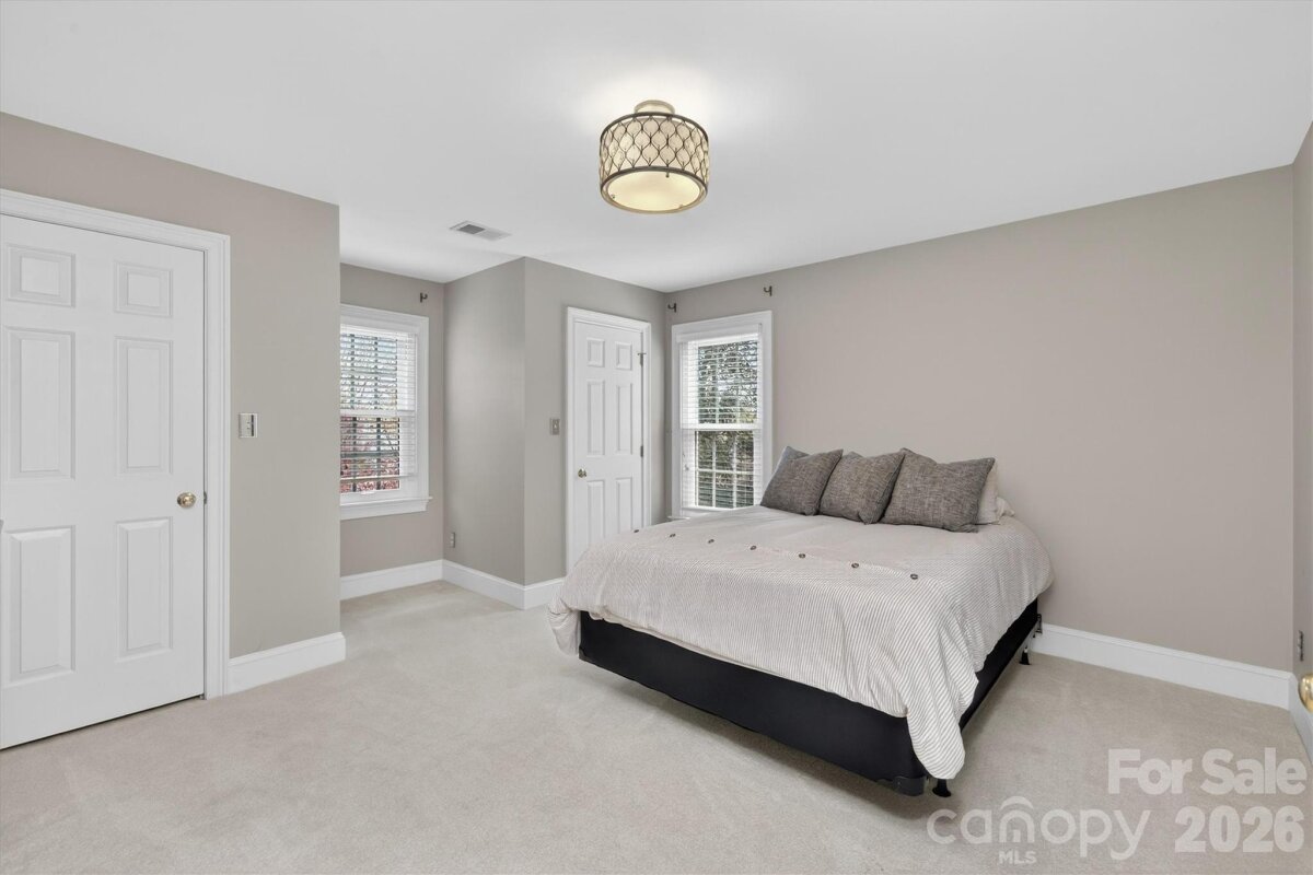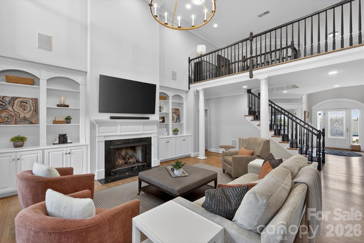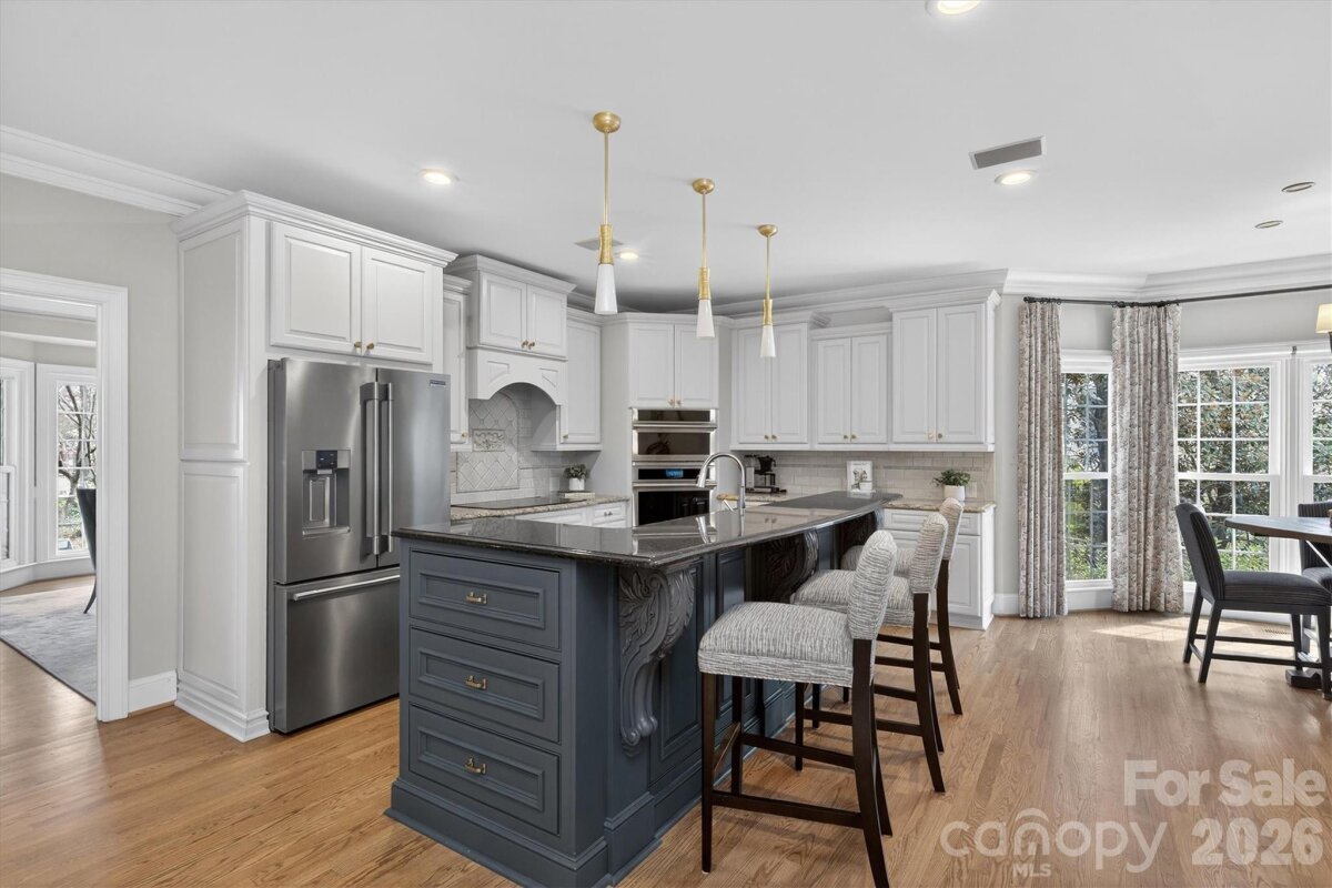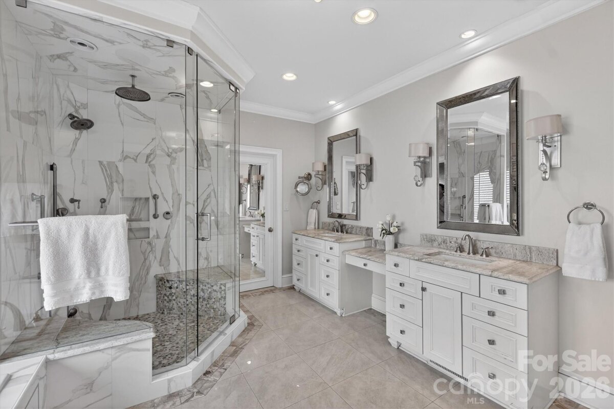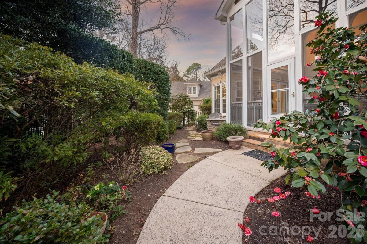Beautiful luxury home on quiet cul de sac in the popular Linkside Village of Piper Glen. Excellent floor plan features a two story great room, primary bedroom on main plus private office. Beautifully appointed, this home offers high end finishes such as hardwood floors, custom built ins, crown moldings, arched window details, and more. The two story great room creates and elevated sense of living with large windows that fill the space with natural light. Luxury kitchen with custom cabinetry, stainless steel appliances including newer wall oven and microwave, induction cooktop, newer fridge, newer dishwasher plus large center island with bar seating. The spacious primary suite features a beautiful renovated luxury bathroom with true steam shower, designer lighting and mirrors, and large walk in closet. Upstairs, the home offers three oversized secondary bedrooms, two additional UPDATED full baths, and a near 400 square foot bonus room. Home is situated on private cul de sac lot featuring mature landscaping and lots of privacy. Exterior highlights include a covered two story enclosed (perfect for pollen season) back porch with gas fireplace and wood ceiling detail perfect for all year round experience. Backyard also features a built in barbeque area. Other features include custom window treatments, designer lighting, full irrigation controlled by a convenient app, sonos sound system and a Tesla charging station in the garage. Located in the Ballantyne area with convenient access to shopping, dining, and major commuting routes. Easy walk to 4 Mile Creek greenway and Trader Joes! MOVE IN READY!
