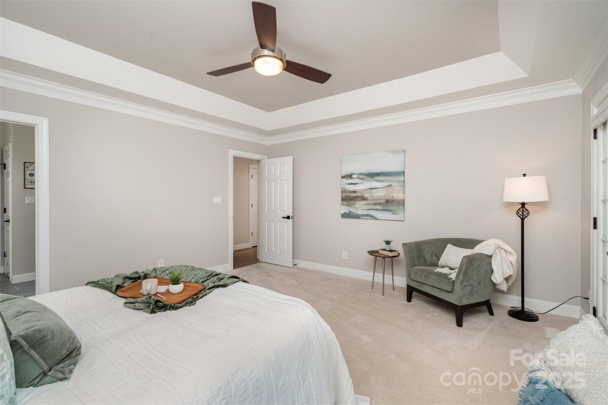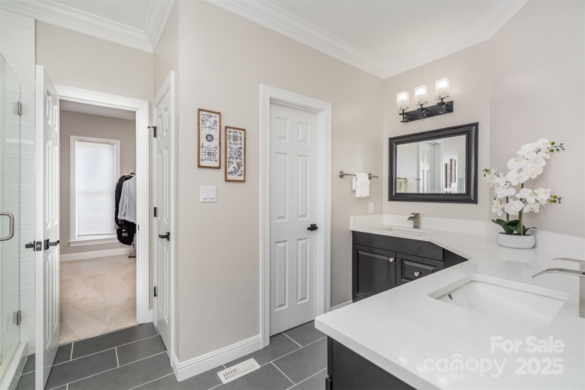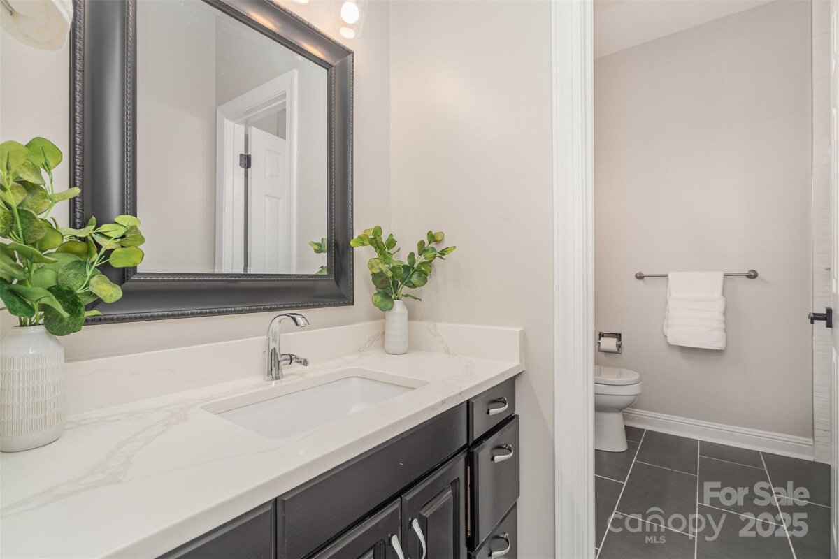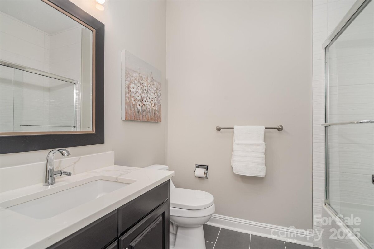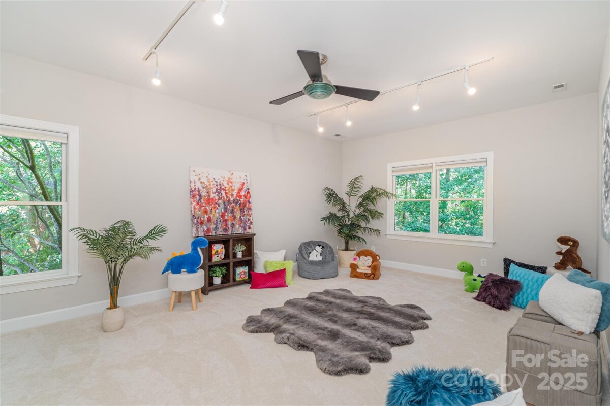 Located in a quiet double cul-de-sac within desirable Providence Crossing, this residence of unique design offers a refined blend of privacy, modern updates and access to the area’s top-rated amenities. The home’s freshly painted interior features refinished hardwood floors, new carpet in the primary suite and upper level, and a layout designed for both daily comfort and effortless entertaining. The two-story great room showcases a gas fireplace and expansive windows, filling the space with natural light. A dedicated office includes a full wall of custom built-ins, ideal for working from home or study needs. The updated kitchen is outfitted with Bosch stainless steel appliances, built-in oven and microwave, and a bright breakfast area with floor-to-ceiling windows overlooking a wooded backyard. The main-level primary suite features a spa-inspired bath with a soaking tub, walk-in shower, and a walk-in closet. A private door opens from the suite directly to the oversized deck, perfect for quiet mornings or evening gatherings. Outdoors, enjoy a massive deck with a private, treed backdrop and the tranquil sound of a nearby fountain. A portion of the expansive backyard is fenced—ideal for little ones and furry companions. Additional features include an entry alarm system, two-car garage with extra storage or workshop space, and fully renovated secondary baths with upgraded lighting and countertops. This move-in ready residence offers proximity to Providence Country Club, Waverly and Ballantyne shopping, dining, fitness centers and more—ideal for buyers seeking lifestyle, location and low-maintenance luxury.