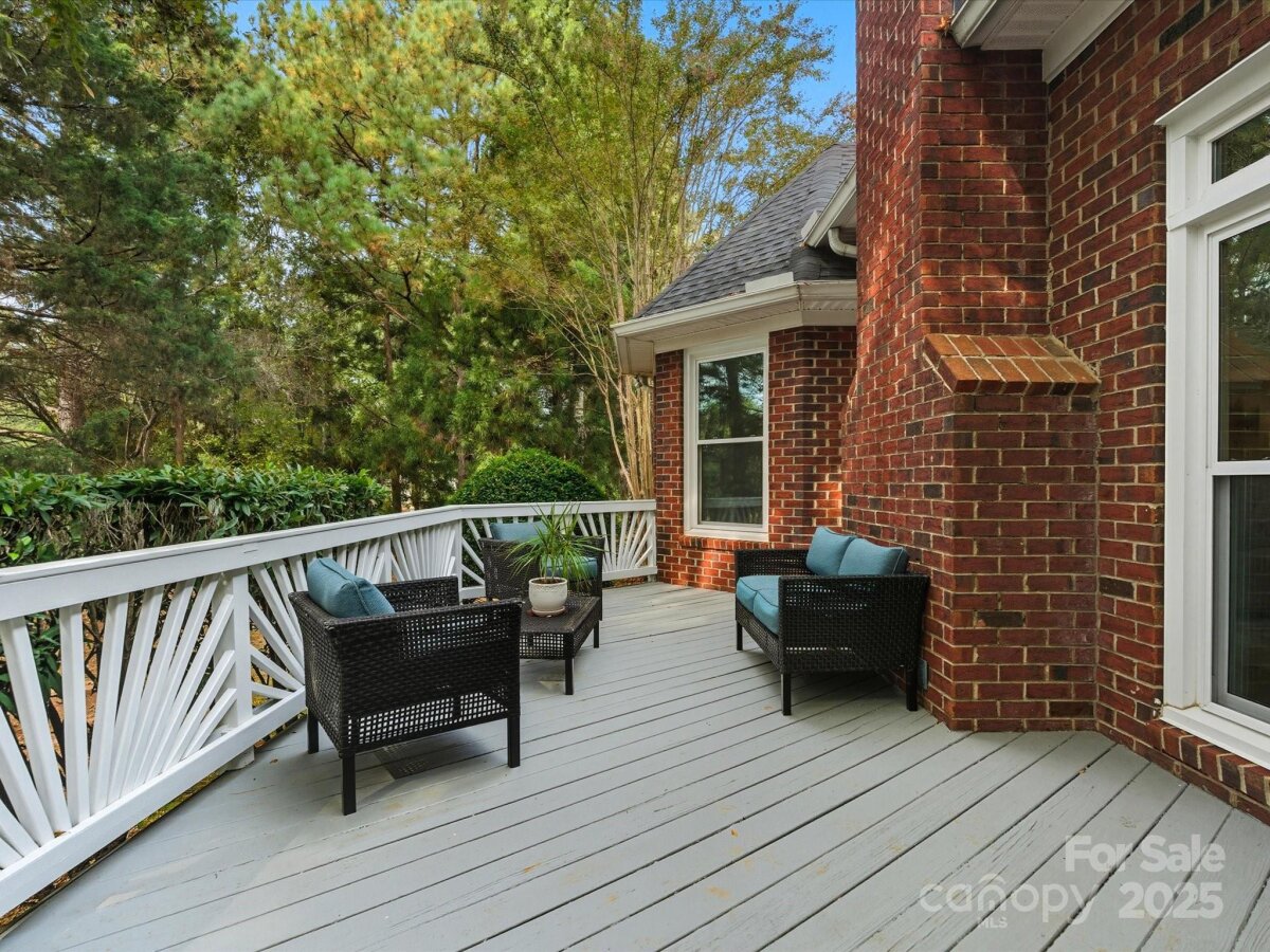 Tucked at the end of a cul-de-sac on a treed lot, this beautifully well-cared-for full-brick home offers privacy, space, & charm. Inside you will find a vaulted great room, fireplace, formal living & dining rooms, & wood floors flowing through most of the main level. The white kitchen is stylish & functional, featuring marble counters, tile backsplash, new dishwasher, island, & serene breakfast area. Spacious primary suite is conveniently located on the main level & boasts a stunningly renovated bathroom. Upstairs, are three generous-sized bedrooms (one ensuite) & 4th/bonus room all with brand-new carpet—perfect for family and/or guests. Outside, enjoy the peaceful, treed fenced backyard from the freshly painted deck - perfect for entertaining or relaxing. Highlights include triple pane windows 2018, custom front door 2019, new tile in laundry room, many new lighting fixtures, irrigation system, neutral finishes throughout, & pride of ownership. Located in desirable Providence Crossing, close to top-rated schools, shopping, & dining.