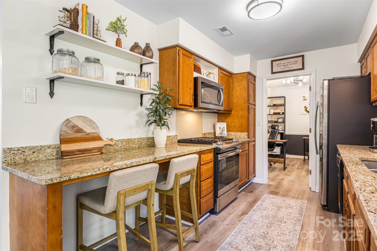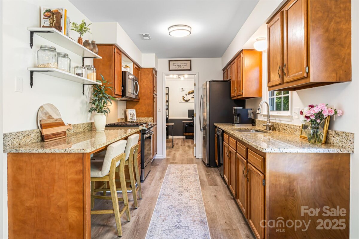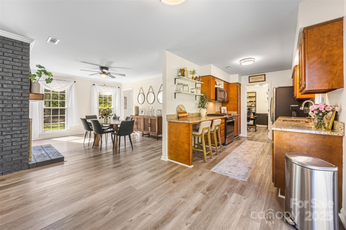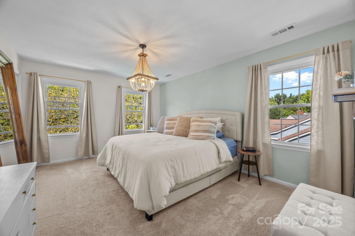 MOTIVATED SELLERS! Ideal location close to all that the Blakeney and Stonecrest area has to offer, with restaurants and retail within minutes! Plus NOW with ALL NEW EXTERIOR PAINT, NEW FRONT DOOR, NEW FRONT DOOR TRIM, NEW SIDING AS NEEDED AND NO MORE POPCORN CEILINGS! The home is the star of the street with amazing curb appeal plus, a huge flat lot with privacy, a large back patio with a fire pit, newer vinyl floors downstairs and on the stairs and upstairs hallway, newer interior paint, granite counters, a gas range, a breakfast bar, a walk in pantry, a painted brick wood burning fireplace, new light fixtures throughout, a modern rod iron railing and handrail at the stairs, a spacious primary bedroom with 2 walk in closets, a designer chandelier, an updated hall bath, secondary rooms each with a featured wall, a large bonus/4thBR with 2 walk in closets, a pull down attic that has ample storage, an oversized 2 car garage, an updated powder room and a laundry room on the first floor. Don't forget all the amazing community amenities, including an outdoor pool, tennis courts, pickleball courts, a recreation area, a clubhouse and playground. Plus sidewalks, easy access to I-485, all your shopping needs and it is zoned for the new Ballantyne Ridge HS! As if that was not enough extras include, all new windows in 2015, new roof in 2011, new water heater in 2014, new HVAC in 2020. Do not miss this home that is full of charm and character and has been well cared for with only 2 owners since 1985! It is ready for you!