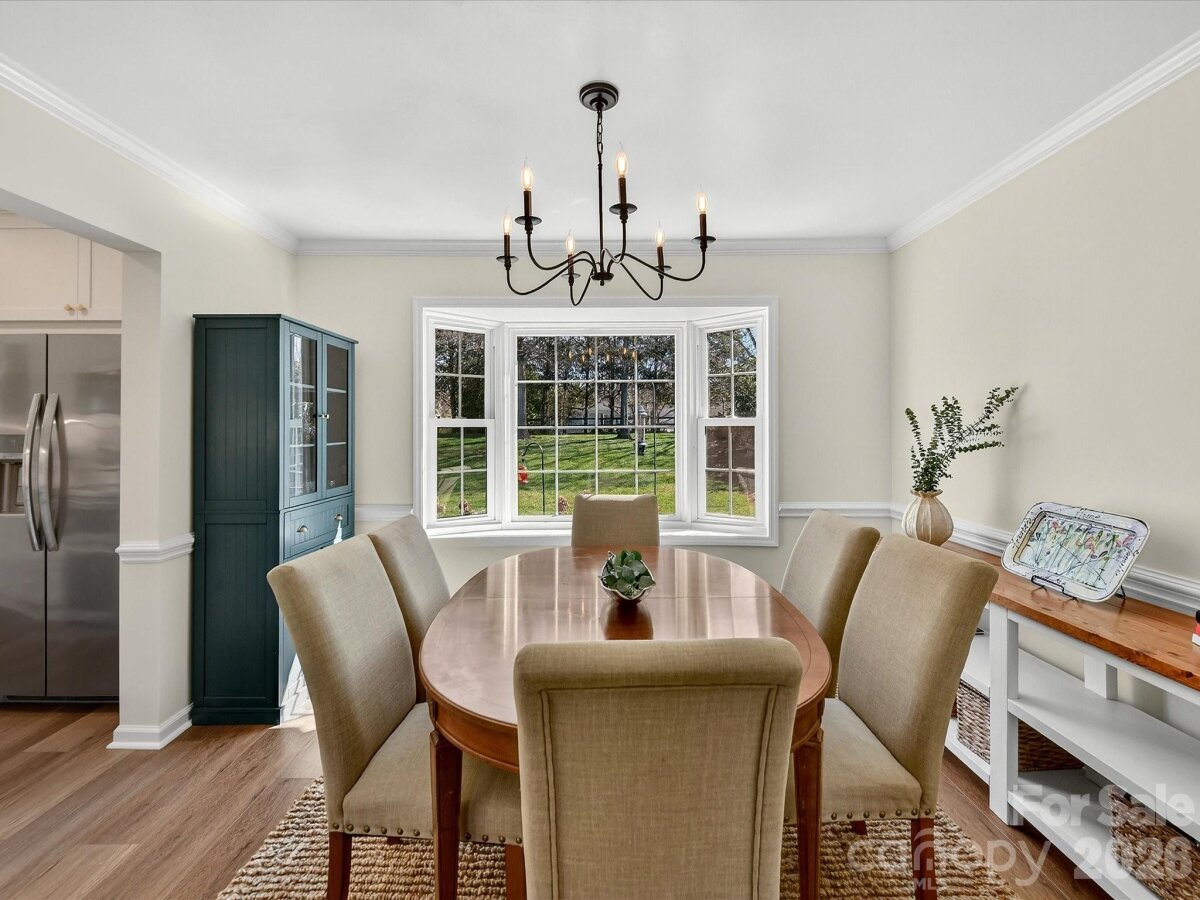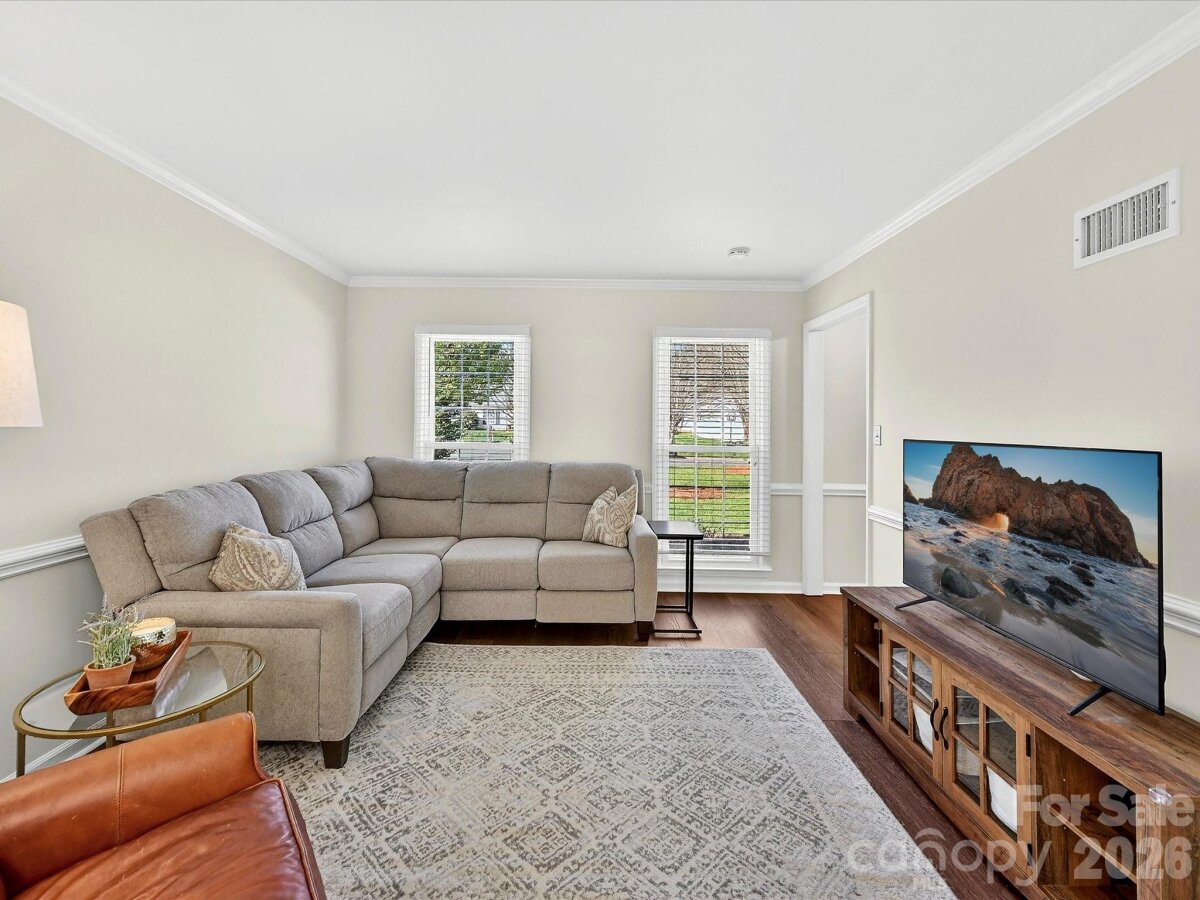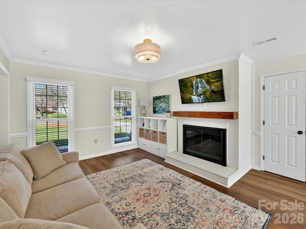 Inviting 3-bedroom home nestled on a private cul-de-sac lot offering a functional, easy flow floor plan! Updated with new LVP flooring (2024) throughout and enhanced by fresh paint, crown molding and chair rail molding on the main level. Gorgeous renovated kitchen in 2024 features custom cabinets with pull out drawers and soft close doors, quartz countertops, a tile backsplash, stainless steel appliances & recessed lighting. The kitchen & breakfast area open seamlessly to the family room with a wood burning fireplace. Living room with French doors leads to the dining room with a bay window. Spacious primary bedroom is complete with a walk-in closet, dual sink vanity & garden tub. Bedrooms 2 & 3 share a hall bathroom with dual sink vanity. Back patio looks out to fenced backyard with fresh landscaping. Fiber Cement siding. New garage door 2022. Amazing location close to Blakeney, Stonecrest & Ballantyne. Community amenities include outdoor pool, 2 playgrounds, tennis courts & recreation field. Agent is owner.