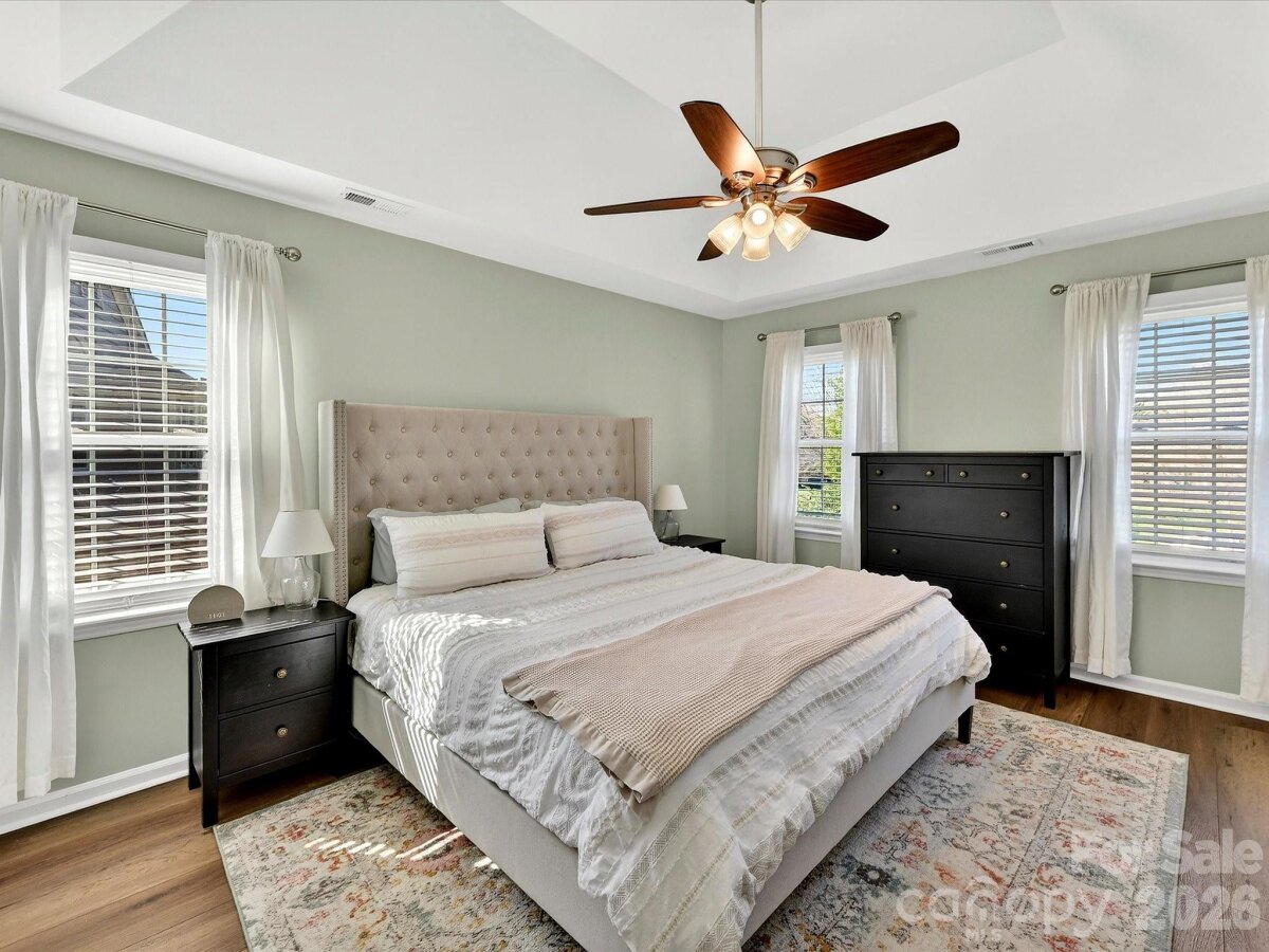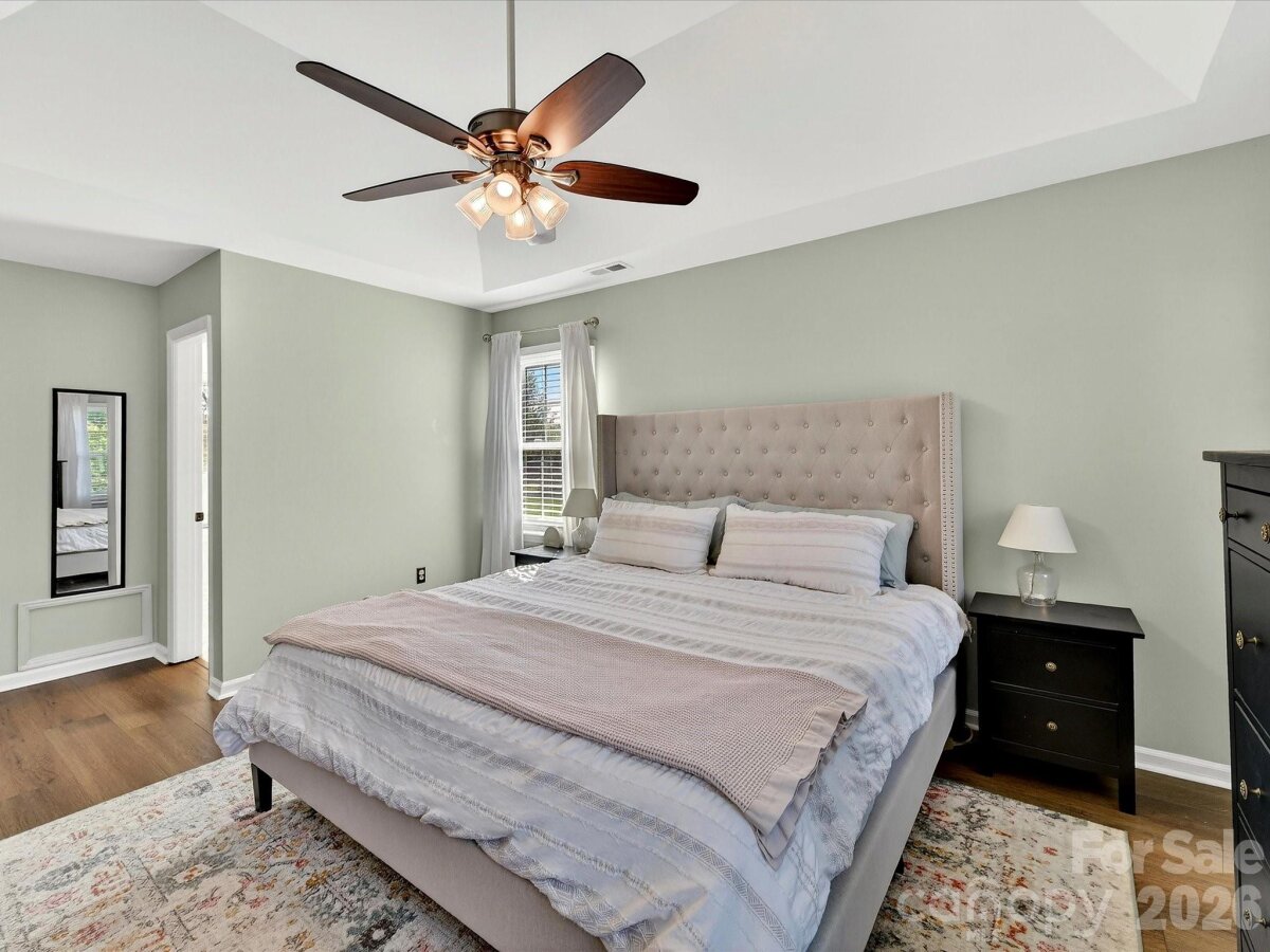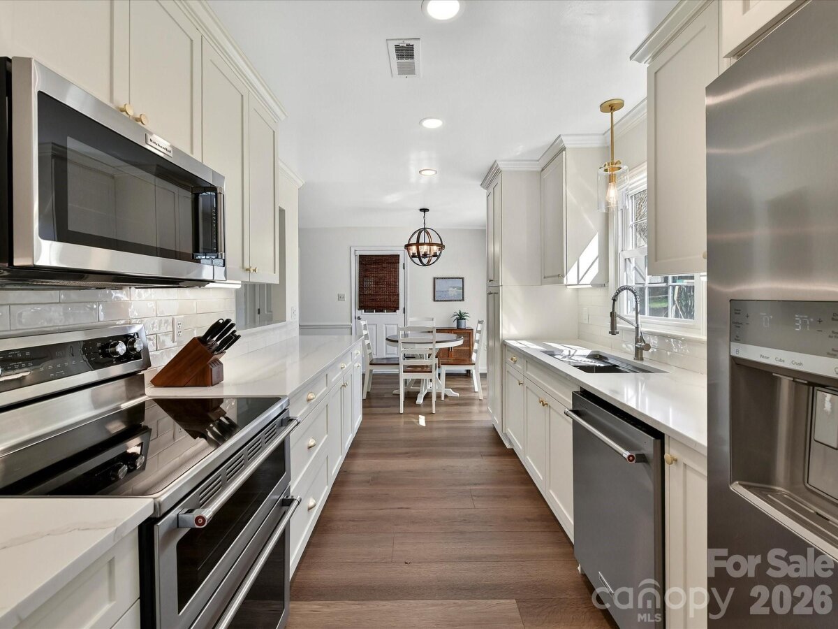 Inviting 3-bedroom home nestled on a private cul-de-sac lot offering a functional, easy flow floor plan! Updated with new LVP flooring (2024) throughout and enhanced by fresh paint, crown molding and chair rail molding on the main level. Gorgeous renovated kitchen in 2024 features custom cabinets with pull out drawers and soft close doors, quartz countertops, a tile backsplash, stainless steel appliances & recessed lighting. The kitchen & breakfast area open seamlessly to the family room with a wood burning fireplace. Living room with French doors leads to the dining room with a bay window. Spacious primary bedroom is complete with a walk-in closet, dual sink vanity & garden tub. Bedrooms 2 & 3 share a hall bathroom with dual sink vanity. Back patio looks out to fenced backyard with fresh landscaping. Fiber Cement siding. New garage door 2022. Amazing location close to Blakeney, Stonecrest & Ballantyne. Community amenities include outdoor pool, 2 playgrounds, tennis courts & recreation field. Agent is owner.