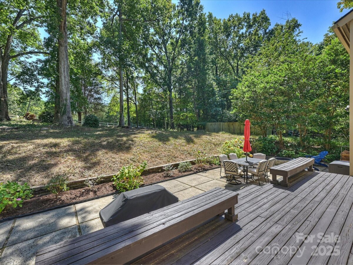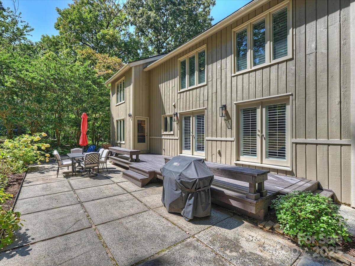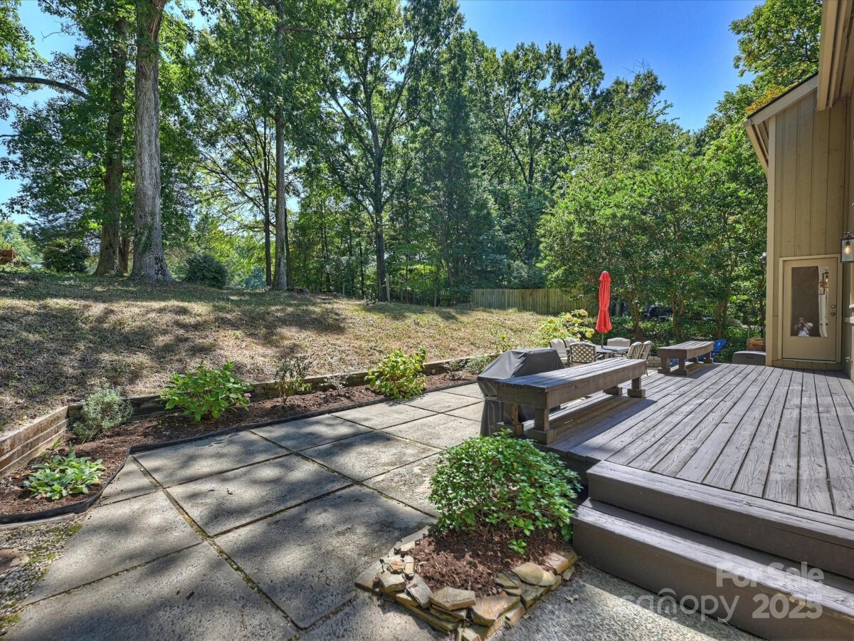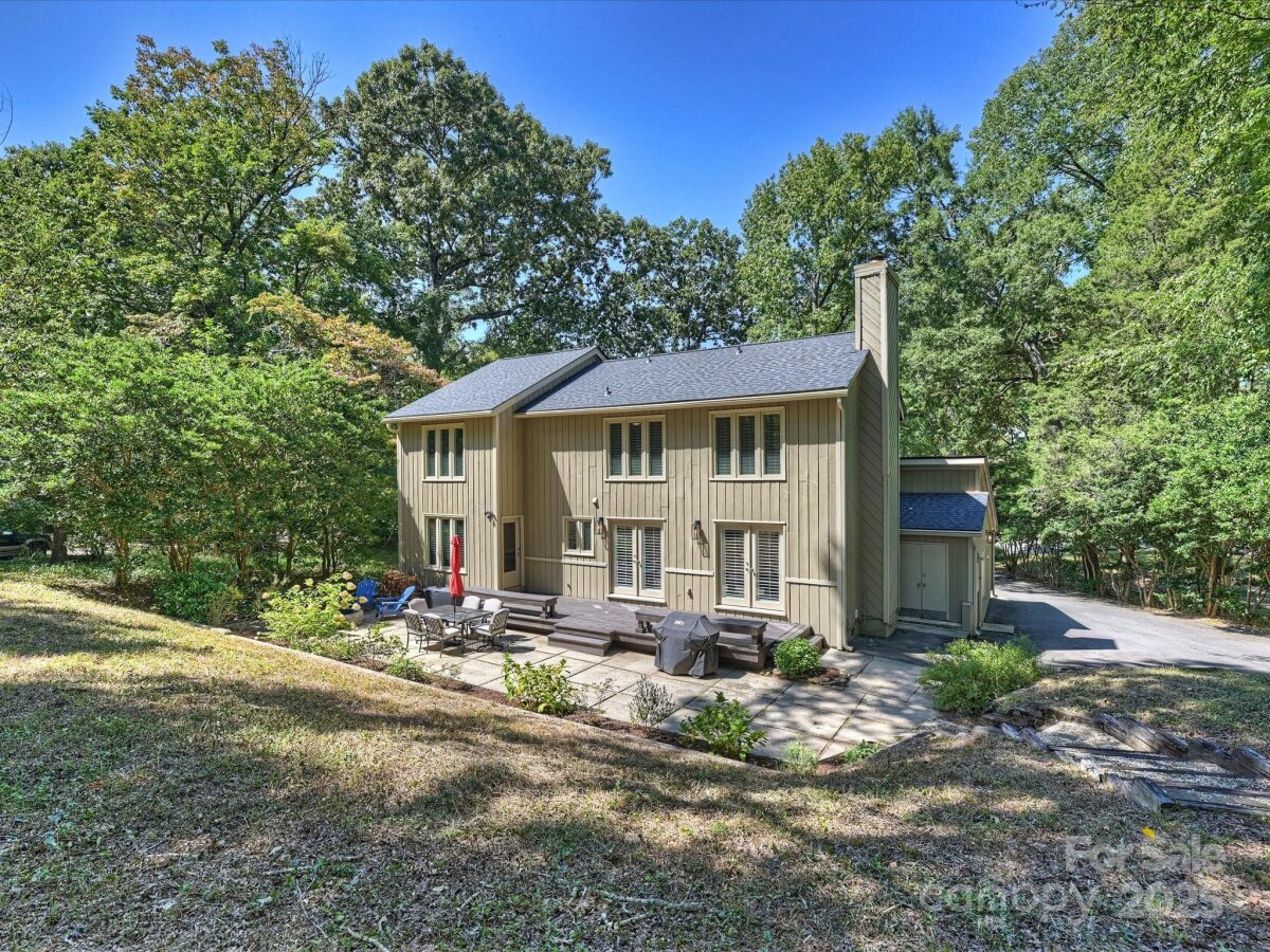 Welcome to this meticulously maintained home full of character in the sought-after Raintree neighborhood. Enter through the charming front porch with pergola into a two-story foyer with blue stone flooring. The open living and dining areas flow seamlessly into the kitchen, creating a functional space for everyday living and entertaining. The timeless kitchen features newer stainless steel appliances including a gas range and built-in microwave - plus a mosaic tile backsplash and stone countertops. The spacious den offers built-in cabinetry, a stone fireplace with gas logs, and French doors leading to the back porch. Upstairs, the expansive primary suite includes a walk-in closet and a large bathroom with an updated skylight, dual vanity, and neutral tile. Secondary bedrooms are generously sized with large closets and recently replaced carpet. Outside, you feel like you're in your own private park - this home is privately tucked away on more than .5 acres. A large wooden deck is perfect for al fresco dining while watching neighborhood deer and wildlife roam. Fresh interior paint and updated lighting throughout. Two-car garage with new garage door ('23) and Tesla charging station. Roof ('24).