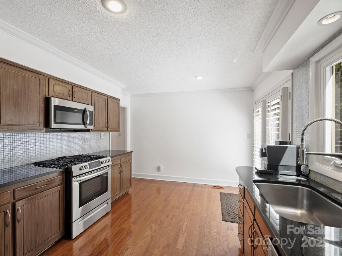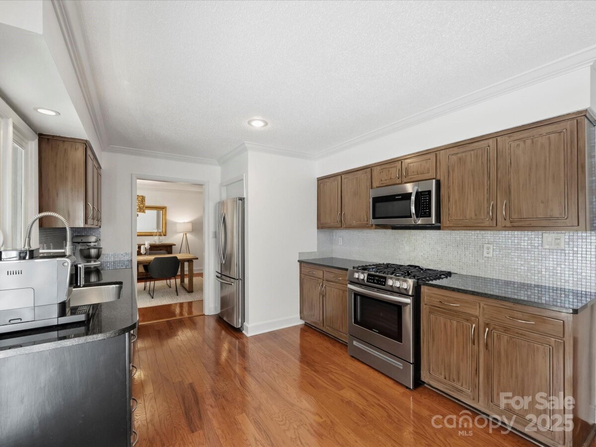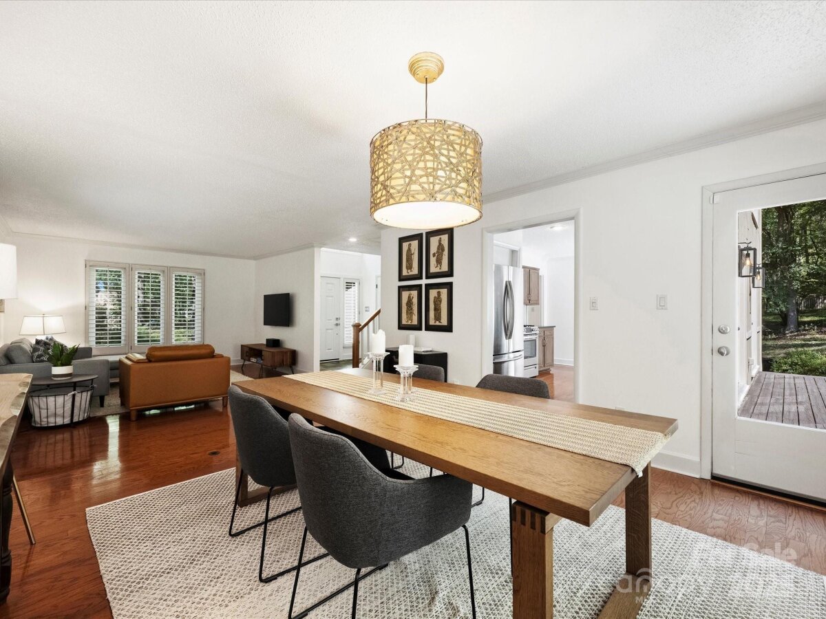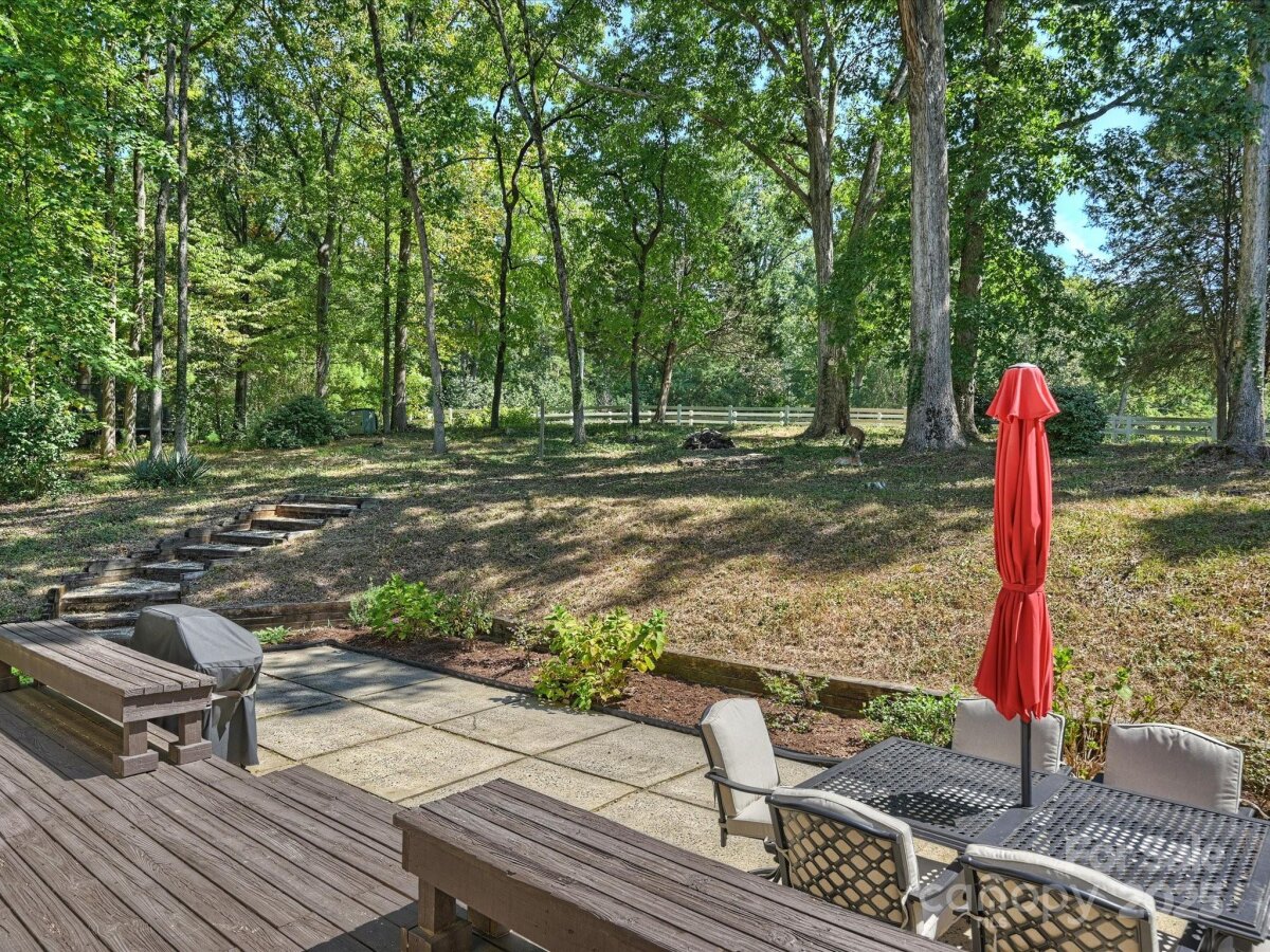 Welcome to this meticulously maintained home full of character in the sought-after Raintree neighborhood. Enter through the charming front porch with pergola into a two-story foyer with blue stone flooring. The open living and dining areas flow seamlessly into the kitchen, creating a functional space for everyday living and entertaining. The timeless kitchen features newer stainless steel appliances including a gas range and built-in microwave - plus a mosaic tile backsplash and stone countertops. The spacious den offers built-in cabinetry, a stone fireplace with gas logs, and French doors leading to the back porch. Upstairs, the expansive primary suite includes a walk-in closet and a large bathroom with an updated skylight, dual vanity, and neutral tile. Secondary bedrooms are generously sized with large closets and recently replaced carpet. Outside, you feel like you're in your own private park - this home is privately tucked away on more than .5 acres. A large wooden deck is perfect for al fresco dining while watching neighborhood deer and wildlife roam. Fresh interior paint and updated lighting throughout. Two-car garage with new garage door ('23) and Tesla charging station. Roof ('24).