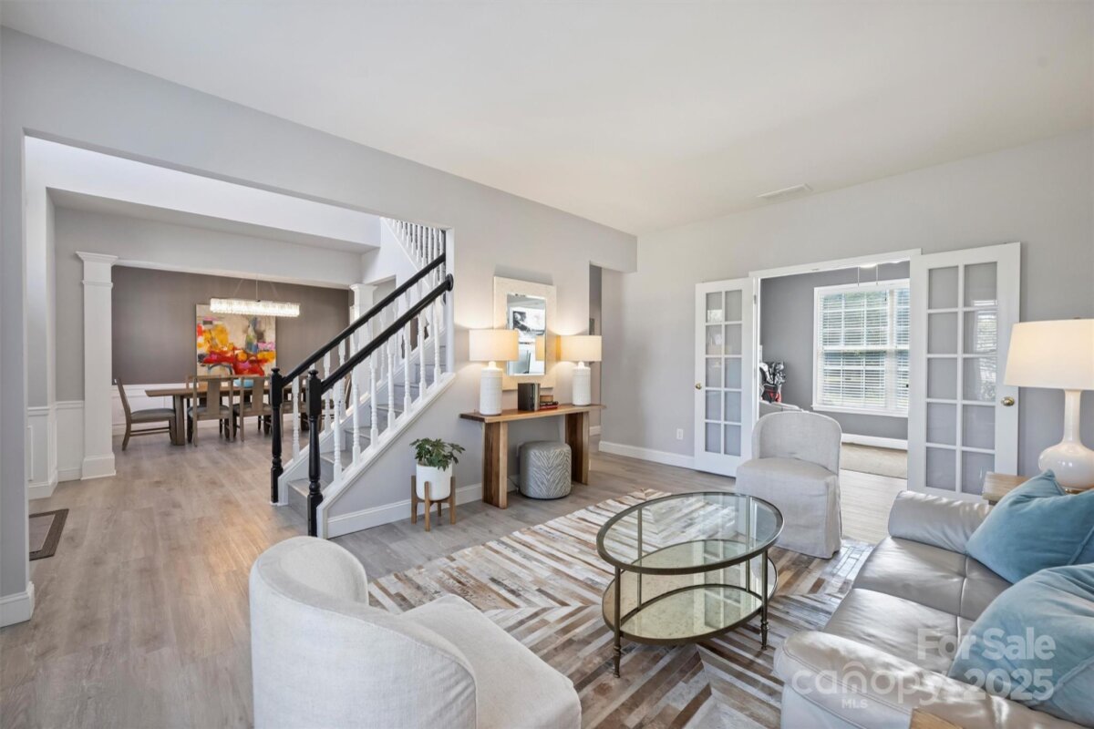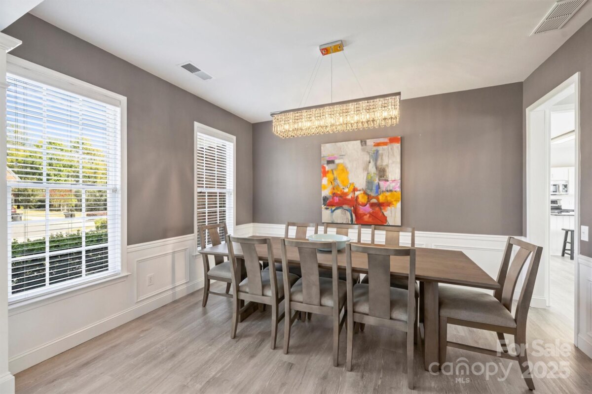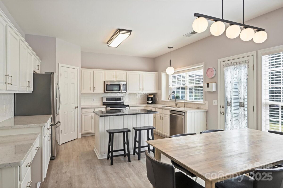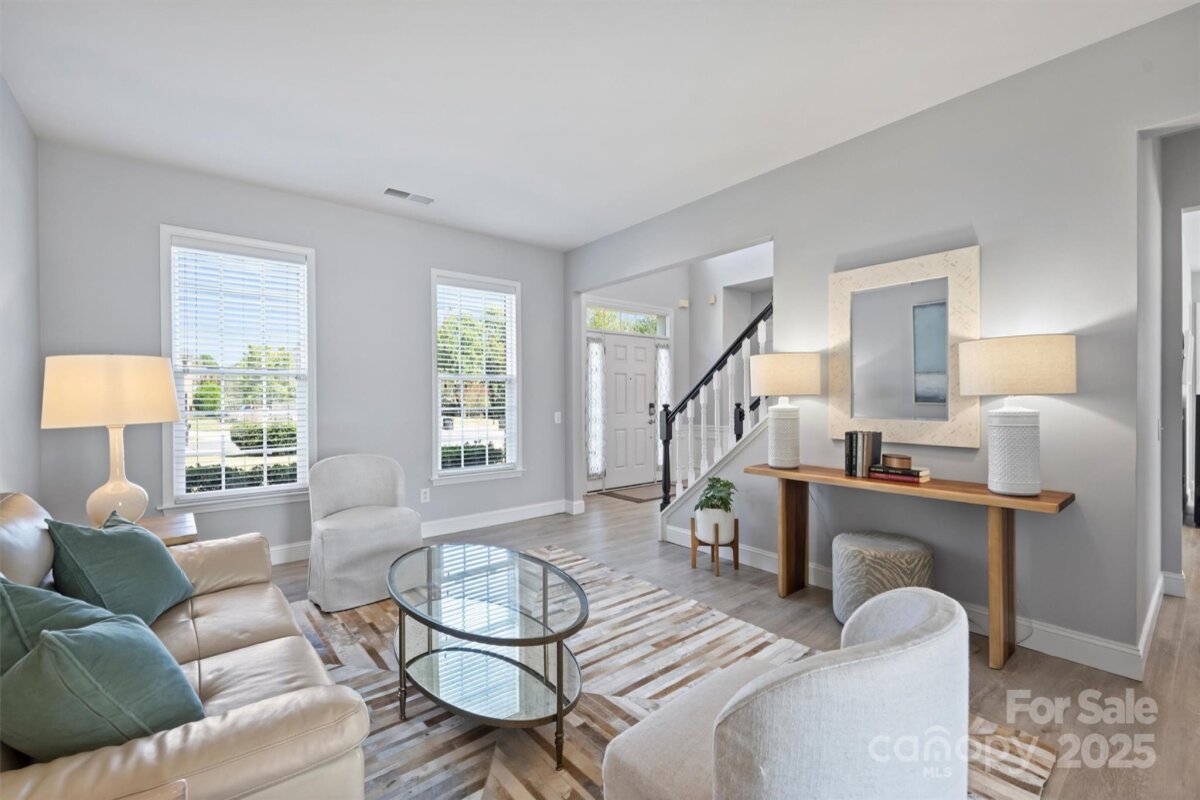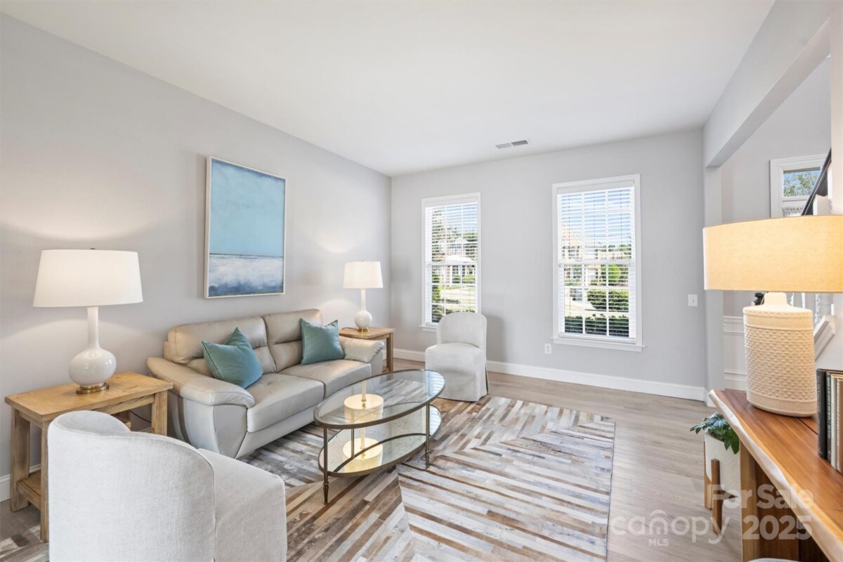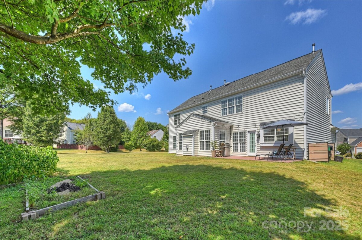Sparkling home on an interior, cul-de-sac lot in a highly sought-after neighborhood. Tremendous, private yard and patio just off the kitchen. The open floor plan features high ceilings, natural light, updated light fixtures and flooring. The main level includes generously-sized living and dining rooms, a quiet study with french doors and handsome craftsman-style white paneling, and a spacious great room that opens to the kitchen and breakfast area. On the second floor, you find a lovely primary retreat with a pretty bath and a large walk-in closet. Secondary bedrooms have ample storage and share a nice hall bath. The garage is equipped with plenty of additional shelving and an e-car outlet. Neighbors can gather at the swim/ tennis club and the playground and enjoy a short drive to an abundance of amenities including Stonecrest, Blakeney, and the Bowl at Ballantyne.