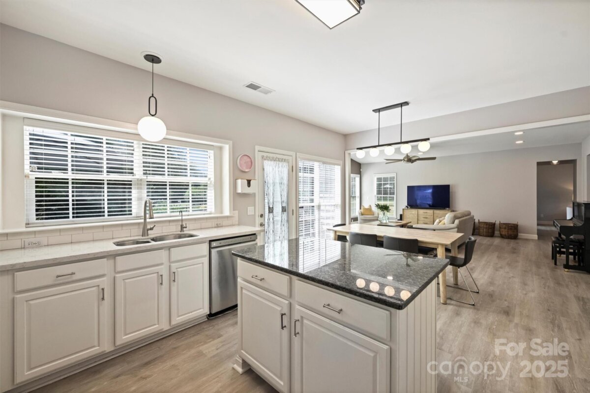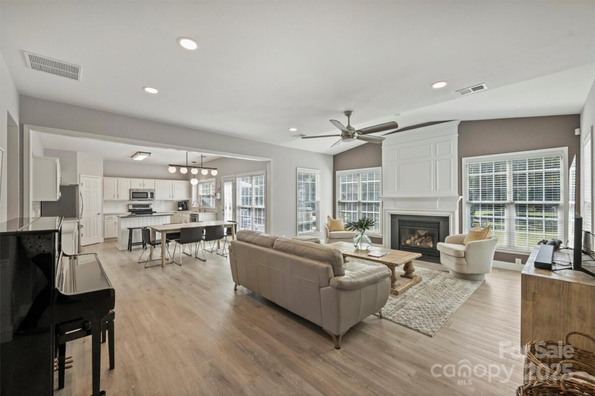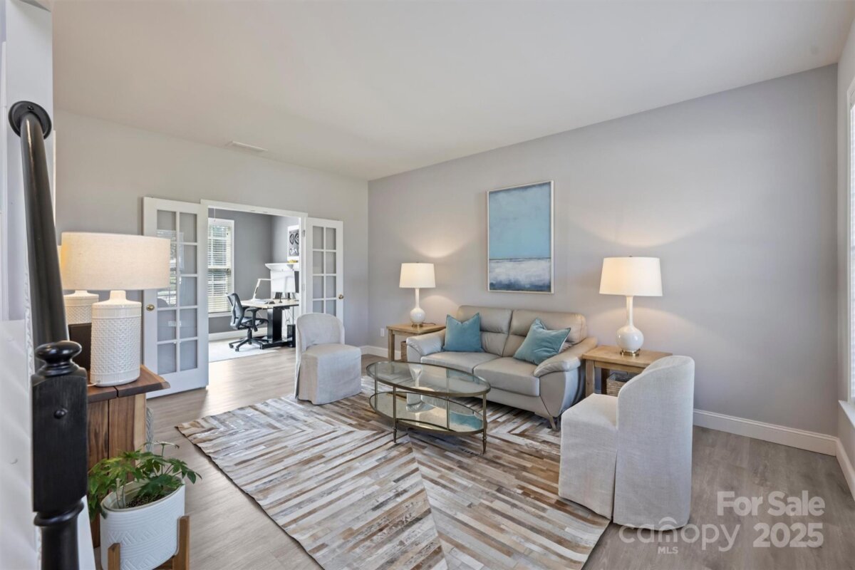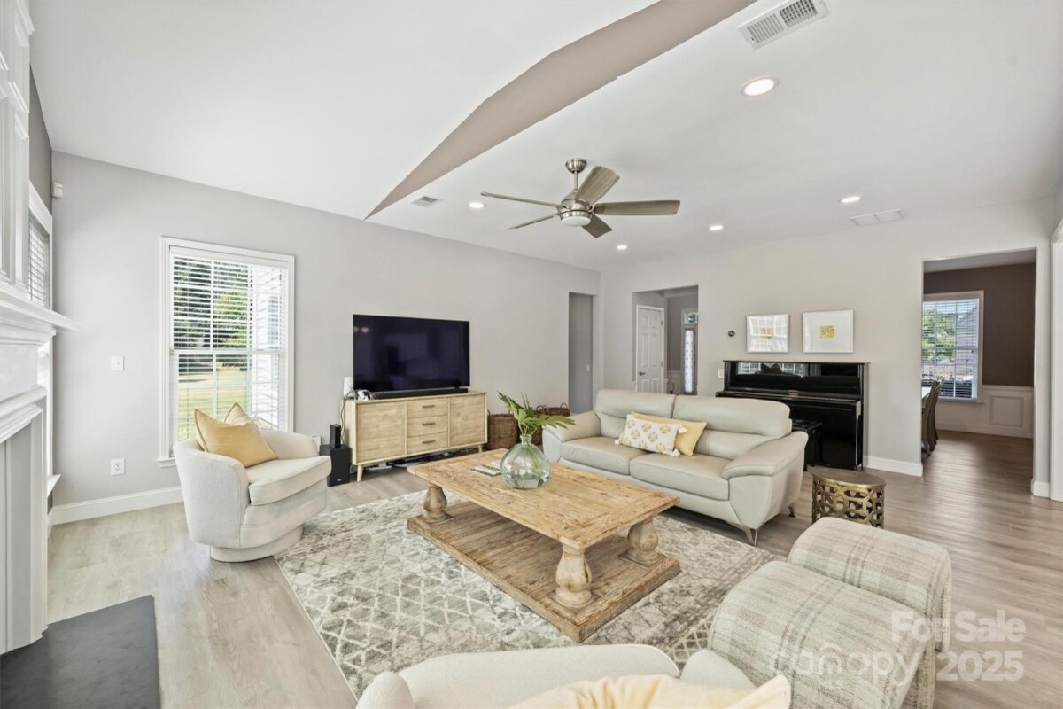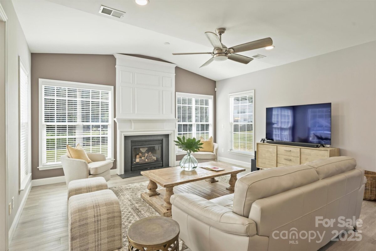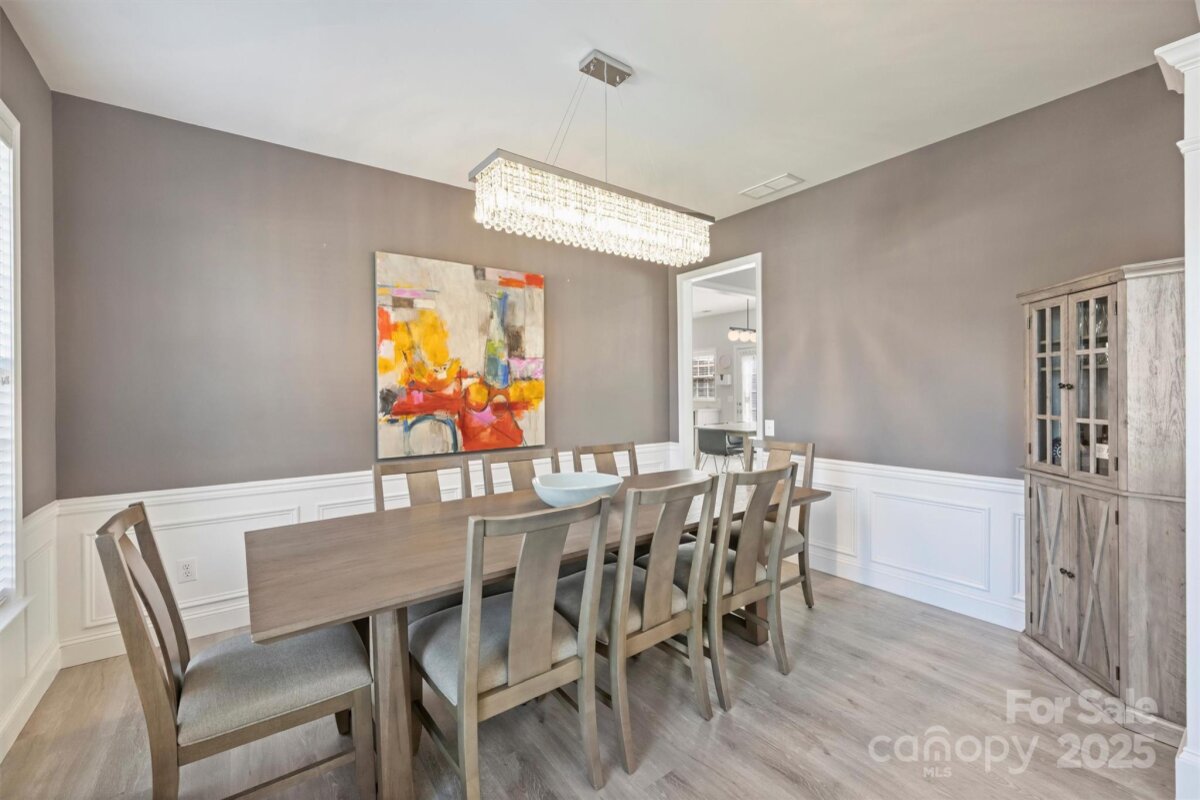 Sparkling home on an interior, cul-de-sac lot in a highly sought-after neighborhood. Tremendous, private yard and patio just off the kitchen. The open floor plan features high ceilings, natural light, updated light fixtures and flooring. The main level includes generously-sized living and dining rooms, a quiet study with french doors and handsome craftsman-style white paneling, and a spacious great room that opens to the kitchen and breakfast area. On the second floor, you find a lovely primary retreat with a pretty bath and a large walk-in closet. Secondary bedrooms have ample storage and share a nice hall bath. The garage is equipped with plenty of additional shelving and an e-car outlet. Neighbors can gather at the swim/ tennis club and the playground and enjoy a short drive to an abundance of amenities including Stonecrest, Blakeney, and the Bowl at Ballantyne.