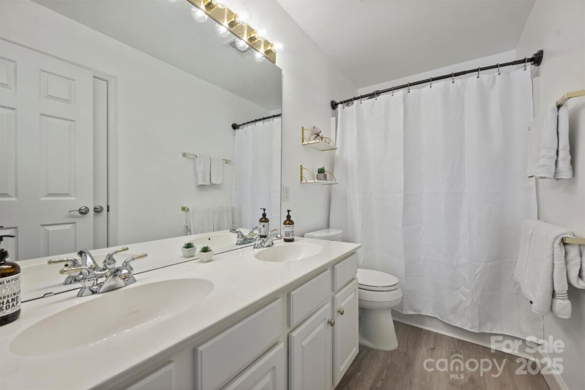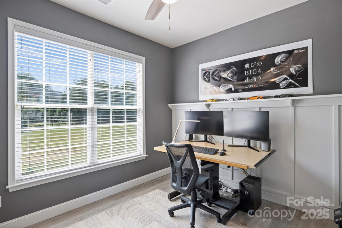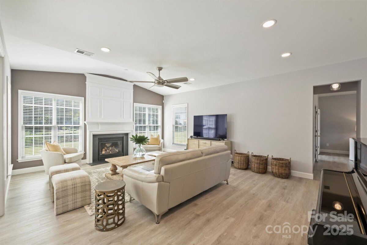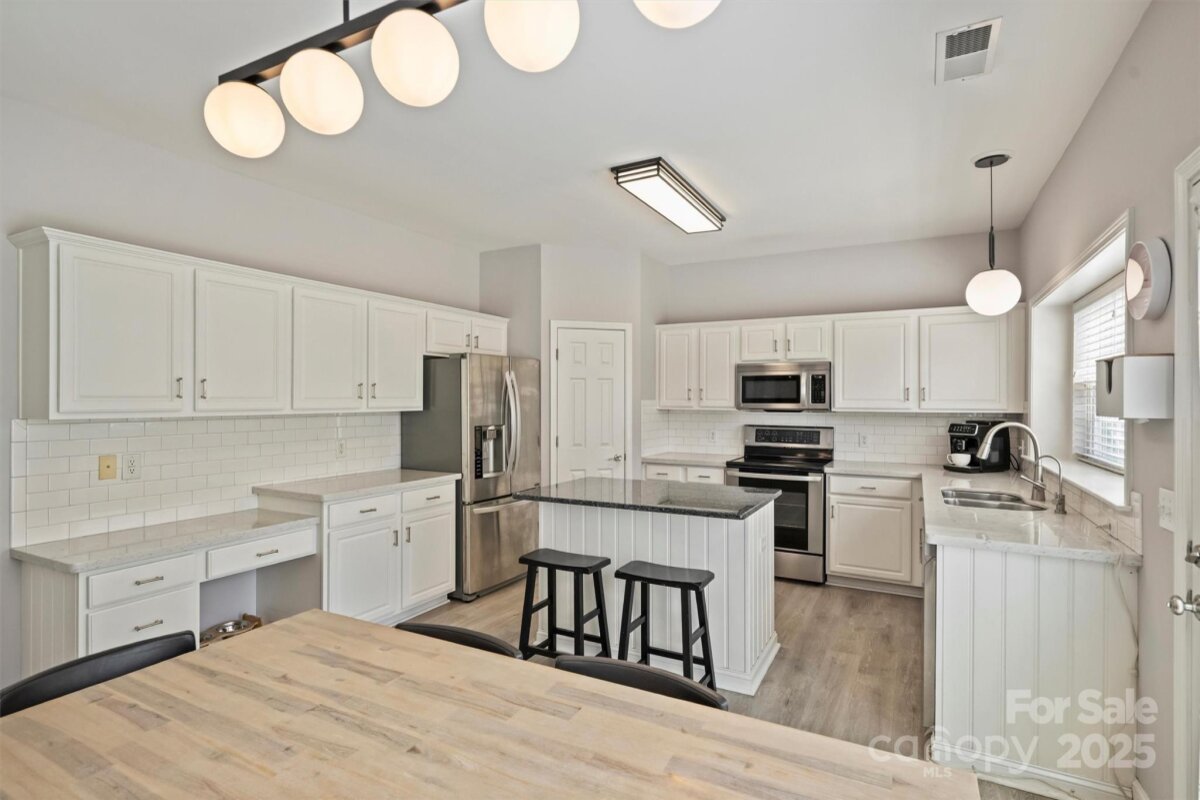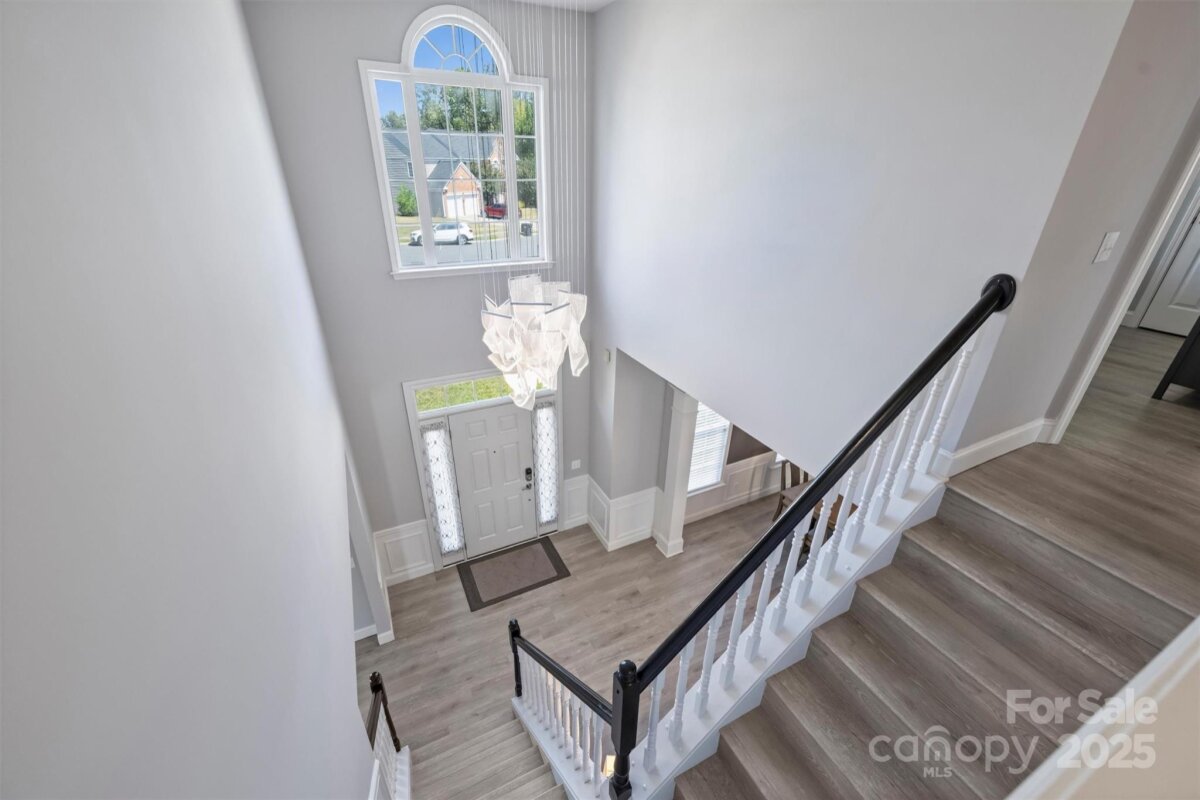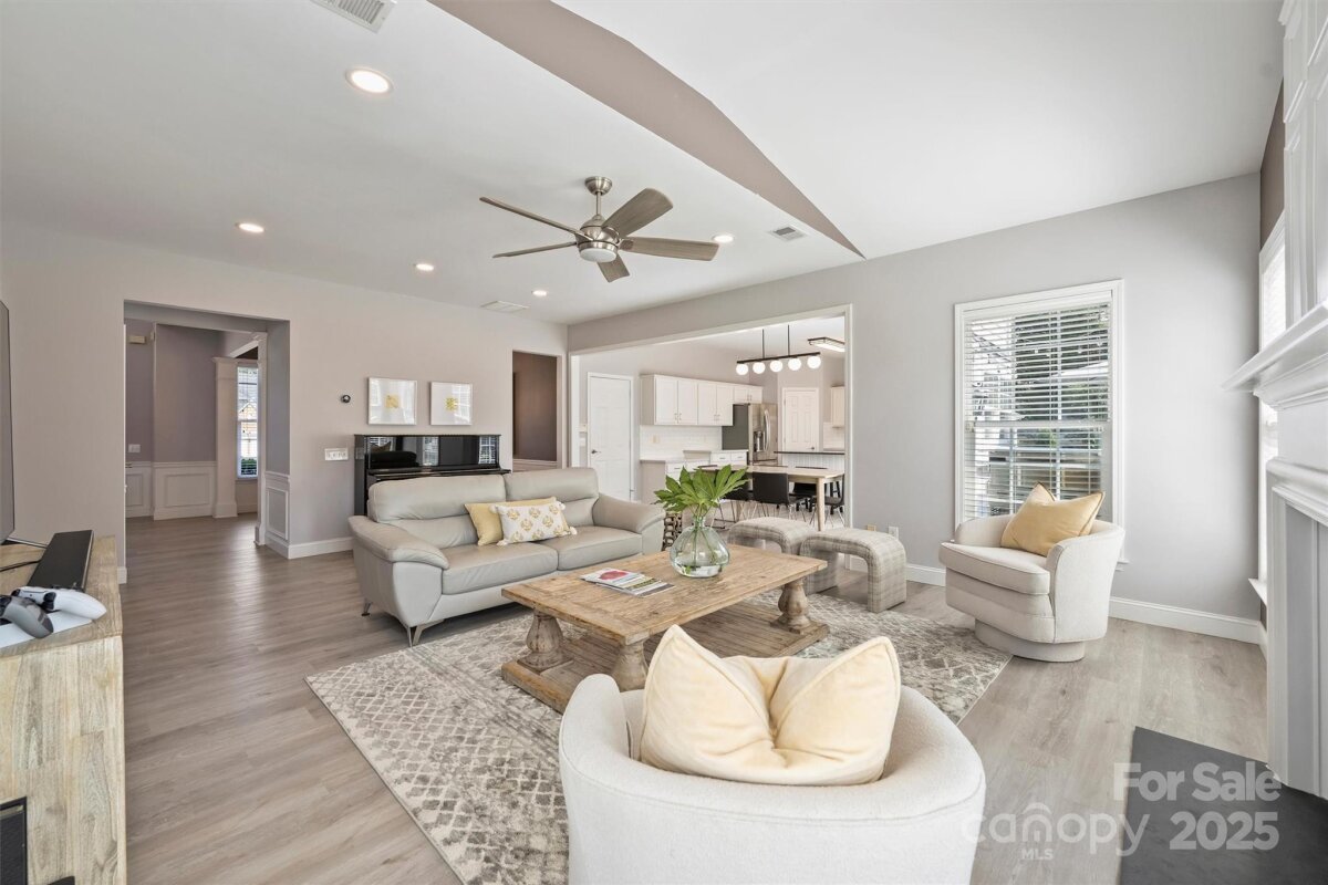 Sparkling home on an interior, cul-de-sac lot in a highly sought-after neighborhood. Tremendous, private yard and patio just off the kitchen. The open floor plan features high ceilings, natural light, updated light fixtures and flooring. The main level includes generously-sized living and dining rooms, a quiet study with french doors and handsome craftsman-style white paneling, and a spacious great room that opens to the kitchen and breakfast area. On the second floor, you find a lovely primary retreat with a pretty bath and a large walk-in closet. Secondary bedrooms have ample storage and share a nice hall bath. The garage is equipped with plenty of additional shelving and an e-car outlet. Neighbors can gather at the swim/ tennis club and the playground and enjoy a short drive to an abundance of amenities including Stonecrest, Blakeney, and the Bowl at Ballantyne.