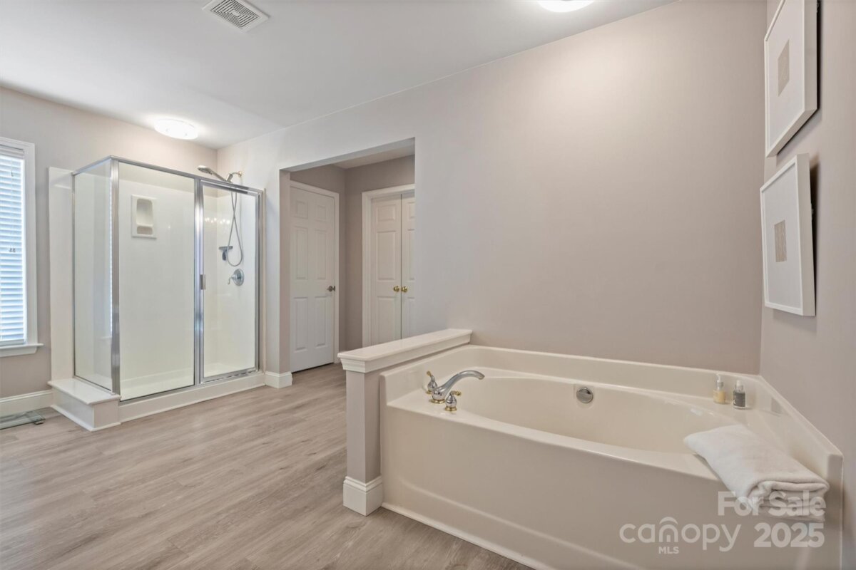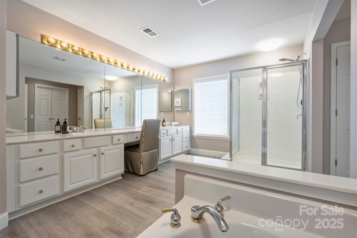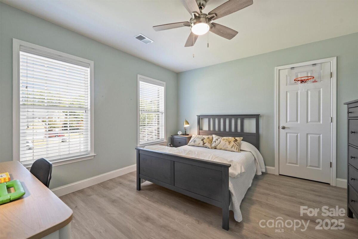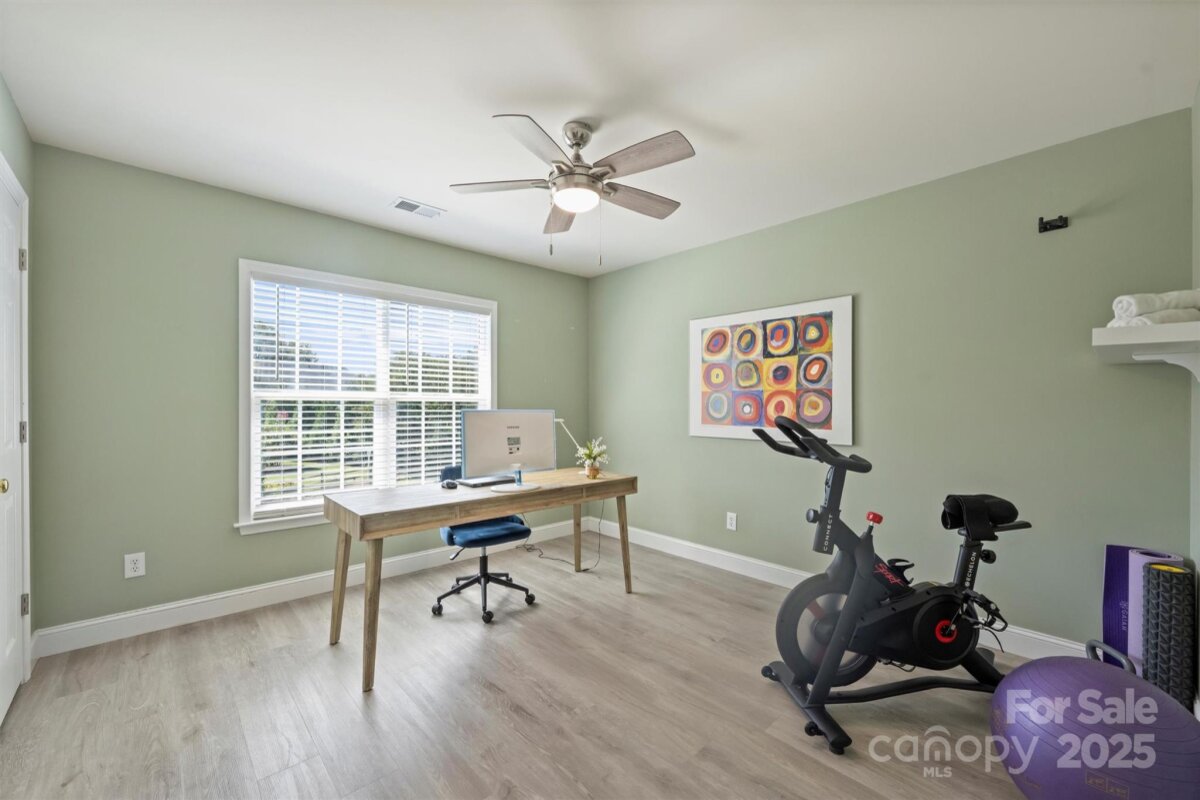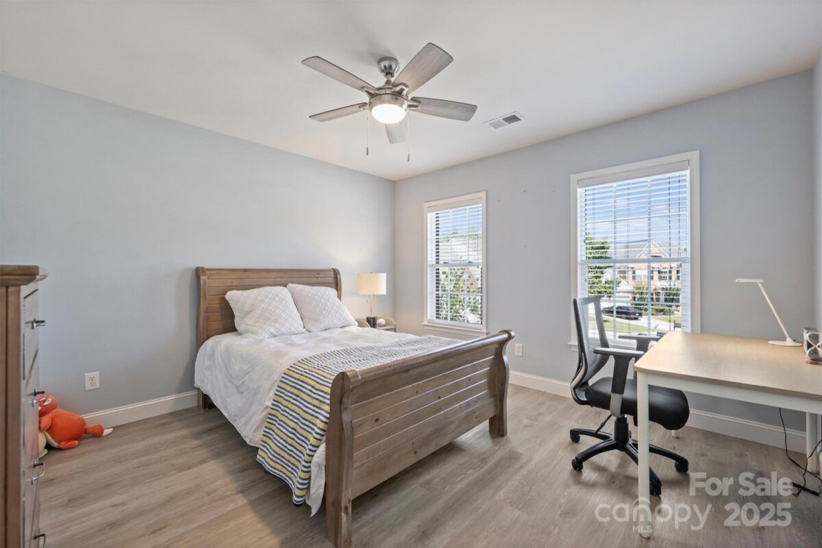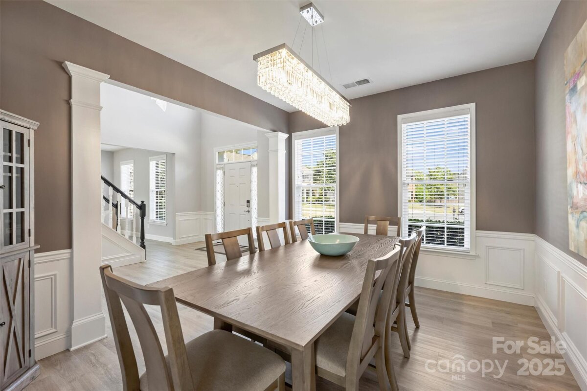 Sparkling home on an interior, cul-de-sac lot in a highly sought-after neighborhood. Tremendous, private yard and patio just off the kitchen. The open floor plan features high ceilings, natural light, updated light fixtures and flooring. The main level includes generously-sized living and dining rooms, a quiet study with french doors and handsome craftsman-style white paneling, and a spacious great room that opens to the kitchen and breakfast area. On the second floor, you find a lovely primary retreat with a pretty bath and a large walk-in closet. Secondary bedrooms have ample storage and share a nice hall bath. The garage is equipped with plenty of additional shelving and an e-car outlet. Neighbors can gather at the swim/ tennis club and the playground and enjoy a short drive to an abundance of amenities including Stonecrest, Blakeney, and the Bowl at Ballantyne.