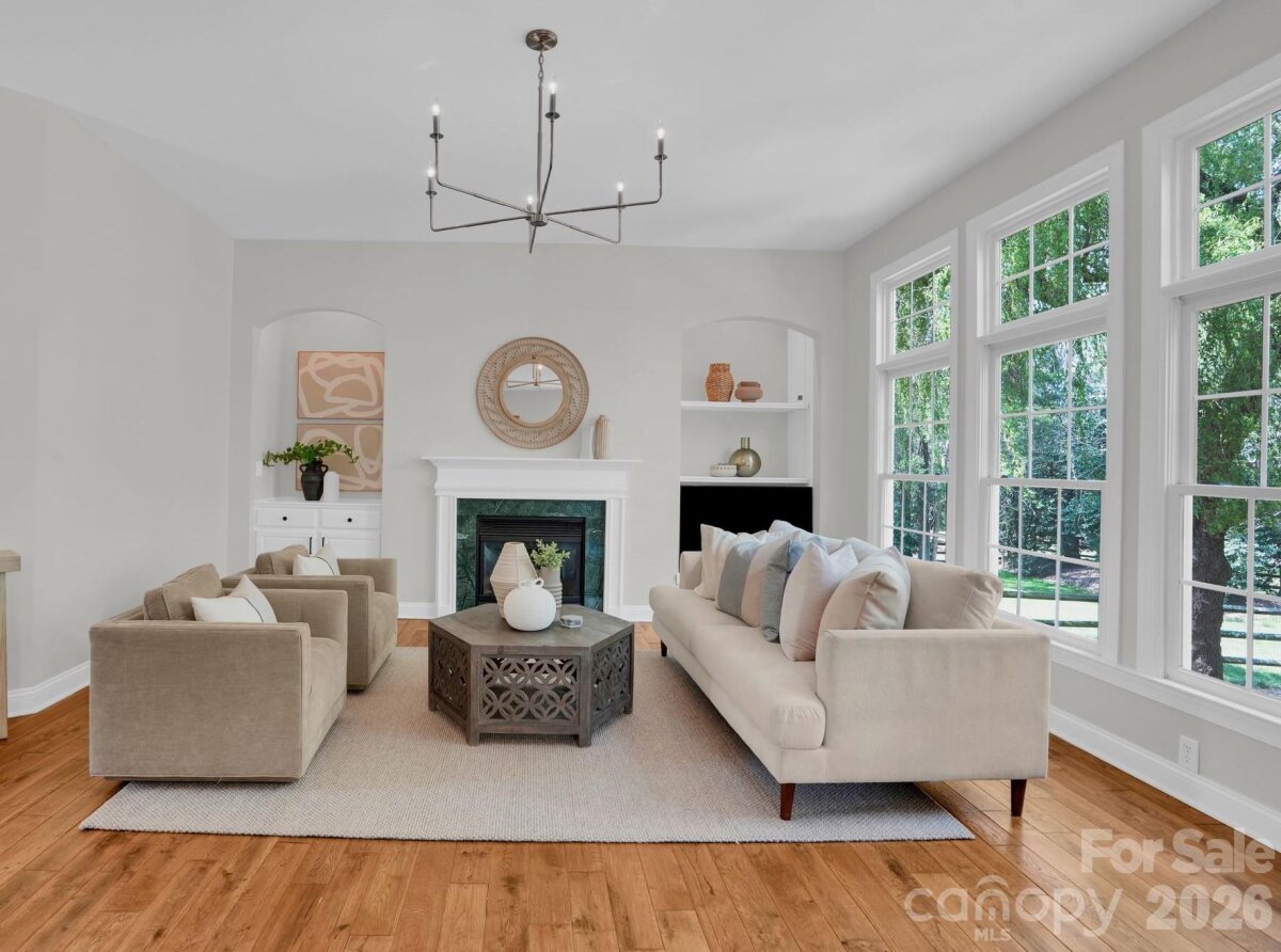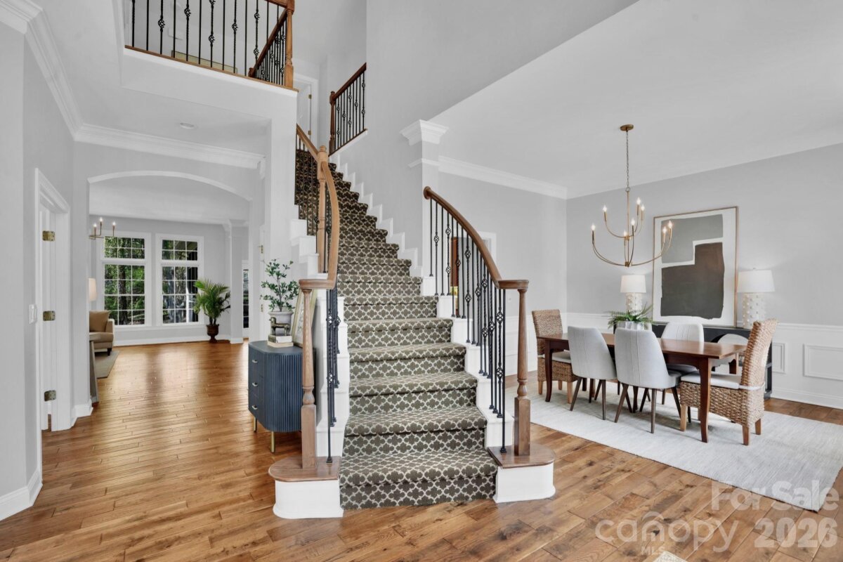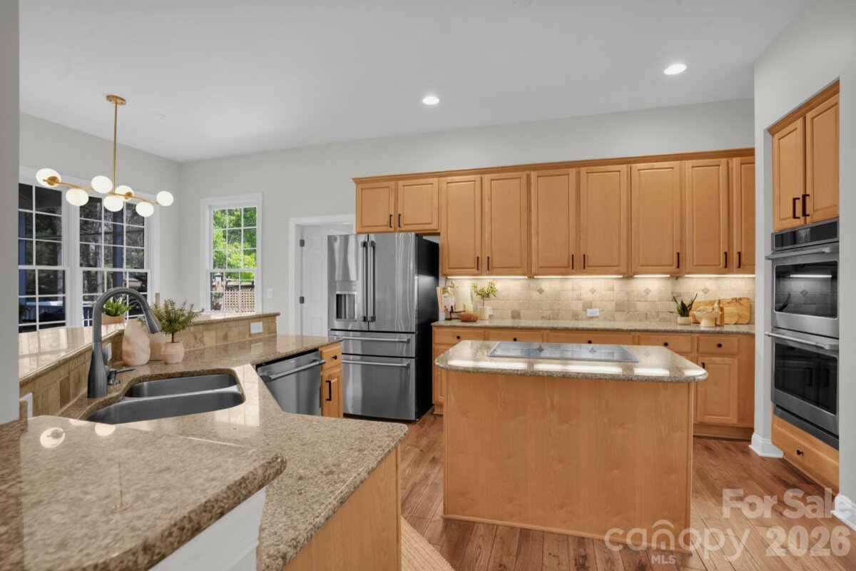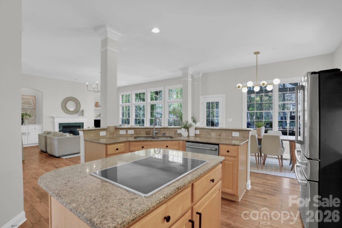 Welcome to this beautifully updated brick home in the highly sought-after Thornhill neighborhood in Ballantyne, perfectly situated on a quiet, well-manicured lot. Offering over 3,200 square feet of thoughtfully designed living space, this home blends timeless elegance with modern updates and exceptional functionality. Step inside to a bright, open floor plan featuring formal living and dining rooms, a dedicated home office, and a stunning family room highlighted by soaring 12-foot ceilings, a cozy fireplace, and a dramatic wall of floor-to-ceiling windows that fill the space with natural light. The well-appointed kitchen offers abundant cabinetry, granite countertops, new stainless steel GE Café appliances, a walk-in pantry, and a large center island with additional bar seating—ideal for both daily living and entertaining. Upstairs, you’ll find 4 generously sized bedrooms including a luxurious primary suite with its updated ensuite bath and large walk-in closet with California Closet built-ins. A versatile and sizable bonus room provides additional space and flexibility for a media room, kid’s playroom, workout room, or a 2nd office. One of the most prominent features of this home is the beautiful, screened porch with vaulted ceiling that was added by the owners. A truly special retreat overlooking a lushly landscaped park-like fully fenced backyard. Enjoy outdoor living at its finest with a large paver patio and dedicated grilling area, creating the perfect setting for for both everyday living and entertaining. Located in the heart of Ballantyne, this home offers unbeatable convenience to shopping, dining, TOP RATED SCHOOLS, I-485 and the Charlotte Douglass International Airport. Thornhill residents enjoy resort-style amenities including pools, tennis and pickleball courts, playgrounds, walking trails, and access to Big Rock Nature Preserve. Less than 1 mile to the wildly popular Ballantyne Bowl - a premier 20-acre dining, retail, and entertainment district located in the heart of South Charlotte. Minutes to Stonecrest, Blakeney, Ballantyne Village shopping centers and the new Wegmans opening this Fall! Built by David Weekley Homes this is a one-of-a-kind floor plan in the neighborhood. This is a rare opportunity to own a meticulously maintained, move-in ready home in one of Charlotte’s most desirable communities.
