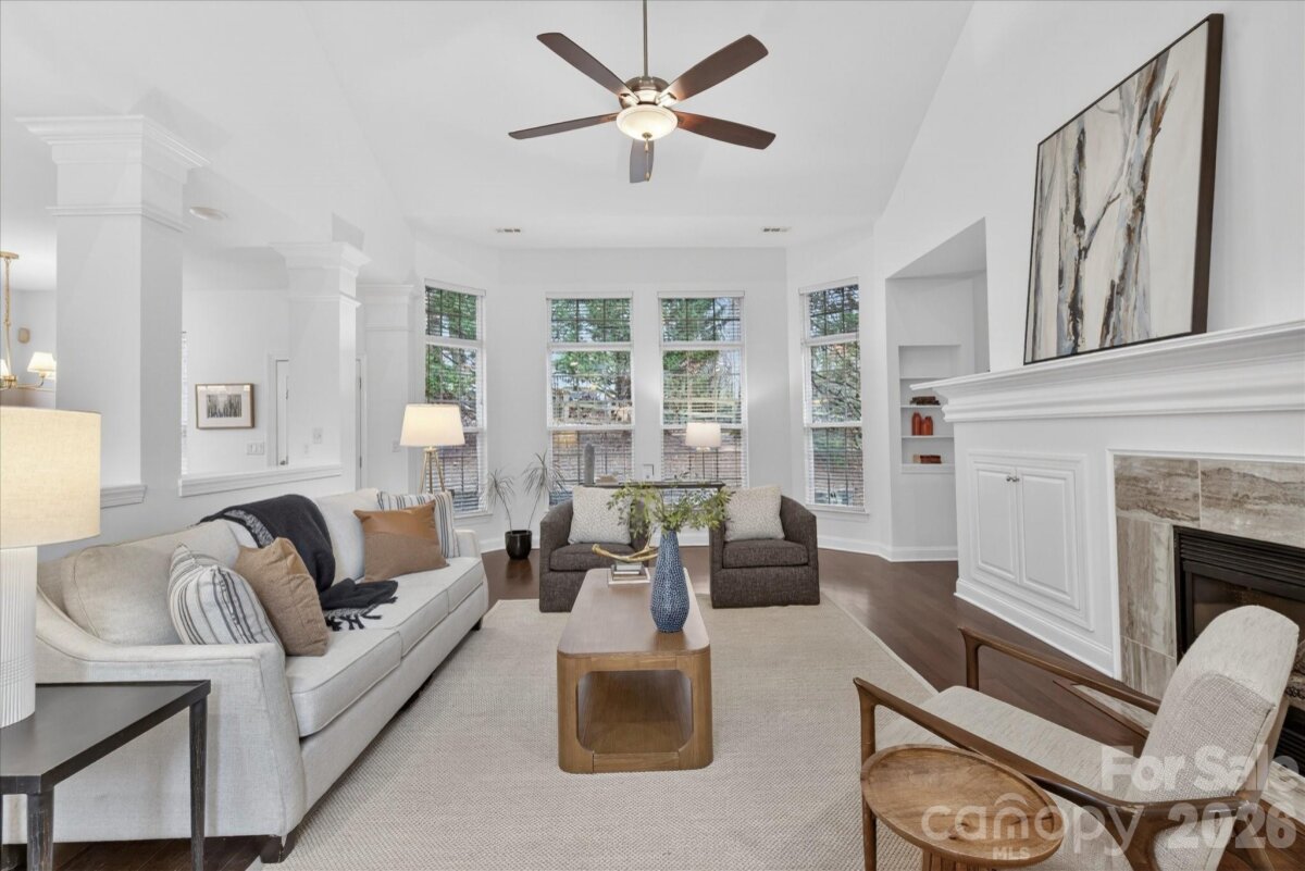 Tucked away at the end of a quiet cul-de-sac, 10931 Owl Nest Lane offers privacy and livability in one of South Charlotte’s most coveted Ballantyne neighborhoods, Thornhill. From the moment you step inside, the home feels bright and welcoming thanks to dramatic oversized windows that stretch across the back of the house and flood the space with natural light. The open, airy feel, and two-story-high ceiling, creates an instant wow factor while still maintaining a comfortable, everyday flow, perfect for both entertaining and relaxed living. The primary suite is a true retreat, featuring an updated primary bathroom with refined finishes that bring a spa-like feel to your daily routine. Thoughtful upgrades throughout the home, including updated systems, ensure style, function, and peace of mind, allowing you to move in and enjoy the home without a to-do list. The layout is well designed and inviting, offering flexibility for work-from-home life, hosting friends, or quiet evenings in. Location truly elevates this home. Just minutes from the Ballantyne Bowl, for casual nights out and entertainment, as well as StoneCrest at Piper Glen, for shopping, dining out, movies and many other conveniences. Just minutes from I-485, this location is ideal for an uptown commute, hospitals and world class shopping. Neighborhood amenities include a pond, swimming pool, picnic pavilion, playground, tennis courts and the beloved Big Rock Nature Preserve.