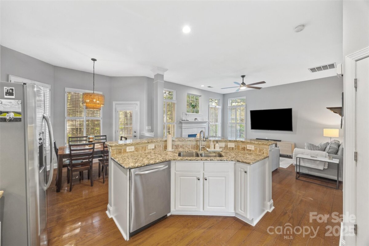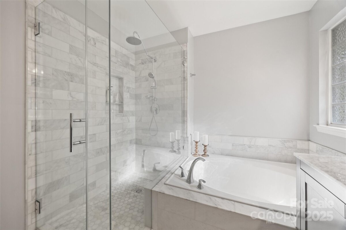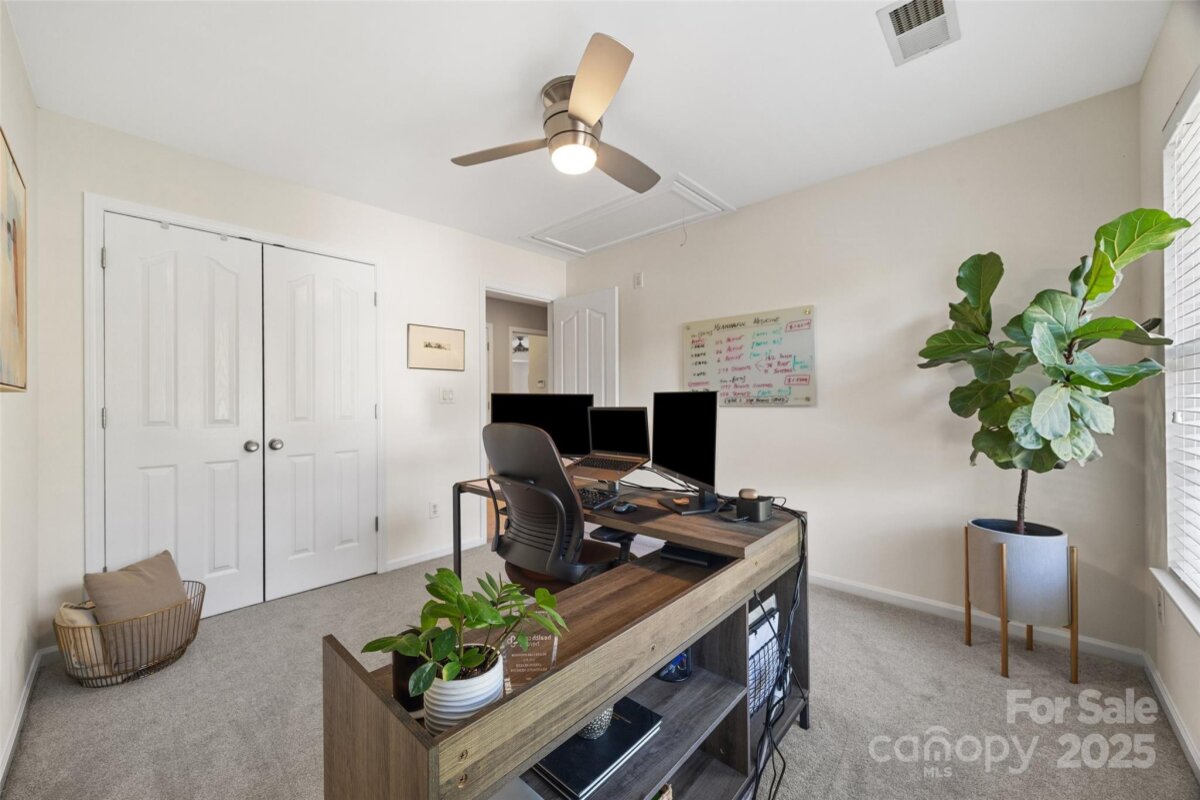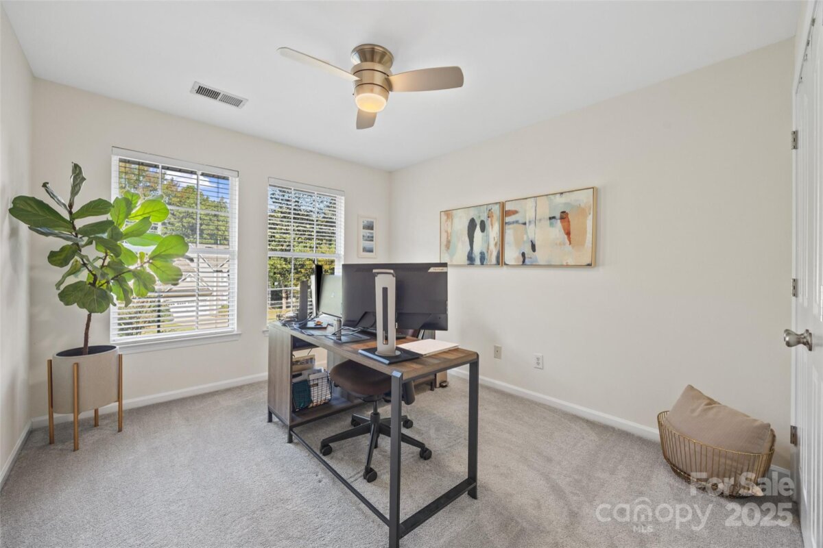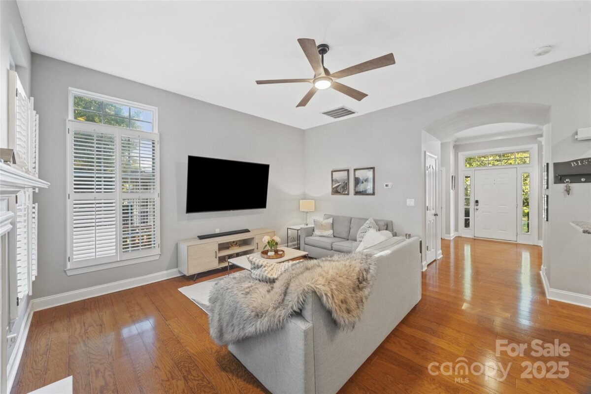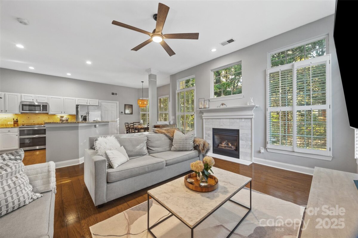 LOCATION, LOCATION, LOCATION! Thornhill is a vibrant neighborhood just minutes from entertainment, restaurants and more. Enjoy concerts at the new Ballantyne Bowl, live music at the local brewery, shopping at Stonecrest plus the nature trail at Big Rock Preserve. Don't forget the neighborhood's own amazing amenities too-outdoor pool, pavilion, pond, tennis courts, playground and more! Residents rave about the top-rated schools as well. This charming 4 bedroom, 2.5 bathroom home has been lovingly maintained and impeccably styled. Downstairs, there is a spacious foyer, updated powder room, hardwood flooring throughout, upgraded wooden shutters, a dining room plus open concept living room and kitchen. 10 foot ceilings throughout the main level make the home feel more spacious. Enjoy the cozy fireplace on chilly fall nights and host outdoor events on the patio in the fenced-in backyard. Upstairs, there is an airy primary suite, walk-in closet and AMAZING updated bathroom complete with carrara marble!! Each secondary bedroom shares the newly updated hall bathroom. The 4th bedroom/bonus room has both a walk-in closet and large storage closet. This home FEELS much larger in person and shows beautifully- you simply must see it for yourself!
