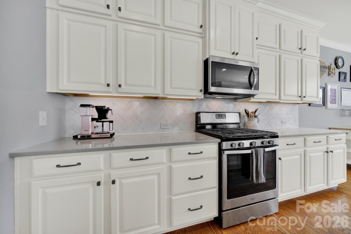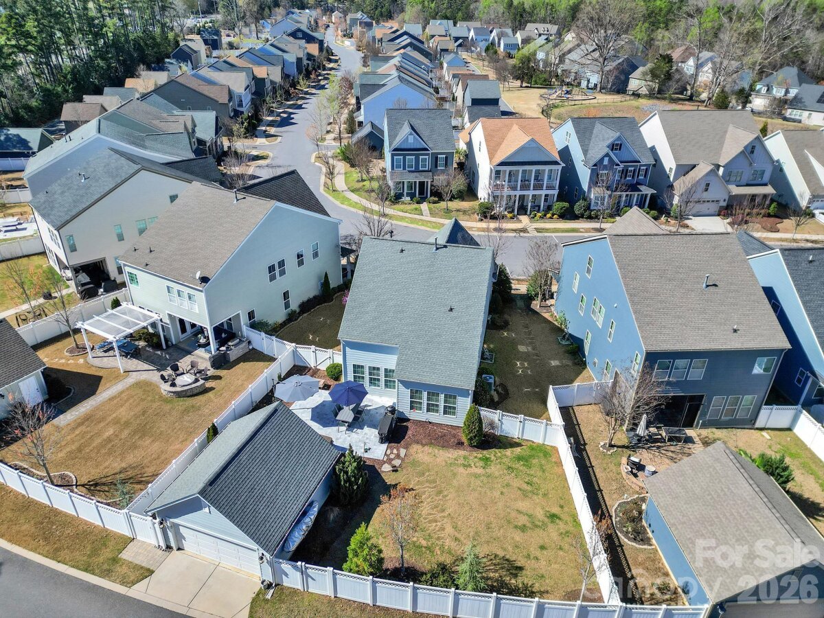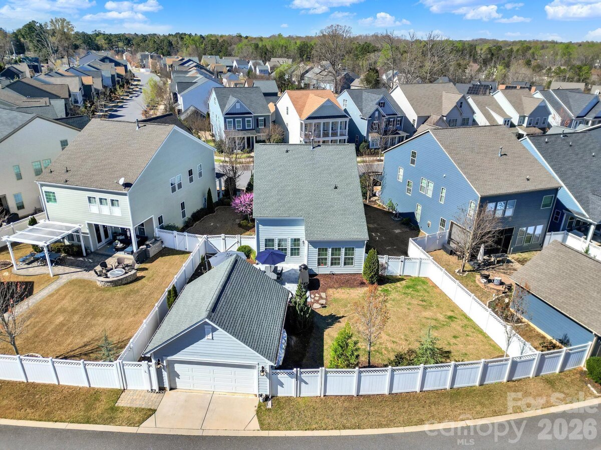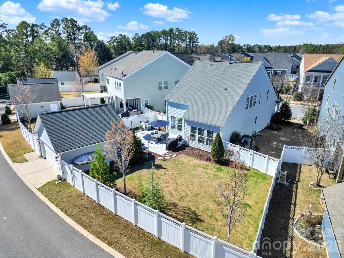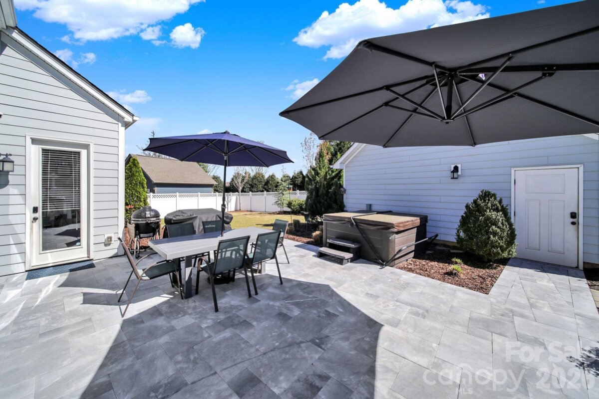 This stunning open-concept home is drenched in natural light and boasts a professionally landscaped yard with irrigation, extensive paver patio, and fully fenced yard, complete with an oversized Charleston-style covered front porch—perfect for relaxing evenings or morning coffee. The kitchen is a chef’s dream, featuring an oversized island with ample seating, stacked cabinets, gas range, stainless steel appliances, and an open dining area that flows seamlessly to the patio for effortless indoor-outdoor living and entertaining. The main level is highlighted with beautiful pre-engineer hardwood floors, a private office with French doors, and a spacious living room ideal for family gatherings. The primary suite on the main floor offers a spa-like bathroom, with a walk-in closet, creating a private retreat. Laundry room is conveniently located on the main level with extra storage closet. Upstairs, you’ll find a versatile loft, two additional bedrooms, a full bath, and a large walk-in storage closet completing the second level. Enjoy a vibrant community lifestyle with amenities including a clubhouse, pool, two playgrounds, walking trails, two scenic ponds, and nearby walkable dining options. All of this is located within the award-winning Fort Mill School District. This home combines modern comfort, thoughtful design, and an ideal location. Welcome home!