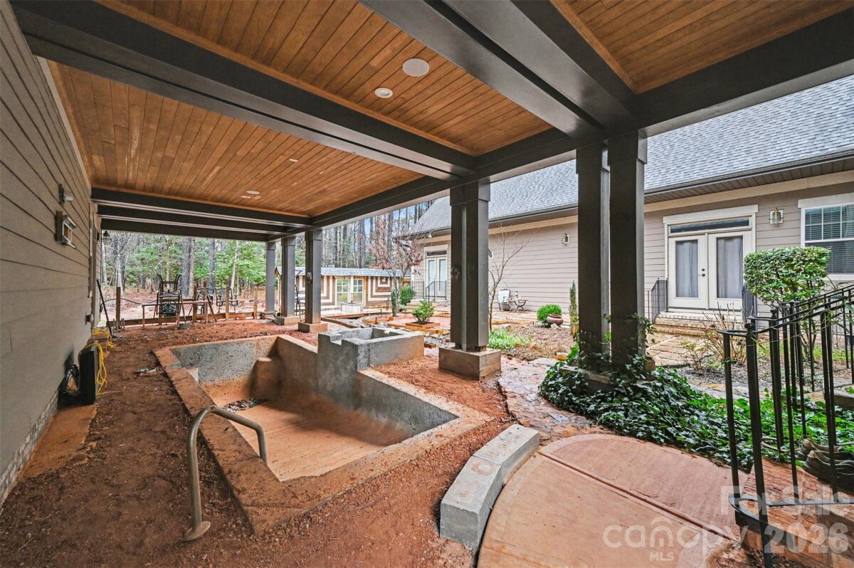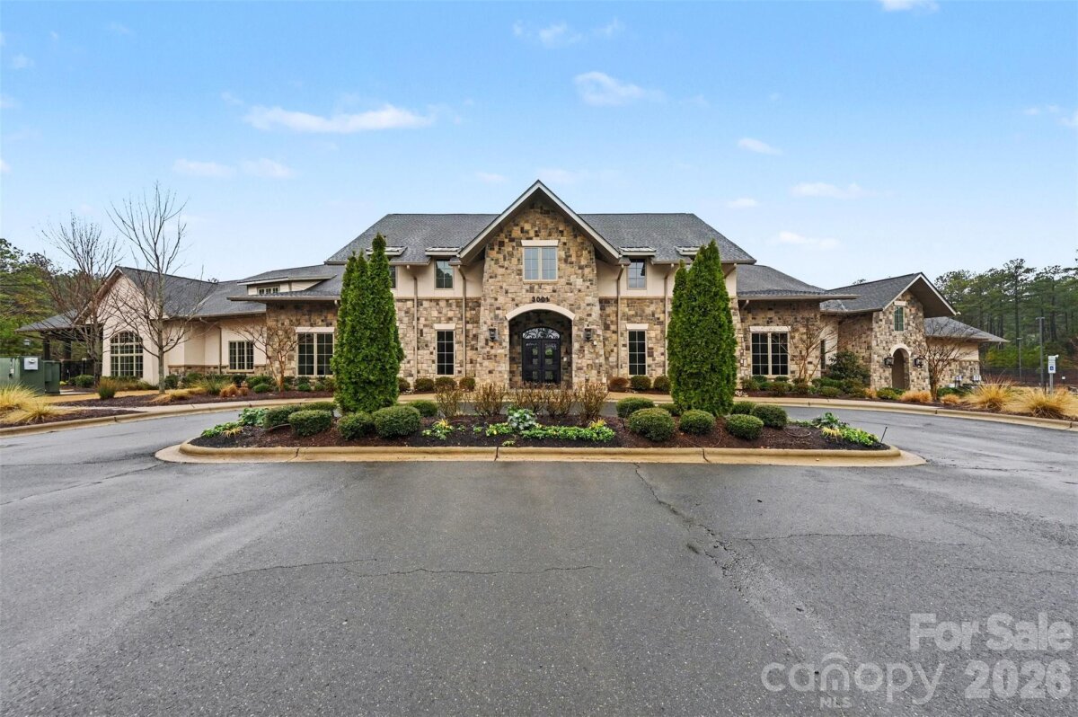 Tucked away on a beautifully private, wooded homesite in Riverchase, this custom brick home offers refined living with exceptional indoor and outdoor spaces designed for both relaxation and entertaining. Set on just under an acre, the property welcomes you with a stately façade, inviting front porch, and timeless architectural presence that blends seamlessly into its natural surroundings. Inside, the open floorplan is filled with natural light and anchored by a warm, inviting living room with a gas log fireplace, creating the perfect gathering space. The kitchen features an oversized island, abundant cabinetry, and thoughtful built-in details, flowing effortlessly into the dining and breakfast areas for easy everyday living and entertaining. Rich wood flooring and quality finishes add to the home’s elevated feel. The main-level primary suite is a true retreat, offering privacy and comfort with generous proportions, a spa-like bath, and spacious walk-in closet. Having the primary bedroom on the main floor provides both convenience and long-term livability. Upstairs, 2 additional bedrooms with private ensuites and a versatile family room create flexible space for guests, hobbies, or media. Step outside to a thoughtfully designed courtyard setting that feels like your own private escape. The in-ground pool has already been installed and awaits the finishing touches from its next owner, offering the opportunity to complete a stunning outdoor oasis tailored to your vision. A patio and covered porch provide multiple areas to relax, dine, and entertain while enjoying the peaceful, wooded backdrop. Evenings can be spent gathered around the fire pit under the Carolina sky. The detached garage includes a dedicated shop area currently set up as a home gym, offering incredible flexibility for fitness, hobbies, or creative pursuits. Located in the sought-after Riverchase community with access to resort-style amenities and scenic walking trails, this home combines privacy, space, and lifestyle in one exceptional Lancaster property