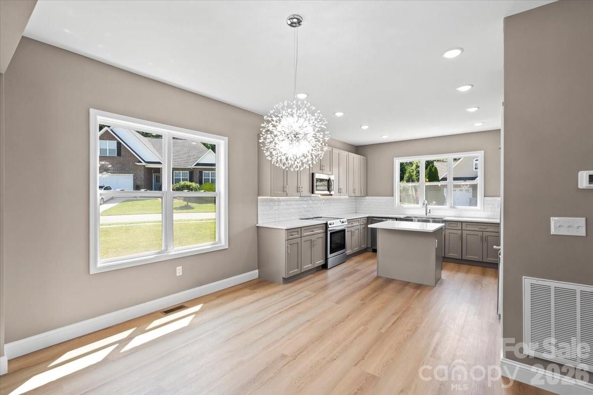 This new construction home is located in the Northwest Hickory Waterstone subdivision. The open floor plan features a large kitchen with gray cabinets, an island, beautiful quartz countertops, and a tile kitchen backsplash. The large master bedroom has a walk-in closet, dual vanities, separate toilet, and tile shower. The house has a pantry and an extra linen closet for storage. The house features 3 bedrooms on the second floor which have large, walk-in closets with a shared double-sink vanity bathroom. All bathrooms have durable tile flooring. The rest of the house features luxury vinyl flooring. The large laundry is situated on the first floor. The living room features a modern, electric fireplace. Great schools systems in the surrounding area. Enjoy this beautiful house with a neighborhood pond.