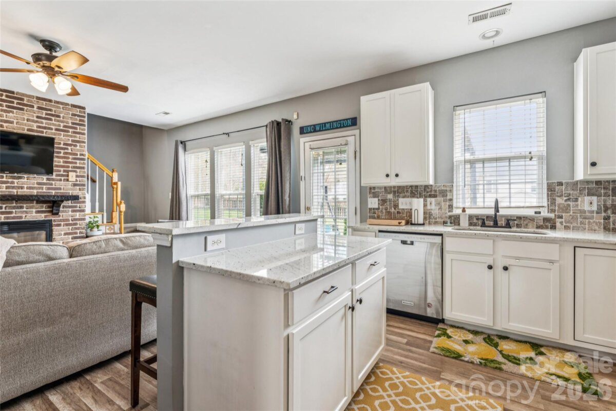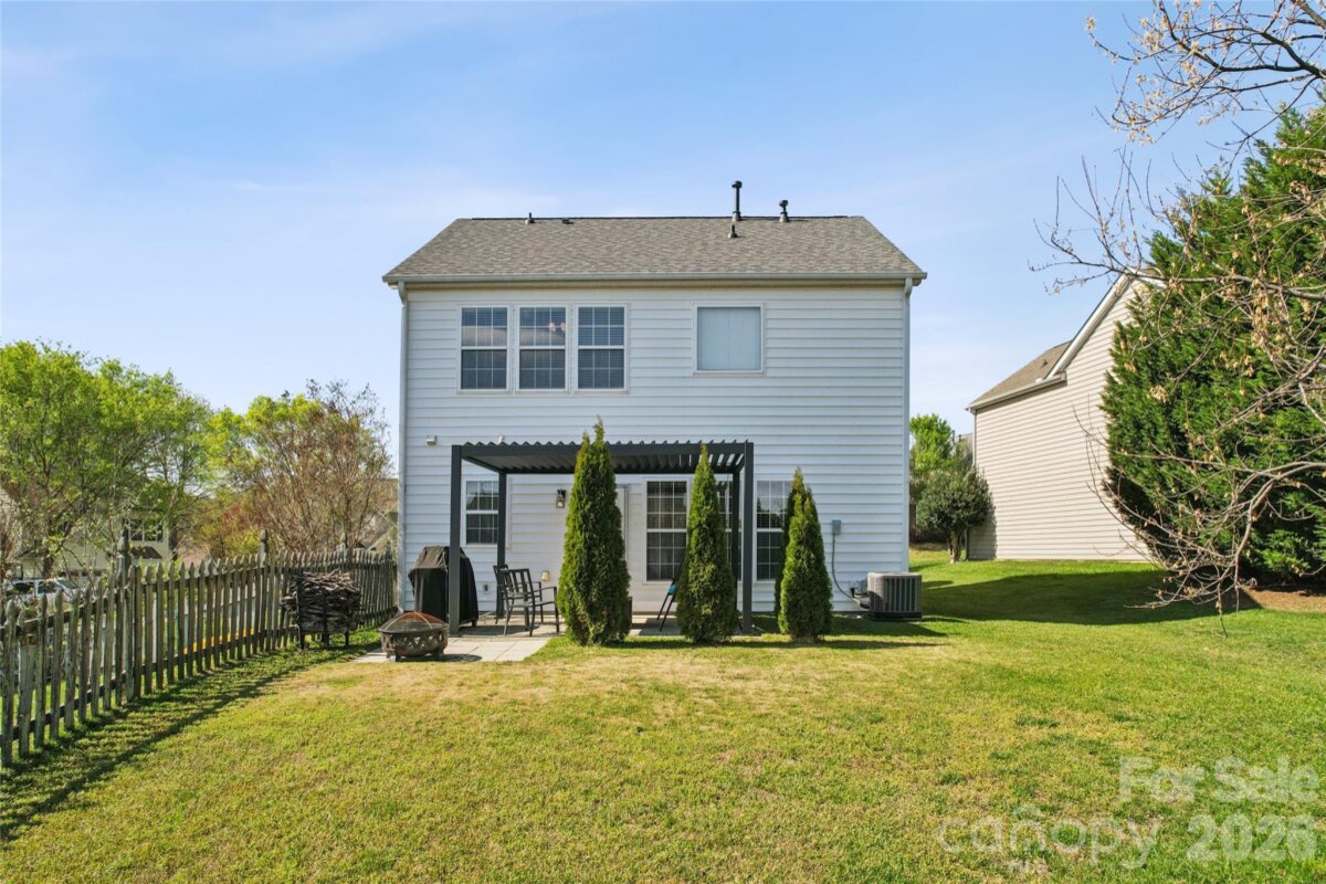 Welcome to this beautifully maintained Waterstone home tucked away on a quiet cul de sac in the heart of Fort Mill. A charming rocking chair front porch creates a warm first impression, while the fenced backyard with an extended patio and pergola offers the perfect space to relax or entertain, all framed by mature trees for added privacy. Inside, you’ll find no carpet on the main level, neutral gray paint, and a light filled layout designed for everyday living. The spacious dining room welcomes you with abundant natural light, while the inviting family room features a gas brick fireplace with a wood mantle and flows seamlessly into the stylish kitchen with granite countertops, tile backsplash, white cabinetry, pantry, and stainless steel appliances including the refrigerator. Upstairs, the vaulted primary suite offers a wood accent wall, large walk in closet, and en suite bath with dual vanities, soaking tub, and tiled walk in shower. Two secondary bedrooms are connected by a Jack and Jill bath, and the laundry room is conveniently located upstairs. Roof replaced in 2025. Waterstone offers a central Fort Mill location with sidewalks, a community pool, clubhouse, playground, and basketball courts, all just minutes from shopping, dining, I 77, and award winning Fort Mill schools.