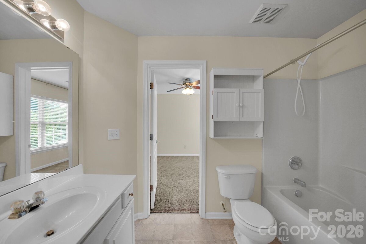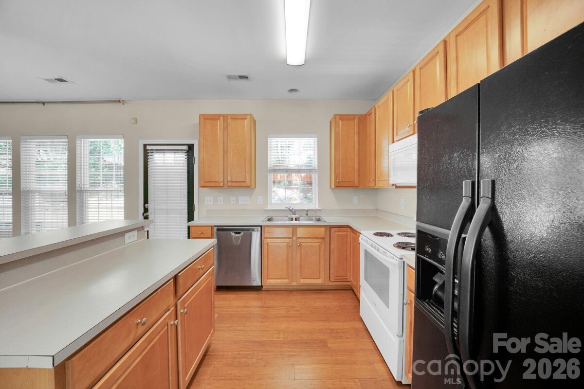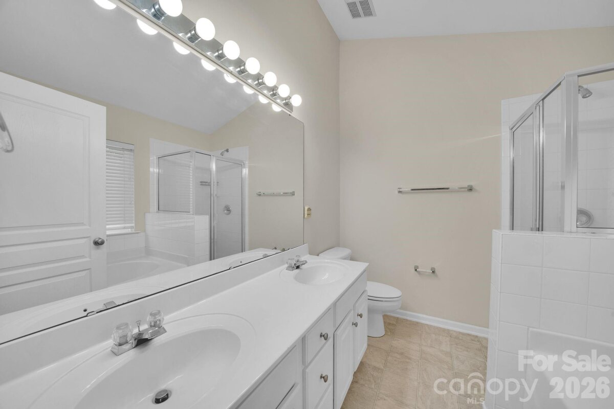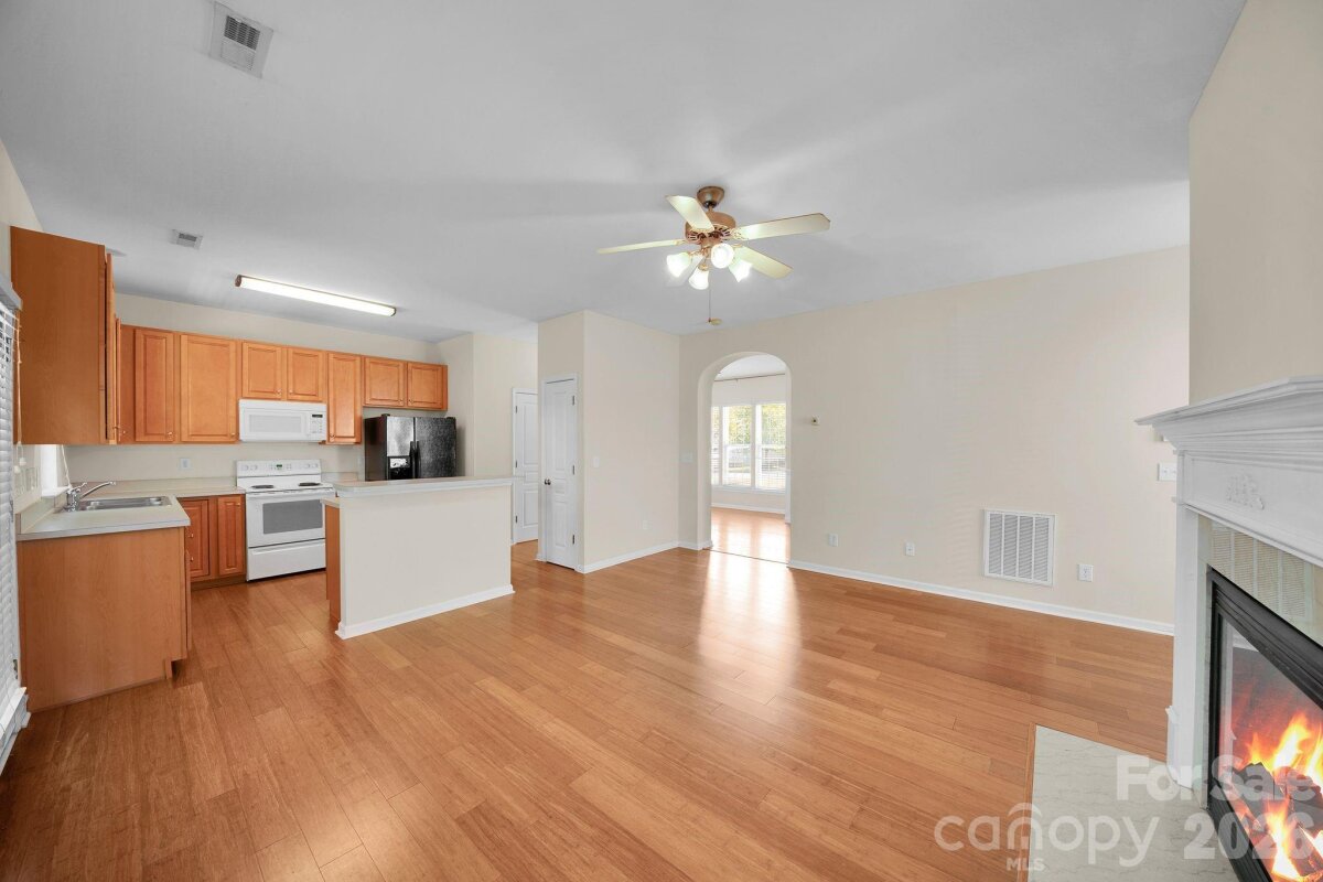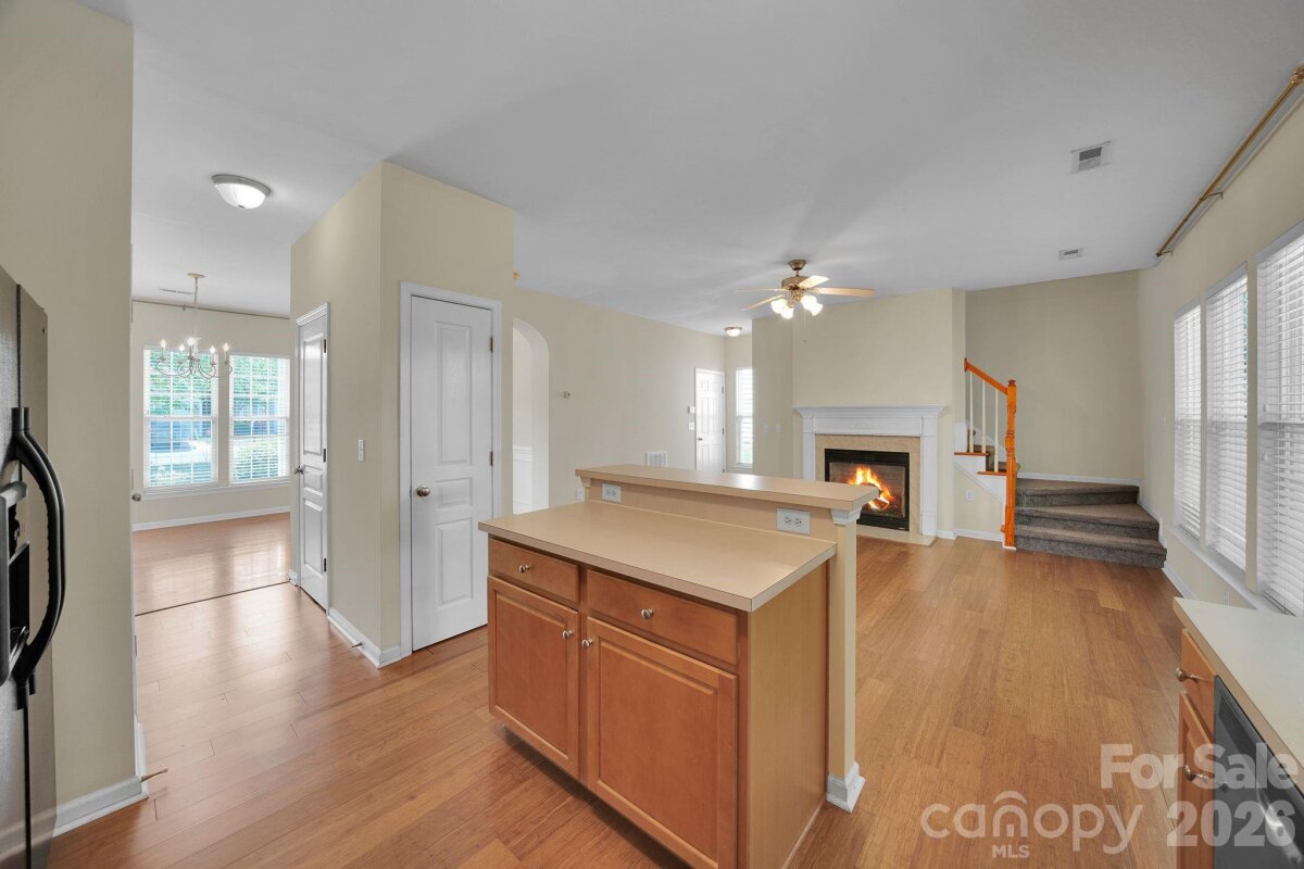This beautifully designed 3 Bedroom, 2.5 Bath home offers a perfect blend of comfort, style, and functionality. Featuring an open floor plan, the main living areas flow seamlessly together, enhanced by elegant bamboo flooring that adds warmth and sophistication throughout. The inviting family room serves as the heart of the home, complete with a cozy fireplace, ideal for relaxing evenings or gathering with guests. The kitchen is thoughtfully laid out with a central island, providing ample space for meal prep, casual dining, and entertaining. Just off the kitchen, a formal dining room offers a more refined setting for special occasions. The spacious primary suite is a true retreat, featuring a large walk-in closet and a luxurious En-suite bath. The Bathroom includes a soaking tub, separate shower, and dual sinks, creating a spa-like atmosphere. Two additional bedrooms share a convenient Jack-and-Jill bathroom; one of the bedrooms includes its own walk-in closet, adding extra storage and comfort. Additional highlights include a one-car garage and a privacy-fenced backyard, perfect for outdoor enjoyment, pets, or quiet relaxation and the roof is only four years old. Waterstone Pool in Walking distance!