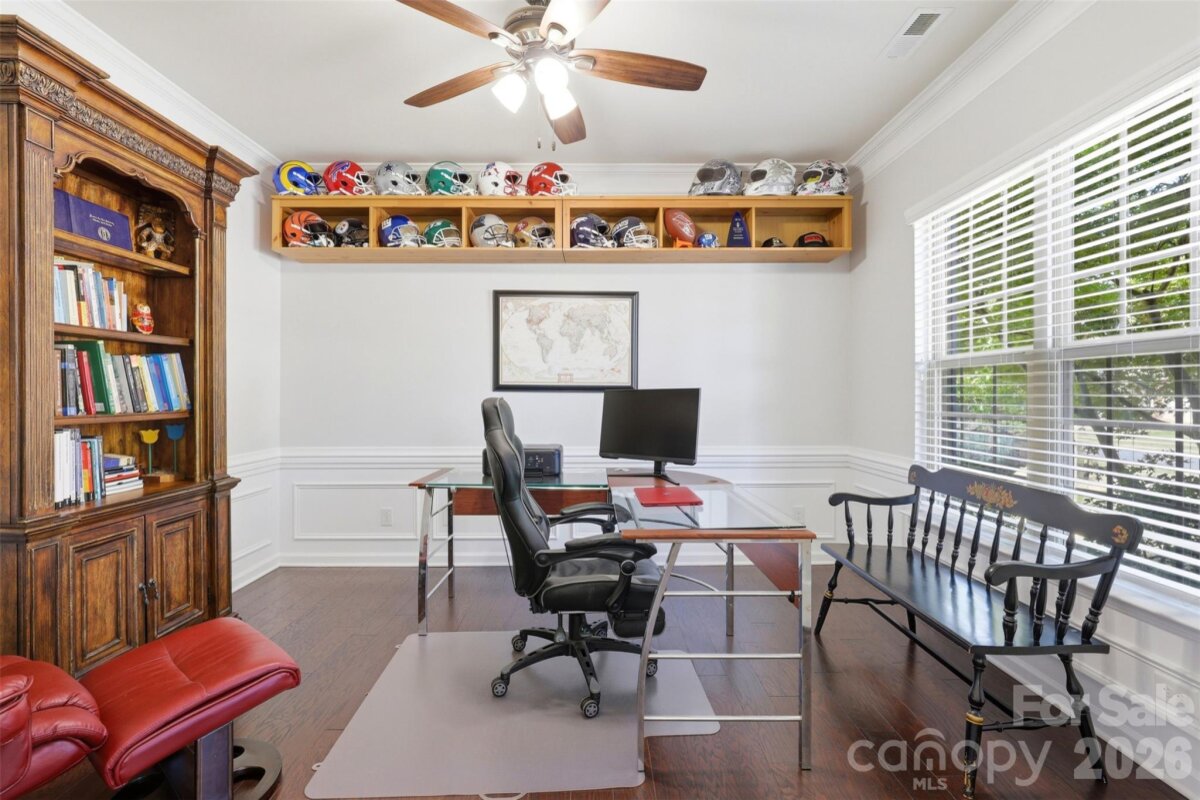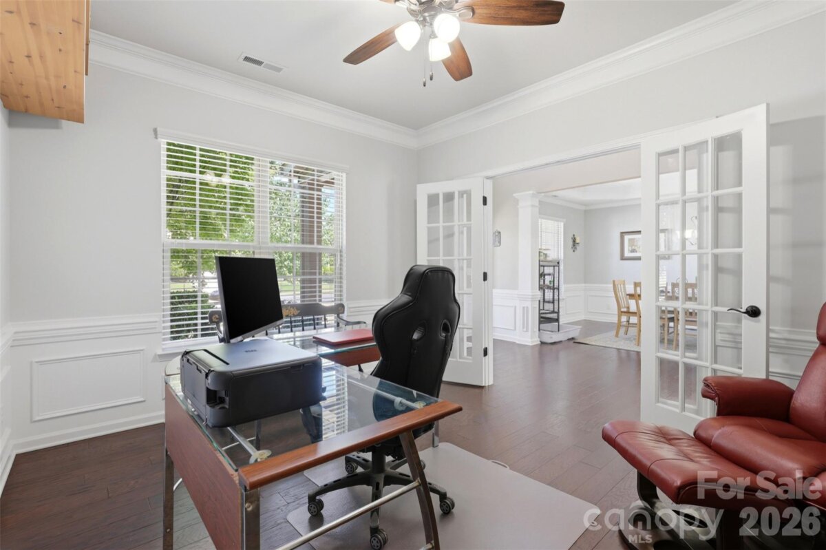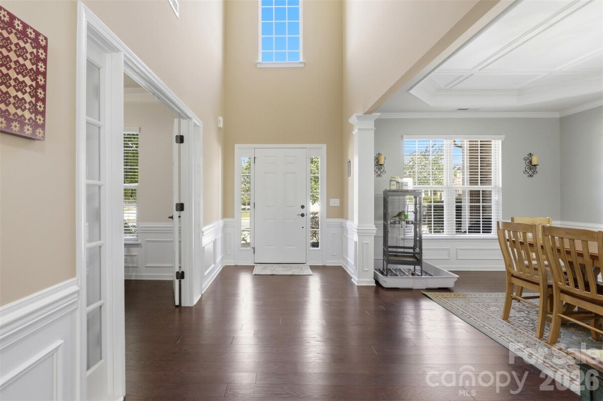 Stop scrolling! This is the one buyers wait for in Audubon Lake. One of the community’s larger floor plans, this home delivers space, function and location in all the right ways. The main level is designed for both everyday living and entertaining, featuring a formal dining room, dedicated office and a full guest suite. The spacious living area is anchored by a gas fireplace and equipped with surround sound, creating an ideal setting for relaxing or hosting. It flows seamlessly into a sunroom filled with natural light, while the butler’s pantry adds both convenience and additional storage. A large laundry room on the main level adds everyday practicality with the added bonus of a drop zone right as you enter from the 2 car garage. Upstairs, the oversized primary suite offers a private retreat with a sitting area. Three additional bedrooms and a large bedroom/bonus room provide flexibility for a variety of needs. Major updates include two commercial-grade HVAC units installed in 2023. The home is also equipped with solar panels, which will be paid off by the seller at closing, offering long-term energy efficiency. Set on a lot that backs to wooded views, the property provides access to walking trails leading to the neighborhood pond, creating a peaceful outdoor setting. Residents of Audubon Lake enjoy amenities including a pool with water slides, a play area and a multi-use field, all just a short distance away. Located in Indian Land’s growing U.S. 521 corridor, this home offers convenient access to Ballantyne, Fort Mill and the greater Charlotte area, along with nearby shopping, dining and everyday essentials.