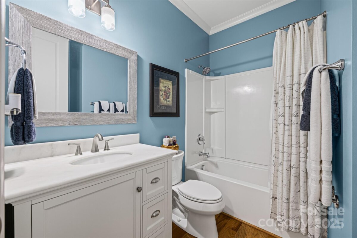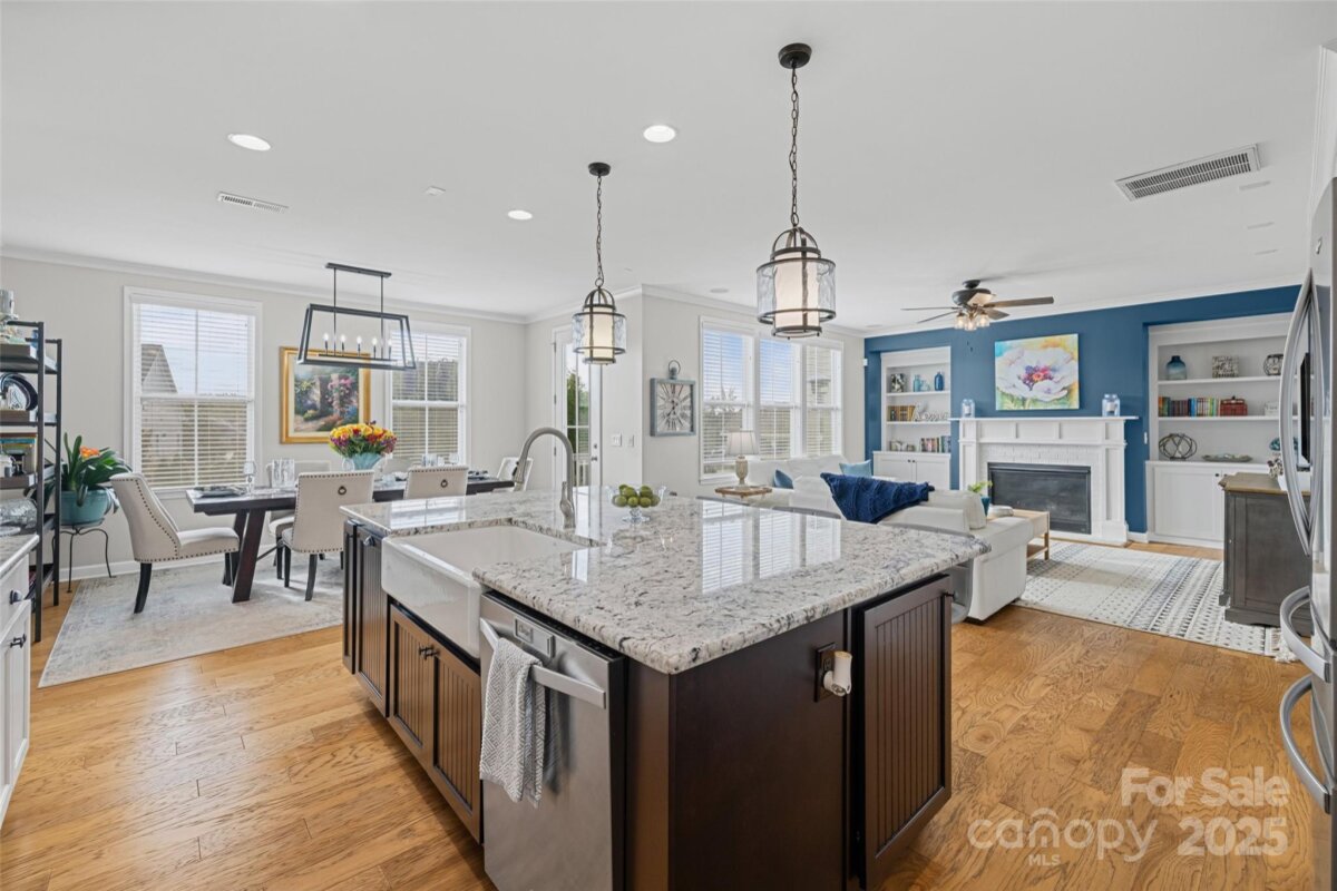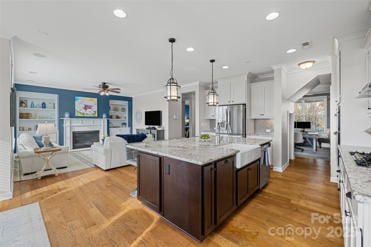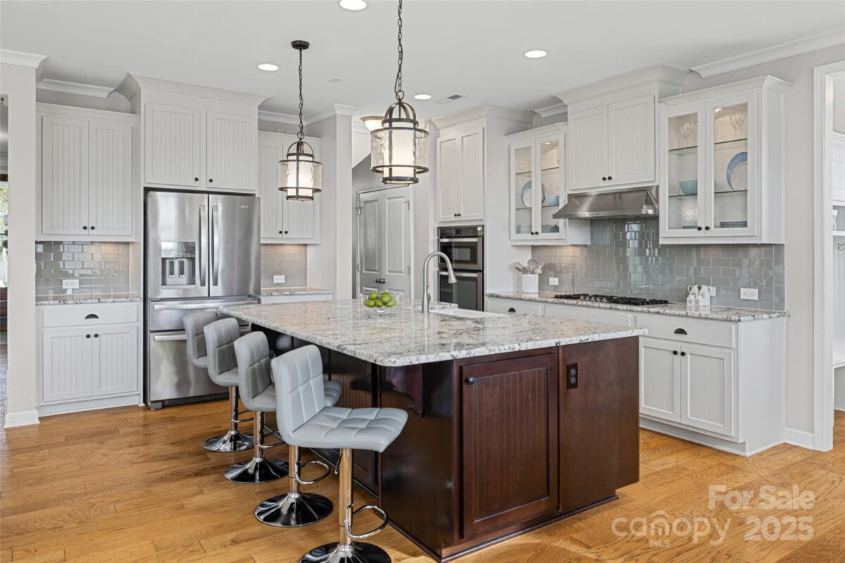 Perfect for the Fall season, this stunning John Wieland–built home welcomes you with a sprawling front porch and elegant double-stained entry doors — an ideal spot to unwind. Inside, you’ll find a light-filled, freshly painted interior featuring neutral 5-inch plank hardwood floors and an inviting open layout. The main level includes a convenient guest suite with a full bath, perfect for visiting guests or a private home office. The kitchen truly serves as the heart of the home, showcasing white cabinetry, gorgeous granite countertops, a stylish backsplash, under-cabinet lighting, a gas cooktop, and a charming white farmhouse sink. A large wood stained island with seating and additional cabinet storage opens effortlessly to the living and dining areas — ideal for everyday living and easy entertaining. Upstairs, brand-new carpeting leads to a relaxing primary suite complete with a walk-in closet, new quartz countertops, and a separate tiled shower and tub. Two additional bedrooms share a Jack-and-Jill bath, while a large bonus room at the end of the hall provides flexibility for a playroom, media space, or home gym. Step outside to a deck and fenced backyard offering endless possibilities to create your perfect space. Located in the highly desirable Bridgemill community, residents enjoy resort-style amenities including a clubhouse, two pools, pickleball courts, pocket parks, and a serene pond. Just a short walk to the front of the neighborhood brings you the convenience of to two local restaurants, and a bakery — the perfect blend of comfort, convenience, and community. This exceptional home combines timeless craftsmanship with modern updates — a true gem in one of the Indian Lands most sought after neighborhoods. Additional photos and full video coming on Friday 10/17- showings start Saturday 10/18 with an open house from 1-3pm