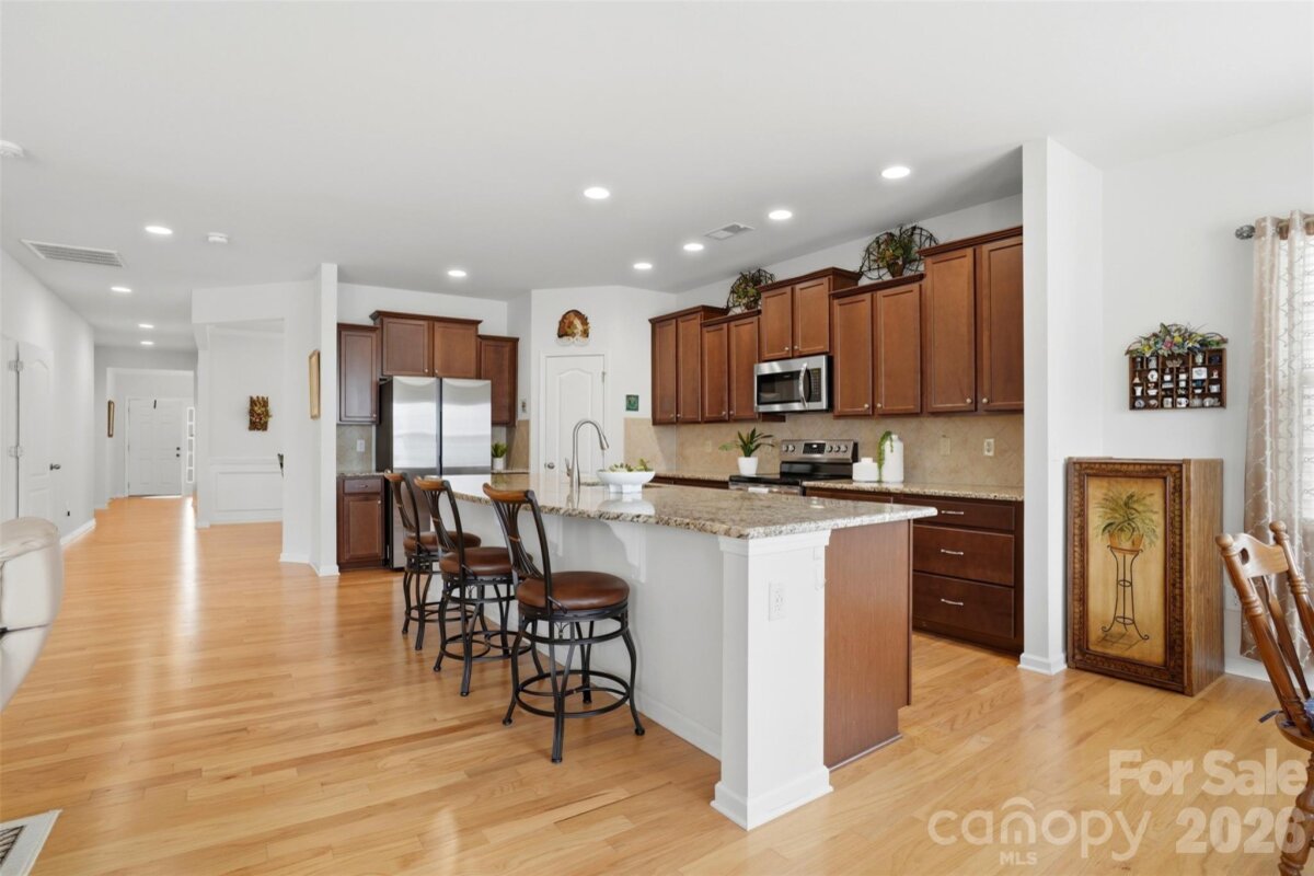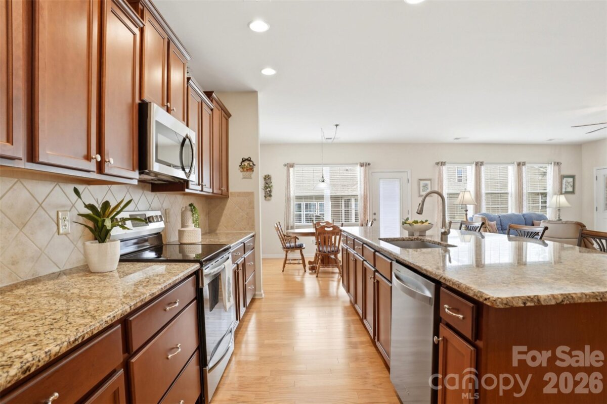 Beautiful brick-front ranch in the desirable Carolina Reserve community in Indian Land. Ideally situated less than 10 minutes from both downtown Waxhaw and the new CrossRidge shopping center featuring Costco and Target, a perfect balance of convenience and location. This well-maintained home features an open floor plan with neutral paint throughout and a spacious living room anchored by a cozy gas fireplace. The kitchen boasts an oversized island, granite countertops, and a walk-in pantry with built-in pull-out shelving for optimal storage. The large primary suite offers a peaceful retreat with direct access to the sunroom—perfect for enjoying morning coffee or relaxing evenings. Additional highlights include a finished two-car garage and thoughtful exterior upgrades like an extended paver walkway on both sides of the driveway. Step outside to a beautifully designed backyard featuring a stamped patio, professional landscaping, and garden beds. This home truly offers easy, one-level living in a prime location close to shopping, dining, and entertainment. Schedule your showing today!