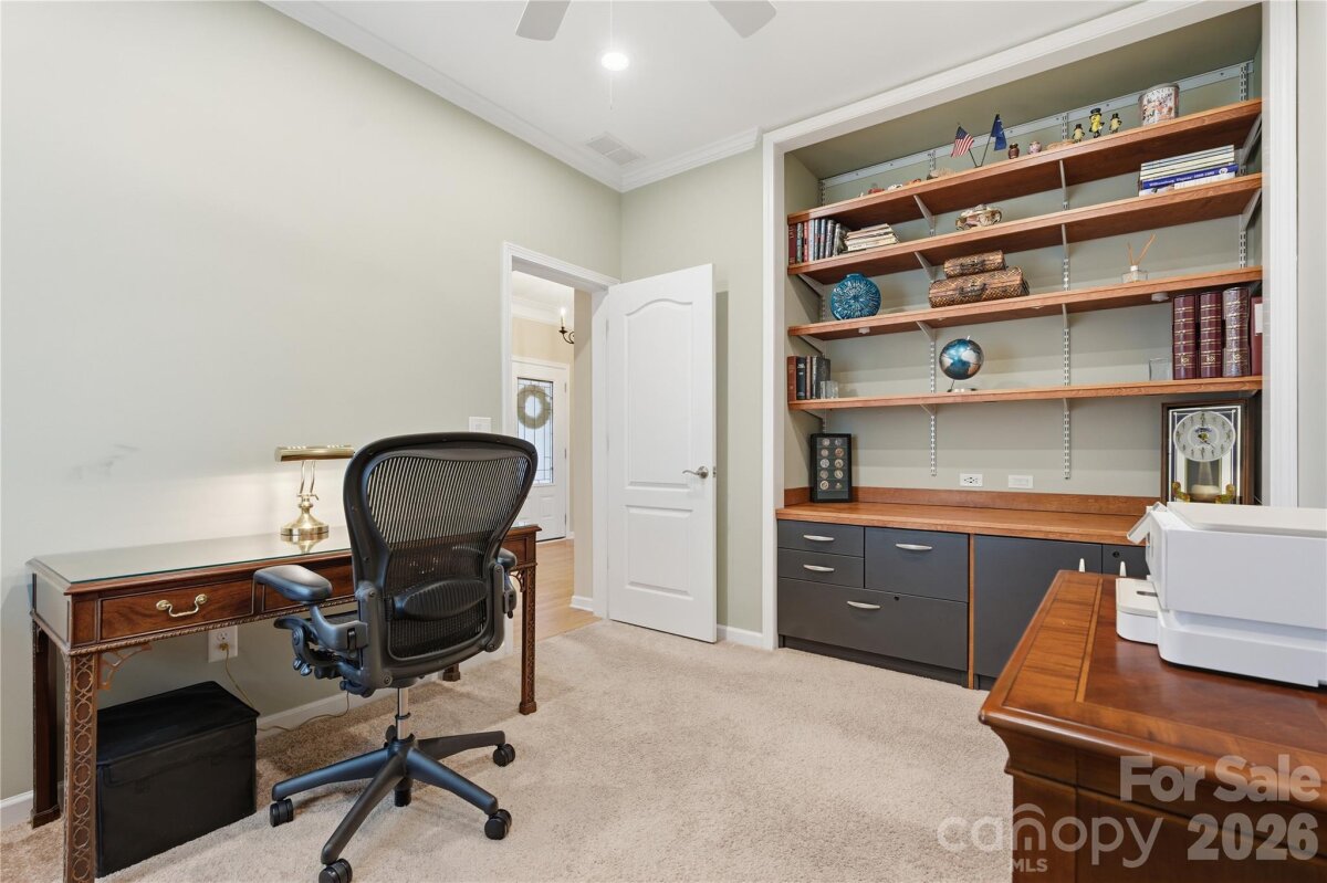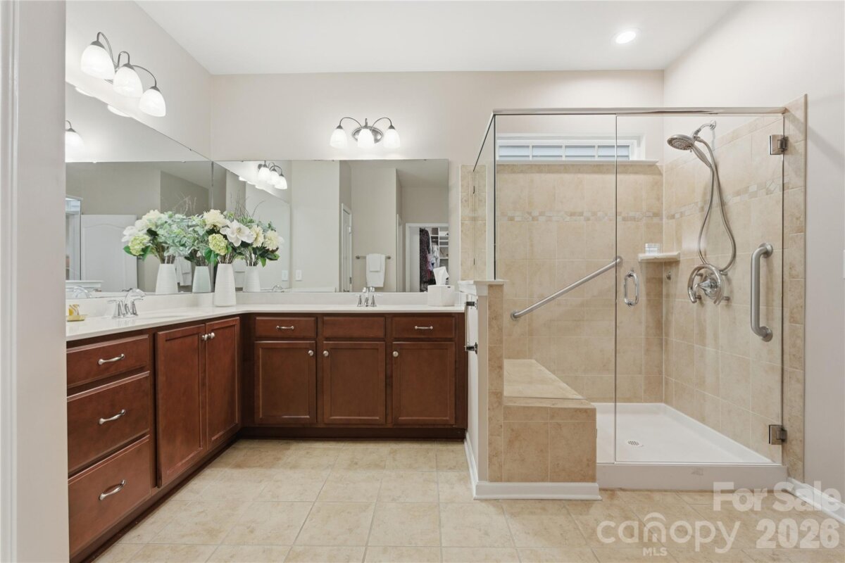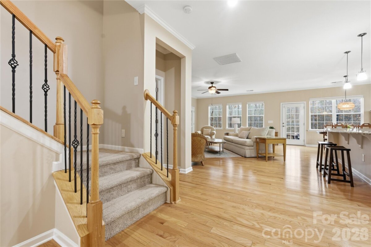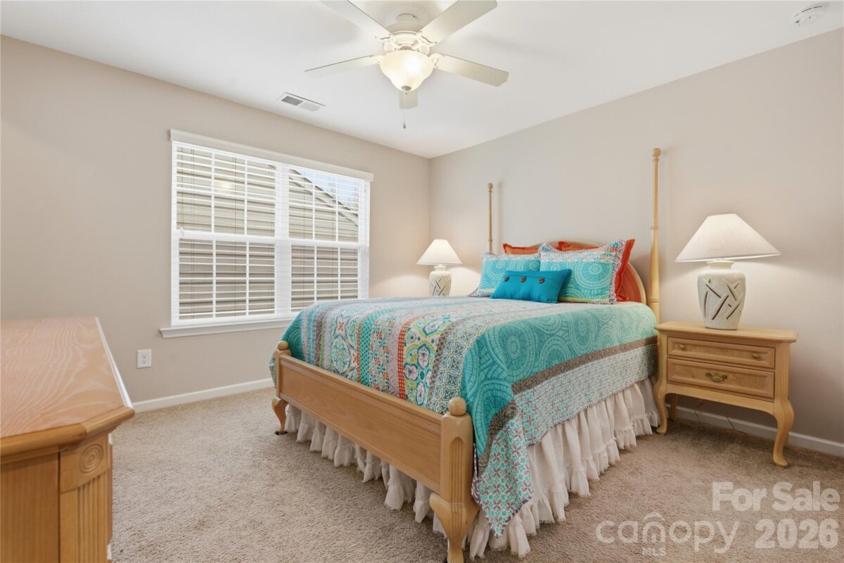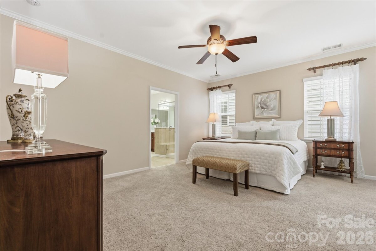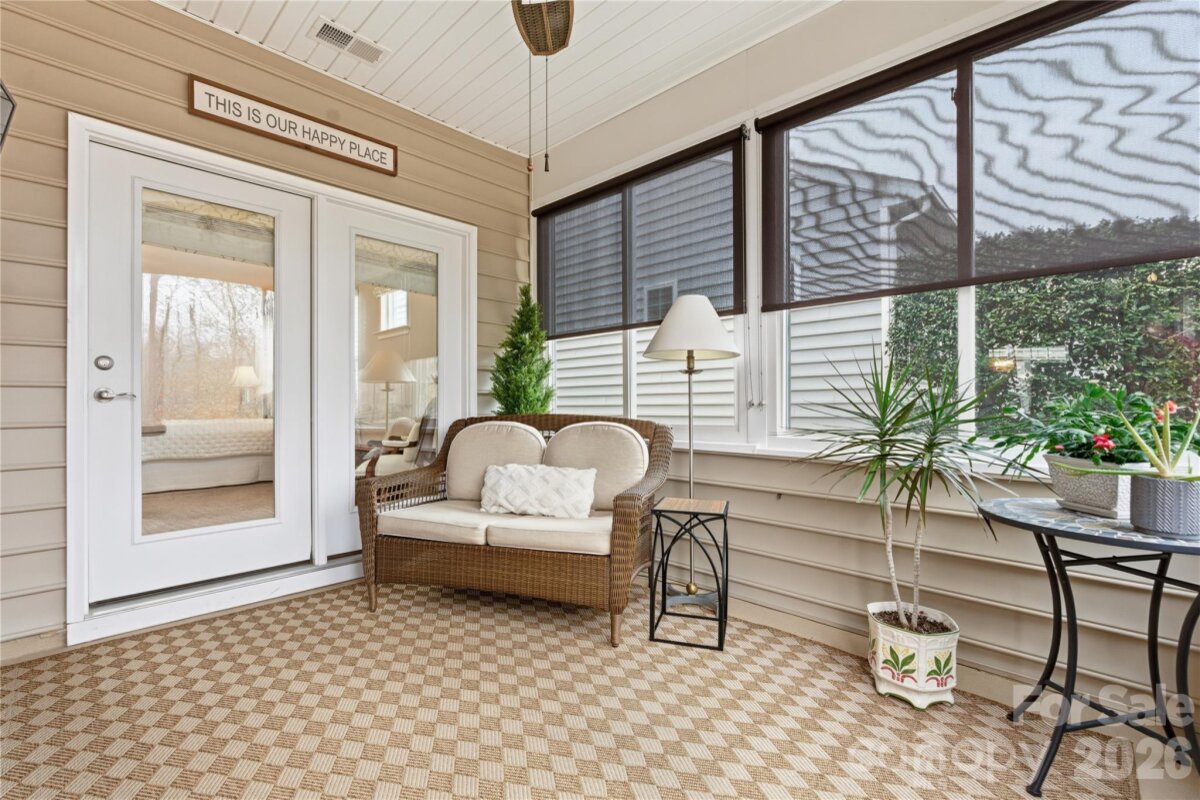 This popular and highly sought-after Dorchester 1.5-story floor plan is beautifully appointed, meticulously maintained, and designed for both comfort and style. Offering 4 bedrooms and 3 full baths with a split-bedroom layout, the open-concept design features a spacious kitchen with a large center island that flows effortlessly into the great room with fireplace and an abundance of windows, filling the home with natural light. The owner’s suite on the main level is a true retreat, complete with a private sitting room, spa-inspired bath, and a stunning custom walk-in closet system. Also on the main level are a formal dining room, two additional secondary bedrooms—one currently used as a home office—and a conveniently located laundry room near the garage with abundant storage options. Upstairs, enjoy a large loft, a private guest bedroom with full bath, and shelved walk-in attic storage—truly prime real estate. Outdoor living shines with peaceful backyard views the wooded area, offering privacy and a serene backdrop. Relax or entertain on the expansive 471-sq-ft paver patio with built-in wall seating and the trees offer nice shade. This outdoor space is easily accessed from the great room, kitchen, and three-season covered porch (with upgraded glass and screens) that also connects to owner's retreat. Residents enjoy a resort-style amenity package including a clubhouse, fitness center, outdoor pool, dog park, playground, pond, sidewalks, street lights, and walking trails, with lawn maintenance included in the HOA. Additionally, homeowners may choose to participate in a wide variety of community clubs, activities, and events, creating an engaging and active lifestyle—if desired. Nicely appointed in every way and thoughtfully cared for, this exceptional home offers comfort, convenience, and community. Just 20 minutes to South Charlotte, Ballantyne. Incredible shopping and dining options - nearby Harris Teeter, Publix, Lowes, Target and Costco! Hurry—this one won’t last!