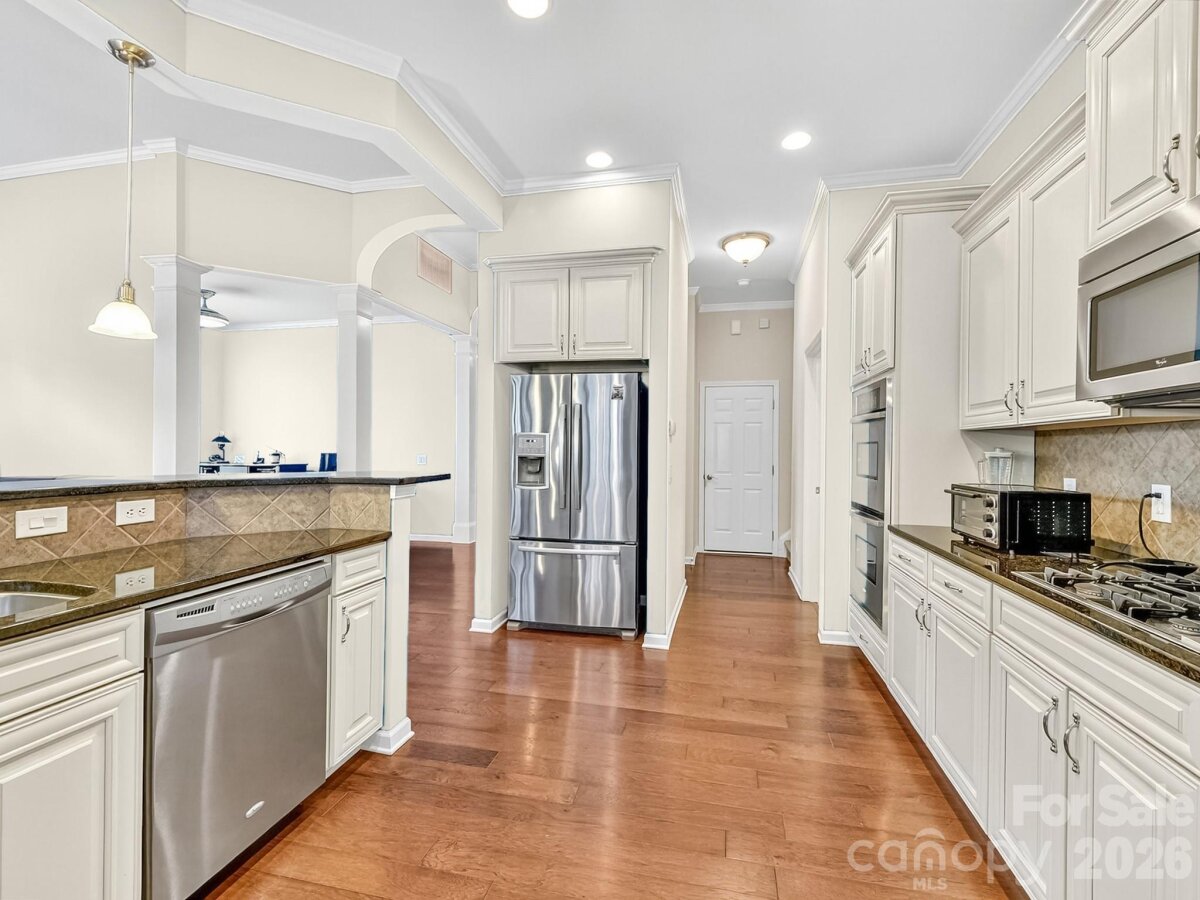 Welcome home to the highly sought-after Cobblestone community in the heart of Indian Land—perfectly positioned near shopping and dining, and just minutes to Ballantyne, Fort Mill, Waxhaw, and Tega Cay. Tucked away on a quiet cul-de-sac with county taxes only, this beautifully appointed home offers the perfect blend of luxury, comfort, and convenience. A grand entrance with soaring 10-foot ceilings and elegant arches sets the tone, complemented by hardwood floors and plantation shutters throughout much of the home. The gourmet kitchen is a chef’s dream, featuring upgraded cabinetry, granite countertops, a gas cooktop, double oven, and elegant finishes that make both everyday living and entertaining a delight. The oversized primary suite on the main level is a true retreat, showcasing a gorgeous trey ceiling, a huge walk-in closet, and serene views. The inviting living space centers around a cozy fireplace, creating a warm and welcoming atmosphere. Upstairs, a full second-floor suite offers incredible flexibility—ideal as a bonus room, guest suite, or private retreat. Step outside to enjoy the screened porch overlooking a flat backyard with tranquil pond views, enhanced by a custom retaining wall and a full irrigation system in both the front and backyard to keep the landscaping lush year-round. The epoxy-finished garage floor with utility sink adds both function and style. Community amenities include a pool, clubhouse, and vibrant neighborhood activities, and lawn maintenance is included for easy, low-maintenance living. With stone exterior accents and freshly painted front porch, screened porch, and patio, this home is truly move-in ready. An office on the main level could easily be converted into a fourth bedroom, offering even more versatility to fit your needs. Welcome Home!
