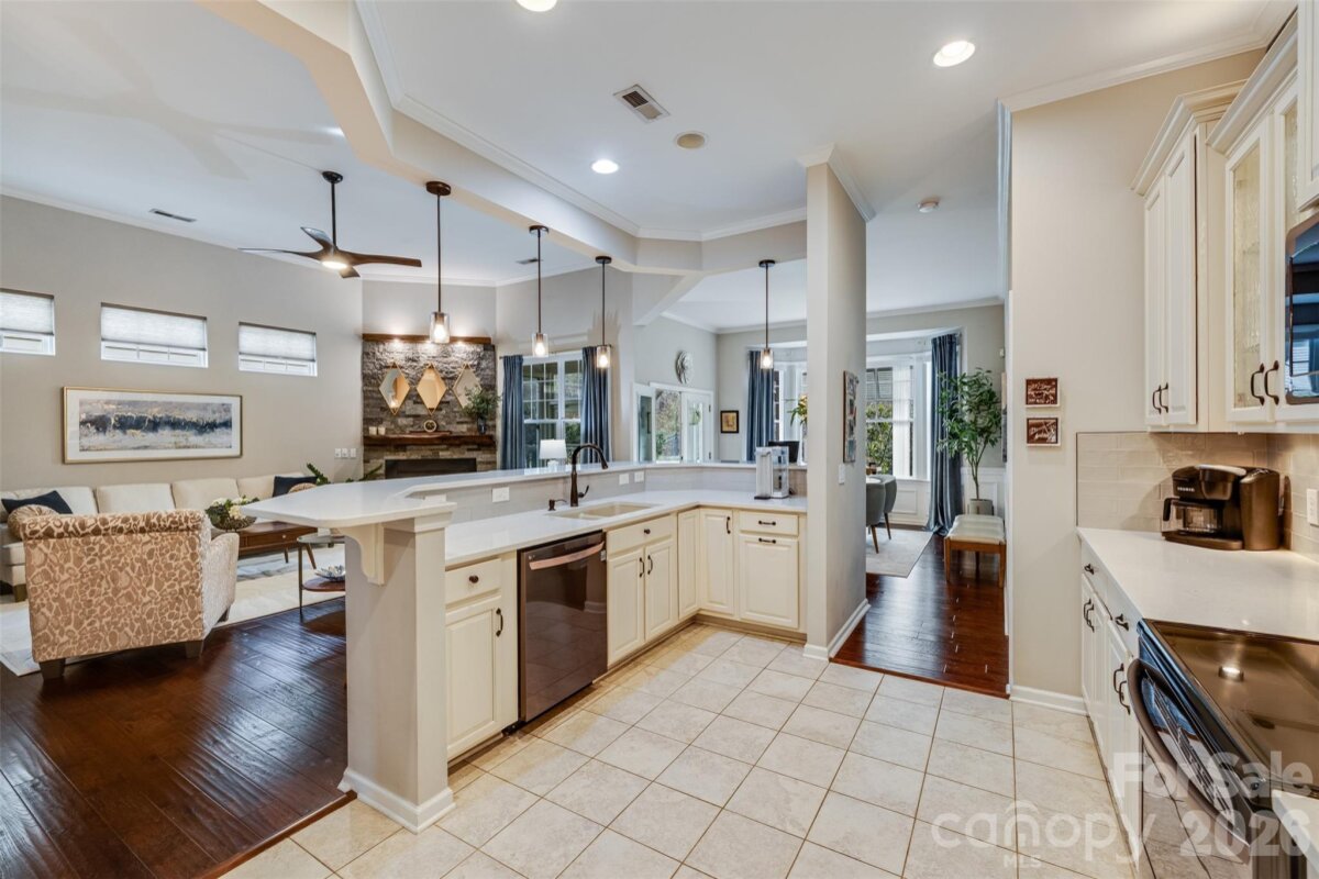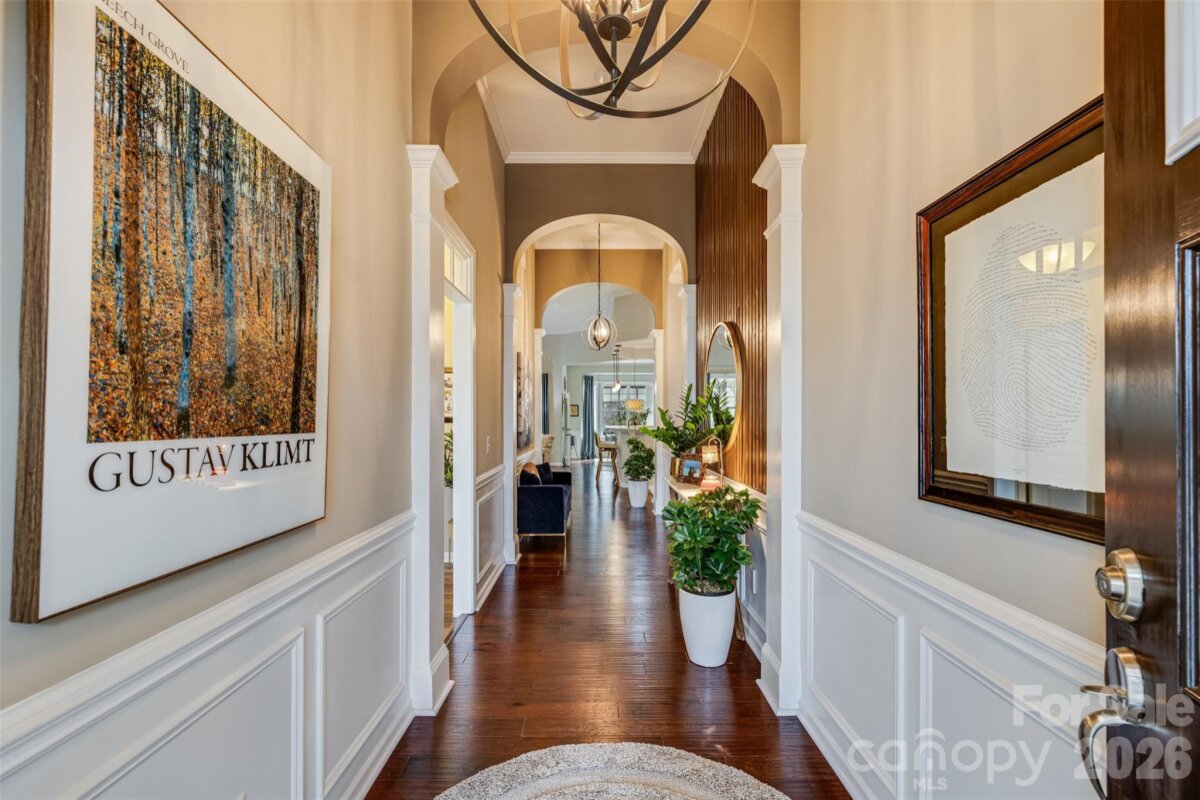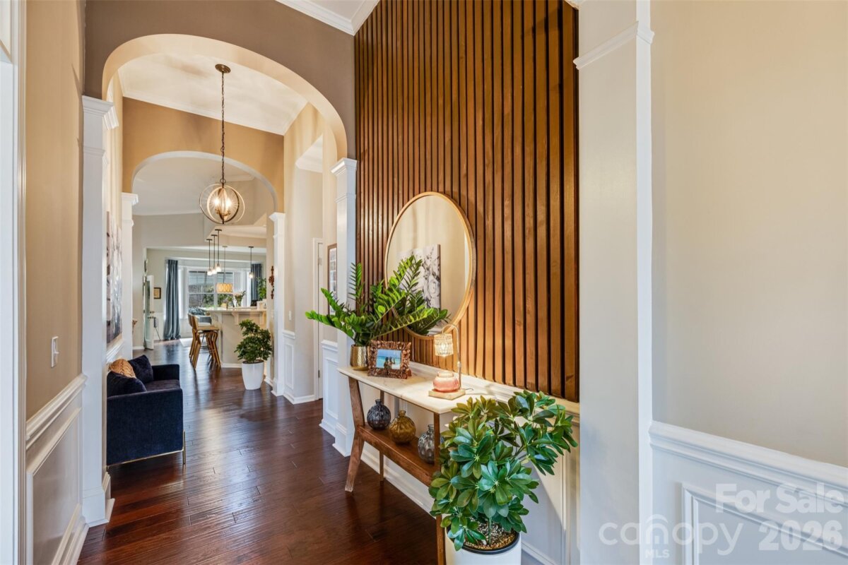 Prepare to be impressed as you enter this immaculately maintained home with thoughtful upgrades at every turn and added touches like the Japanese maple in the front yard and stamped concrete on the front porch! When you walk through the front door, you’ll be wowed by the high ceilings, beautiful arches, custom accent wall, updated light fixtures, and rich hardwood floors throughout the main living areas. The beautifully updated kitchen features light, bright cabinets with both under- and over-cabinet lighting, subway tile backsplash, SS appliances and stunning quartz countertops & sink! The kitchen is open to the high-ceilinged living room, which boasts a stone fireplace with wood mantels that adds warmth and texture, and the large breakfast room with custom moldings. Rest and relax at the end of the day in the spacious main-floor primary suite, complete with a trey ceiling and bay window. The primary bath has updated ivory cabinets, and a deep tub & frameless glass shower, leading into an over-sized custom closet. The main floor layout is thoughtfully designed to include a secondary bedroom with full bath, home office or 3rd bedroom, and laundry room. The first floor windows have all been custom-tinted for energy efficiency. Step through the French doors to enjoy a peaceful retreat on the screened porch with large sliding glass windows that can make it a 4-season room. The back yard features a stamped concrete patio with a custom-made brown cedar pergola, tea olive trees, the calming trickle of a fountain, and fully fenced yard surrounded by fragrant jasmine for enhanced privacy. Upstairs you’ll find a large bonus room that could be a 4th bedroom with a full bath, walk-in closet and extra storage. Enjoy your favorite movies with surround sound! Additional features of this home include pull-out drawers in the kitchen and primary bath cabinets, as well as the pantry; a whole-house UV air purification system; central vacuum; widened driveway for ease of parking; irrigation system; natural gas line for your grill; and the entire house is carpet-free except for the stairway. The HOA dues even include lawn care and trash removal, making this home low-maintenance. Cobblestone is a "hidden gem" in Indian Land. It's a friendly community with sidewalks and tree-lined streets, where residents enjoy the community pool with cabana, clubhouse, and picnic area. Cobblestone is conveniently located near the new Costco and Target, nearby shopping at Hobby Lobby and other stores, several grocery stores, the YMCA and other fitness facilities, tons of restaurants, as well as health care and banks. Convenient to Charlotte with low SC taxes! Showings to begin on 3/5/26!