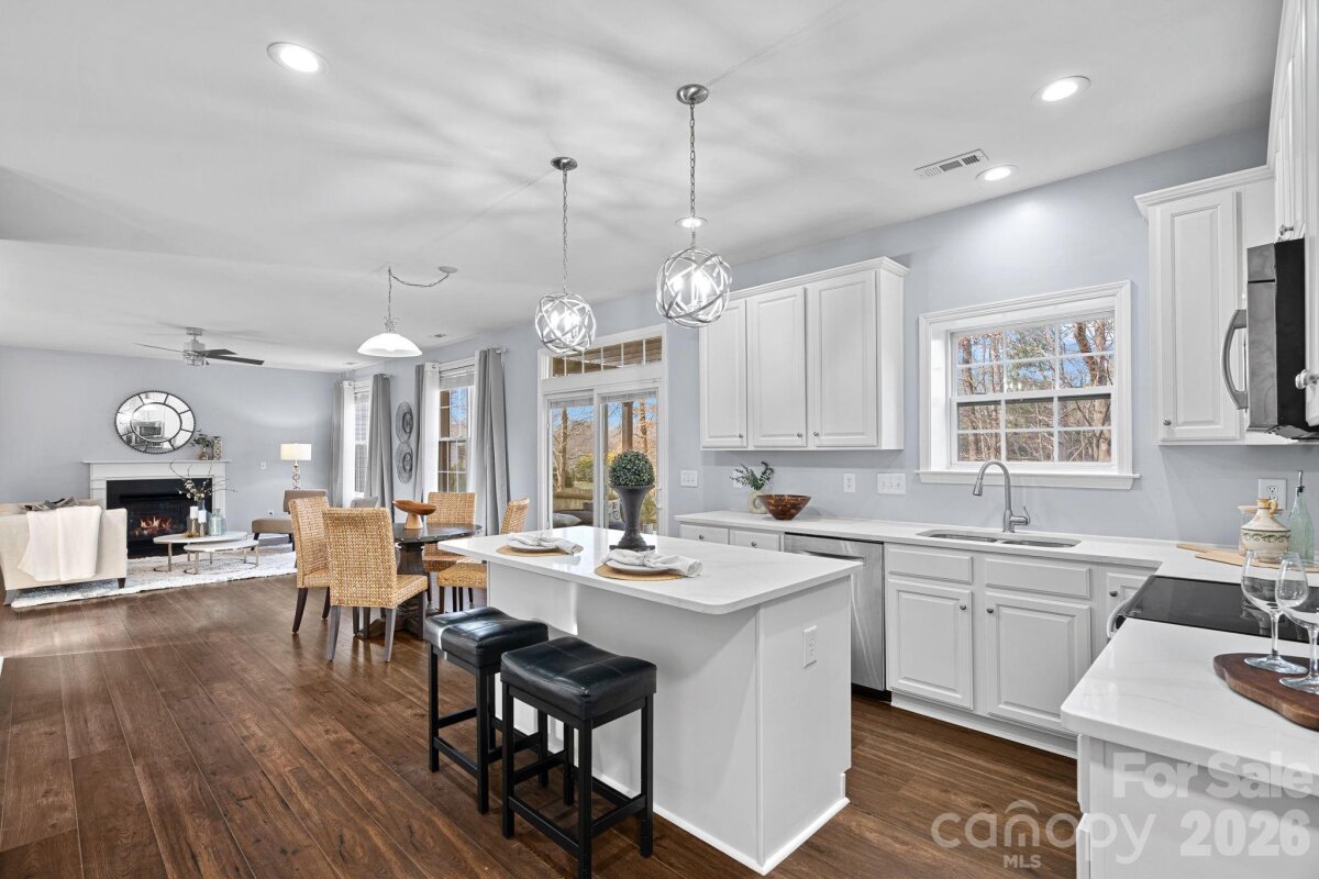 This one is special. 2017 E Foxwood Ct has been lovingly owned by the same family since it was built — the home where they raised their kids, hosted holidays, and truly enjoyed every minute. Now it’s ready for its next chapter. Located in Legacy Park and zoned for top Indian Land schools, this thoughtfully designed home offers space in all the right places. The main level features durable LVP flooring throughout, an updated kitchen with clean finishes and great workspace, and a guest bedroom with full bath nearby — perfect for visitors or a quiet home office. Upstairs you’ll find four bedrooms plus a spacious bonus room with both front and back stair access, making everyday life feel easy and connected. The primary suite is generous in size with an updated bath featuring a beautiful tiled shower and a layout that just makes sense. New carpet on the stairs and second level keeps everything feeling fresh. Out back, the fully fenced yard is ready for gatherings or quiet evenings at home. A paver patio with built-in firepit creates the perfect spot for fall nights, weekend hangouts, or simply unwinding after a long day. A well-cared-for, one-owner home in a community people love — and a floor plan that truly works for real life.