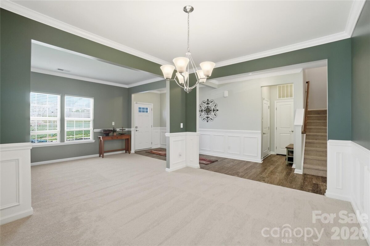 Rare opportunity in the desirable Rosemont community! This beautifully maintained 5-bedroom, 3.5-bath home offers over 3,300 square feet of thoughtfully designed living space and an incredible private backyard retreat. The main level features an open and inviting floor plan with formal living, ornate wainscoting, and dining rooms, a spacious family room overlooking the backyard, and a gourmet kitchen with abundant granite counter space, a large island, gas range, and an oversized walk-in pantry. A flexible main-level bedroom or bonus room provides the perfect space for guests, a home office, or playroom. The kitchen has been updated with a newer Bosch dishwasher and garbage disposal. Upstairs you’ll find a luxurious primary suite with tray ceilings, dual walk-in closets, and a spa-like bath. Three additional bedrooms, two full baths, and a large loft provide ample space for family living, entertaining, or additional workspace. Recent updates include new carpet in the front rooms and on the stairs, along with updated smoke detectors. Step outside to your private outdoor oasis featuring a fully rebuilt and improved deck with built-in surround sound, expansive patio, pergola-style gazebo, and fire pit seating area. The deck has been extensively upgraded with new boards, replaced joists, joist tape, and updated hangers for long-term durability. The fenced backyard offers exceptional privacy, backing to mature trees with thoughtful fencing design that minimizes views of neighboring homes. Garden enthusiasts will love the raised galvanized steel garden beds filled with premium organic soil (“Mel’s Mixâ€), along with a drip irrigation system delivering water to each bed with individual shut-off valves. Additional upgrades include a whole-home surge protector and a 280-volt outlet, providing convenience and protection for modern living. Rosemont residents enjoy fantastic community amenities including a clubhouse, pool, playground, tennis courts, sidewalks, and recreation areas—all conveniently located near shopping, dining, and Charlotte.