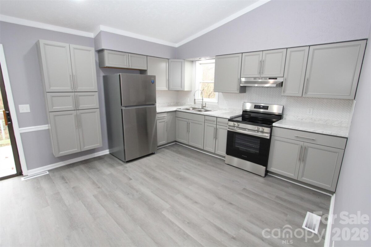 FRESHLY REMODELED RANCH-STYLE HOME WITH 1,010 SQUARE FEET, TWO BEDROOMS, AND TWO FULL BATHS! Features include new paint, luxury vinyl plank flooring, an updated kitchen with appliances, vaulted ceilings with recessed lighting, and a living room fireplace. The spacious primary bedroom offers a renovated bathroom with a new vanity, fixtures and a ceramic tile walk-in shower. The second bedroom is adjacent to the hall way bathroom. The hall way bathroom is also freshly remodeled with a new tub shower combination, vanity and fixtures. Enjoy a large rear deck just outside the dining area. Conveniently located minutes from groceries, shopping, and pharmacies, with quick access to Rockingham (20 minutes) and Monroe (35 minutes). Move-in ready!