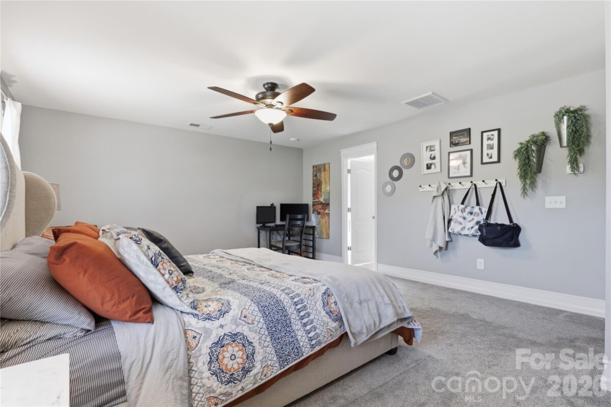 Welcome to Walnut Creek, an amenity heavy residential community near the burgeoning Ballantyne employment and shopping area south of Charlotte. This lovely home features formal living and dining rooms, a large great room with corner stacked stone fireplace and ceiling fan, an entertaining friendly kitchen with large center island, and outdoors is both an open patio and covered patio. Upstairs you will find a fabulous primary bedroom, an en-suite (2nd primary) bedroom, two secondary bedrooms, and the utility room. The third floor features the home's fifth bedroom with full bath plus a large bonus room which could be used as a home office. Lovingly improved and maintained, this home is ready for its next owner. Community pool is just a short walk down the street. Walnut Creek is approx. 868 acres built in roughly 11 sections/areas and features: clubhouse, fitness center, junior Olympic swimming pool with splash zone, playground areas, tennis and pickleball courts, walking and biking trails, ponds and greenspace, and it connects to The Carolina Thread Trail. So much to offer, so much to do and see, hurry before this stunning home is sold. Relocation paperwork will be required with offer.
