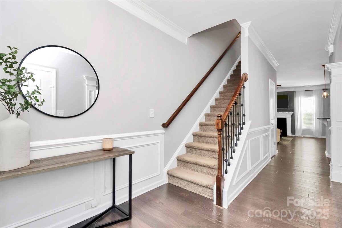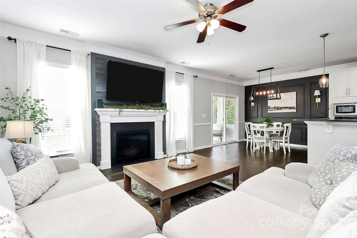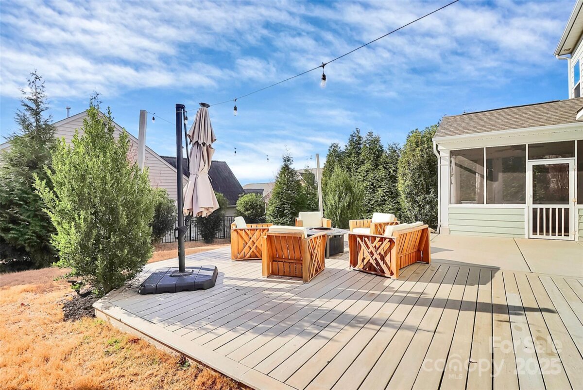 Welcome to three levels of thoughtfully designed living on a desirable corner lot—where space, style, privacy, and flexibility come together beautifully. Enhanced curb appeal is immediately evident with an extended paver driveway and walkway leading to the inviting front entry. Inside, refined architectural details shine, including wainscoting, substantial crown molding, wood flooring, and abundant natural light throughout. The main level offers exceptional functionality with a formal dining room, guest bedroom or office with full bath, and generous storage. The open living area features a gas fireplace and flows seamlessly into the breakfast area and gourmet kitchen. The kitchen is well-appointed with white cabinetry, stainless steel appliances, a large center island, under-cabinet lighting, tile backsplash, gas cooktop, and pantry—ideal for both everyday living and entertaining. The second level provides a spacious loft with access to a covered porch, along with a centrally located laundry room, two secondary bedrooms, and a full bath. The primary suite is a true retreat, showcasing a tray ceiling, accent wall, and an elegant en-suite bath with glass-enclosed shower, soaking tub, dual vanities, and a walk-in closet with custom closet system. The third floor is a standout feature, offering a large bonus or bedroom space complete with a full bath—perfect for a media room, guest suite, home gym, or private retreat. Outdoor living is just as impressive with a fenced backyard featuring a screened porch and expansive extended deck, ideal for relaxing or hosting gatherings. A rare corner-lot home with three full levels of living space and exceptional versatility—this one truly stands apart.