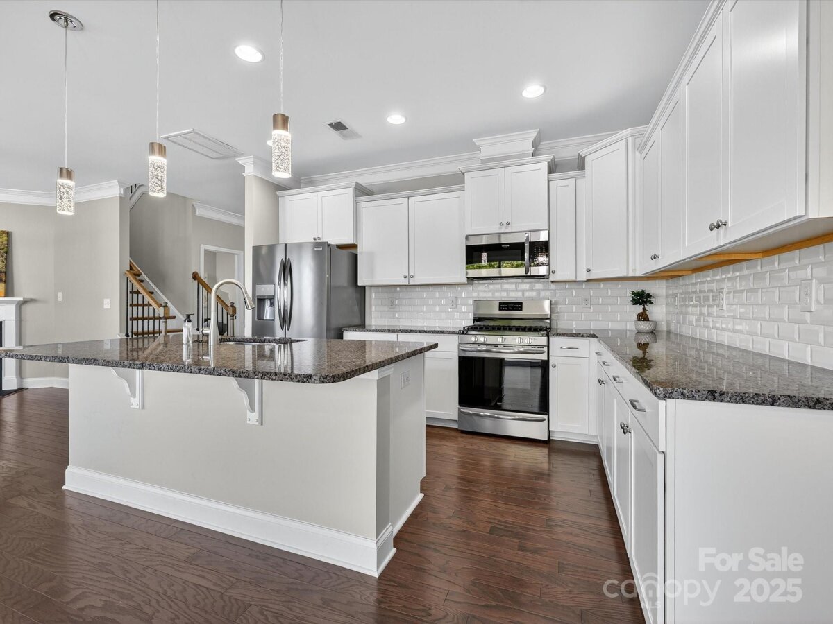Say goodbye to allergies in this immaculate, carpet free, turnkey home that’s as stylish as it is functional. Boasting 3 spacious bedrooms and 2.5 baths, this home is perfect for those seeking comfort and elegance. Highlights include crown molding, a charming covered front porch, a dedicated office space, and a generous family room that opens to an oversized kitchen complete with a gas range. The kitchen is bathed in natural light, featuring a large island, expansive countertops, and a walk-in pantry for all your storage needs. The dining area is perfect for a large table, and as you dine, you’ll enjoy views of the beautiful, fully fenced backyard. A huge patio and a concrete path connecting the front and back yards create the ideal setting for outdoor relaxation or entertainment. A half-turn staircase with elegant wrought iron spindles leads to a spacious open loft area, perfect for a second living space or playroom. The primary bedroom offers a serene retreat, with two oversized walk-in closets. The ensuite bathroom is a spa-like haven, featuring a water closet, dual sinks with granite countertops, a large soaking tub, and a walk-in shower. The second full bathroom upstairs also includes dual sinks and gorgeous granite countertops. In addition, the garage floor has been epoxied for added durability and style, and an extra closet was added just past the drop zone, providing even more storage. Whether you choose to stay in and enjoy all the beautiful features this home offers or venture out, you’ll love the convenient location—just minutes from Historic Downtown Waxhaw, the new Costco, and Target. The community also provides fantastic amenities, including pools, a pond, tennis courts, and walking trails. There are also baseball fields next to the community entrance. Don't miss this gem!