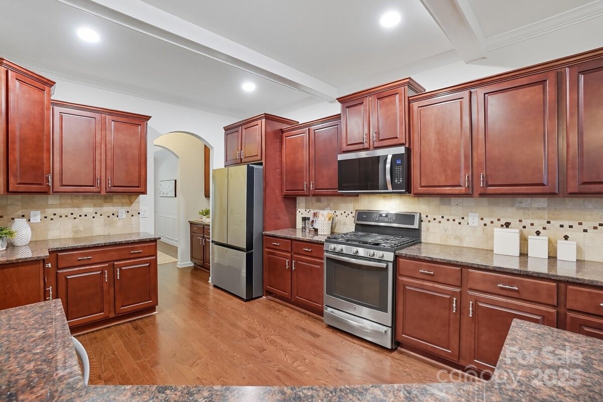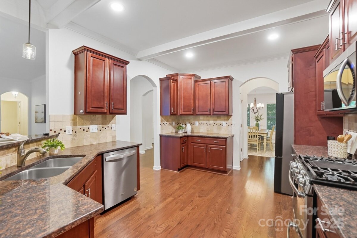 Welcome to this stunning home in the highly desirable Copper Run neighborhood, perfectly set on a private tree lined lot just under an acre. From the inviting rocking chair front porch, step inside to find fresh paint, new carpet, gleaming hardwood floors, and arched doorways that add timeless character. The spacious kitchen features granite countertops, stainless steel applicances, a butler’s pantry, tile backsplash, and cabinets galore! The main level also includes a light filled living room with a cozy fireplace, gracious dining room with wainscoting, a dedicated office, walk-in laundry, convenient drop zone and an expansive primary retreat with dual walk-in closets and a spa inspired bath. Upstairs, you’ll discover three spacious secondary rooms, two full baths with granite countertops and linen closets, a versatile bonus/rec room, and a walk-in storage area with built in shelving. Outdoors, enjoy a brand new screened in porch, perfect for morning coffee or evening conversations while overlooking the fully fenced in, landscaped yard. Follow the hidden trail to the firepit, where you can roast marshmallows under the stars, or let kids play in the dedicated play area. A storage shed and wifi irrigation adds convenience, while a four car garage with overhead storage, a high-lift garage door system, and an extra bay perfect for a boat makes room for every hobby. With neighborhood access to the scenic Mineral Springs Greenway and an ideal location between quaint downtown Waxhaw and shopping in Wesley Chapel, this home offers not just a place to live, but a lifestyle,whether you’re hosting gatherings, relaxing on the porch, or making memories by the fire. Don't miss out on this gem, schedule your appointment today!