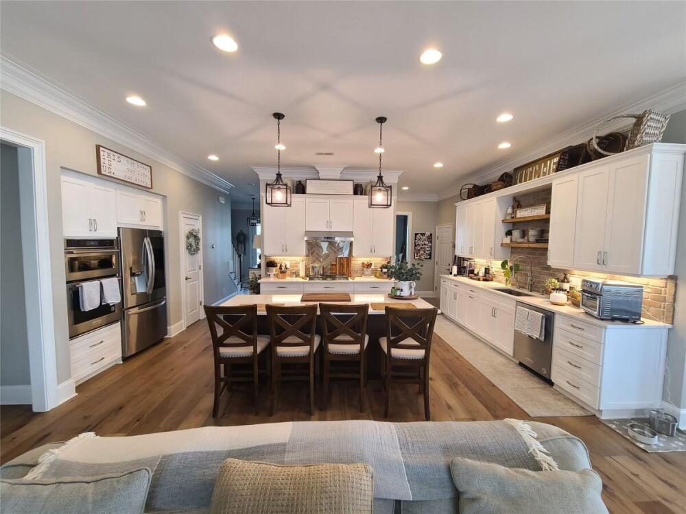 Charleston style Cunnane home with a great open floorplan ideal for entertaining. Large rear screened-in porch with high ceiling, side screened-in porch as well to enjoy the beautiful NC weather. This home boasts heavy molding throughout, new hardwood flooring, updated kitchen with quartz counter tops, huge island, custom cabinetry, shiplap and feature walls, 10ft main floor ceilings, 9ft ceilings on second floor, large primary closet, upgraded glass shower enclosure, office on main floor, 2nd floor spacious bedrooms with ensuite bathrooms, walk-in storage space, good sized garage, driveway parking for 5 cars, and more! All of this within minutes of 5 supermarkets, minutes to historic downtown Waxhaw, outstanding school district, and more.
