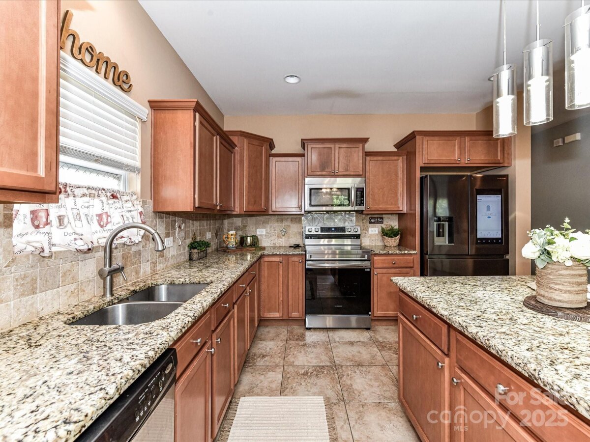 Discover the perfect blend of comfort and function in this inviting two-story home on a cul-de-sac corner lot. With 5 spacious bedrooms and 3 full baths, there’s room for everyone. Step inside to a beautiful open floor plan concept with a formal living room leading into the kitchen/family room area. The open layout allows the kitchen with center island and pendant lighting to flow seamlessly into the living and dining area—ideal for everyday living and entertaining. A main-level guest suite and full bath provides the perfect retreat for visitors. Upstairs, the generous primary suite is complemented by three additional bedrooms, a versatile loft with walk-in closet, and abundant storage throughout. Enjoy evenings on the covered front porch and mornings on the back patio overlooking a magnificent backyard. Spacious 2-car garage plus a handy drop zone near garage entrance. This home’s thoughtful floor plan and plentiful closet space make it easy to see yourself living here. Additional features include granite countertops, food pantry, abundant cabinet & counter space and stainless appliances in kitchen. Upstairs bathroom was renovated with new vanity, quartz countertops and tile floors. Water filtration system. Water heater 2019. This is a must see!