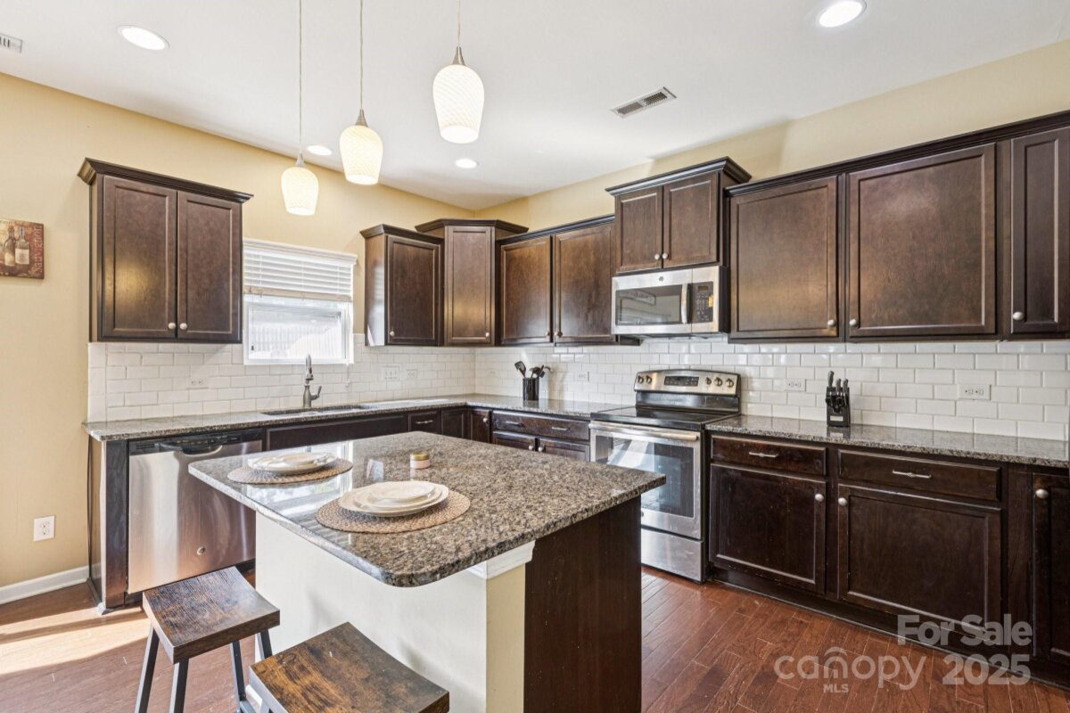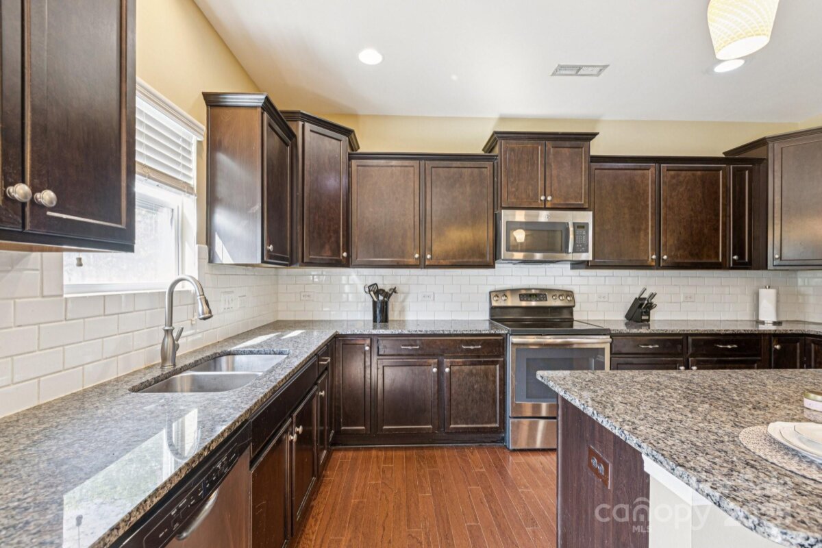Great location in Matthews! This approximately 3,260 square foot house features five bedrooms and three bathrooms. The spacious exterior is enhanced by lush landscaping, creating an inviting entryway. The home's layout is designed with abundant natural light, offering an open concept. The inviting living area features a fireplace and an open concept design, providing a seamless flow between the living room, dining room, and kitchen. New carpet added downstairs. The kitchen is equipped with modern stainless appliances and abundant cabinetry, offering ample storage and preparation space. The bedrooms are spacious, with ample natural lighting and a neutral color palette with ceiling fans in every room. Freshly painted bedrooms. The primary bedroom is generously sized, while the additional bedrooms provide flexible space for various uses such as an office or workout room. Large walk in closets compliment the bedrooms. The bathrooms feature elegant tile work, contributing to the home's overall sophisticated aesthetic. The backyard is completely fenced in with 2 entry points at each side of the property creating a wonderful area for backyard activities. Schedule your showing today!