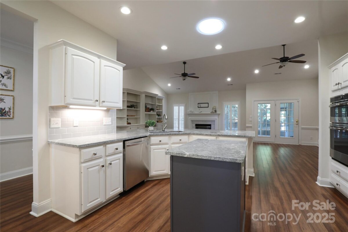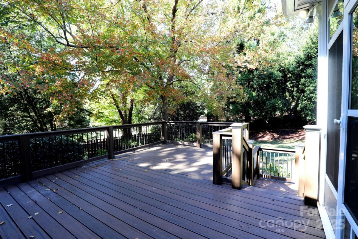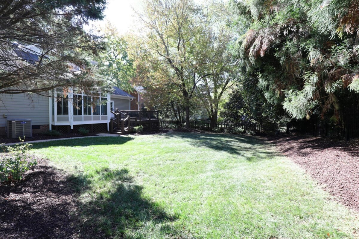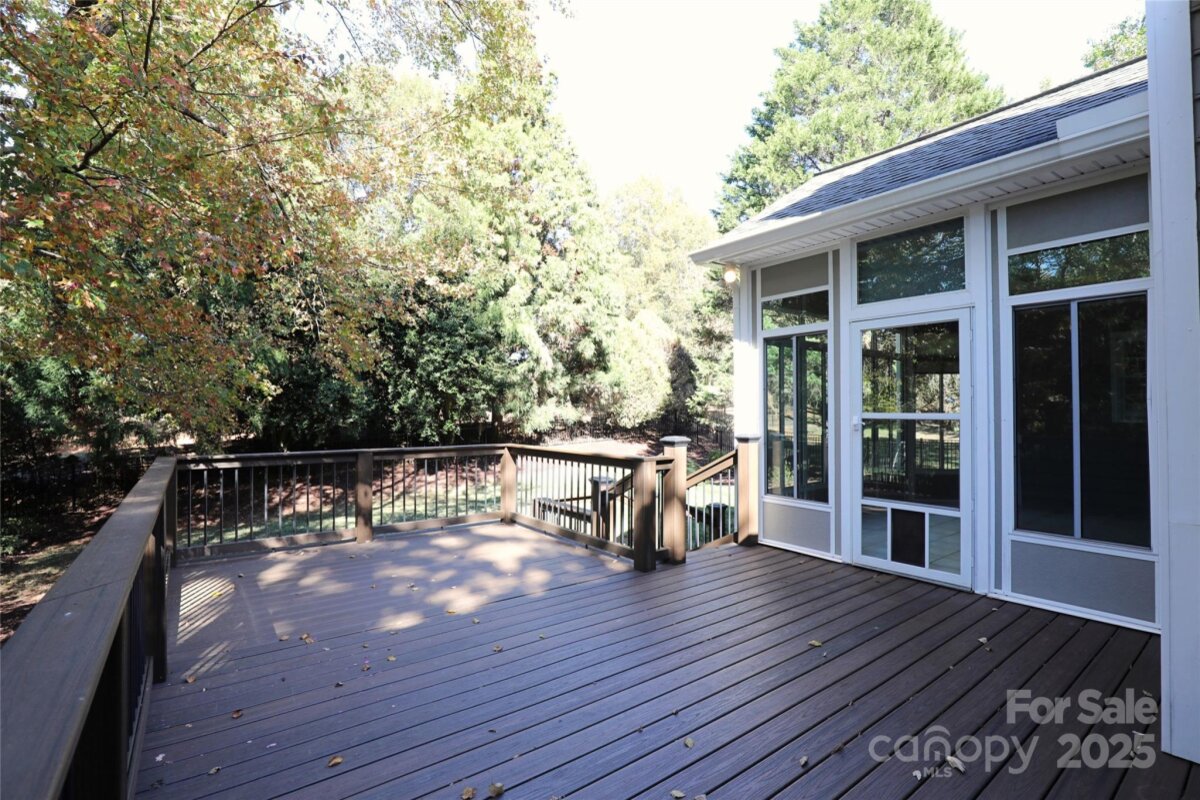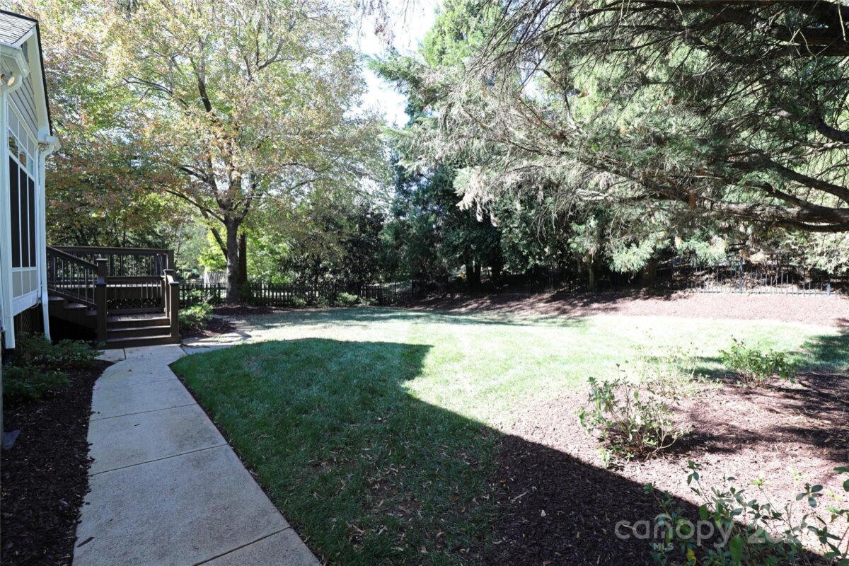 Very hard to find 4 bedroom / 2 bath ranch home with office features top-level finishes and upgrades in desirable Hunter Oaks! Beautifully updated flooring in all living and bedroom areas welcome as you enter the spacious foyer. French doors lead to office with updated recessed lighting. Gorgeous open kitchen with ample counter space and cabinetry plus gorgeous upgraded granite and deep single-basin sink with bar seating. Solar tube added in kitchen to bring in additional natural light with night-light option. Spacious living room centers the home with built-ins, gas log fireplace, and beautifilly connects this split-bedroom plan. Primary suite with trey ceiling and upgraded bath with walk-in shower, dual shower heads, towel warmer, and more! All windows upgraded with plantation shutters and sunroom windows upgraded with custom roller shades. 21 x 21' garage with epoxy floor (2021). Replaced existing deck with Trex and extended with new stairs (2023). New aluminum fence (2022). Tankless water heater (2021). Whole house water filtration (2021). Updated with beautiful landscaping and uplighting added to compliment irrigation system already in place. HVAC system updated (2022). Encapsulated crawl space (2022). Gutters upgraded to new 6" gutters and gutter guards (2022). Electrical panel upgraded (2025). All windows screens replaced (2022). Google Fiber available. Just minutes from Blakeney and Waverly shopping and restaurants. Beautiful neighborhood amenities and walking trails.