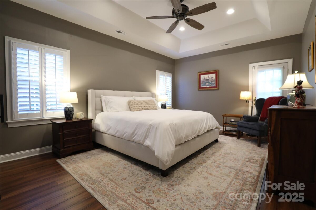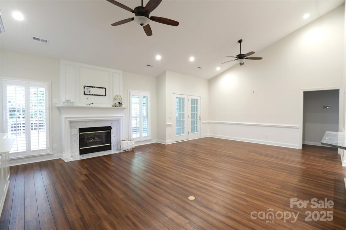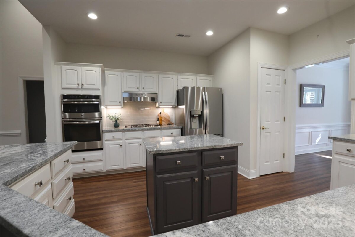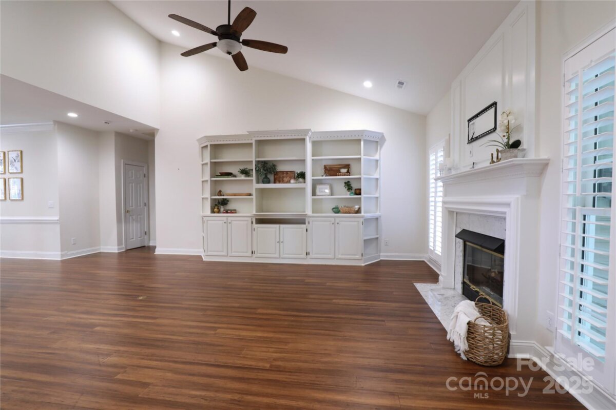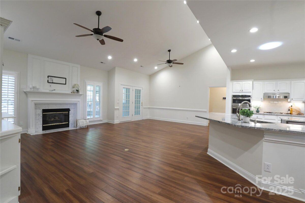 Very hard to find 4 bedroom / 2 bath ranch home with office features top-level finishes and upgrades in desirable Hunter Oaks! Beautifully updated flooring in all living and bedroom areas welcome as you enter the spacious foyer. French doors lead to office with updated recessed lighting. Gorgeous open kitchen with ample counter space and cabinetry plus gorgeous upgraded granite and deep single-basin sink with bar seating. Solar tube added in kitchen to bring in additional natural light with night-light option. Spacious living room centers the home with built-ins, gas log fireplace, and beautifilly connects this split-bedroom plan. Primary suite with trey ceiling and upgraded bath with walk-in shower, dual shower heads, towel warmer, and more! All windows upgraded with plantation shutters and sunroom windows upgraded with custom roller shades. 21 x 21' garage with epoxy floor (2021). Replaced existing deck with Trex and extended with new stairs (2023). New aluminum fence (2022). Tankless water heater (2021). Whole house water filtration (2021). Updated with beautiful landscaping and uplighting added to compliment irrigation system already in place. HVAC system updated (2022). Encapsulated crawl space (2022). Gutters upgraded to new 6" gutters and gutter guards (2022). Electrical panel upgraded (2025). All windows screens replaced (2022). Google Fiber available. Just minutes from Blakeney and Waverly shopping and restaurants. Beautiful neighborhood amenities and walking trails.