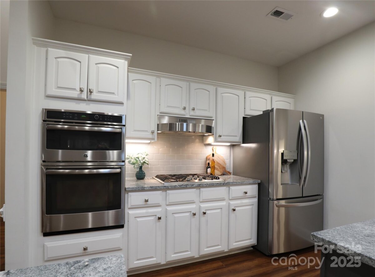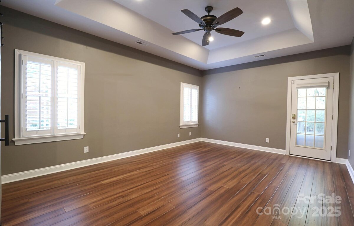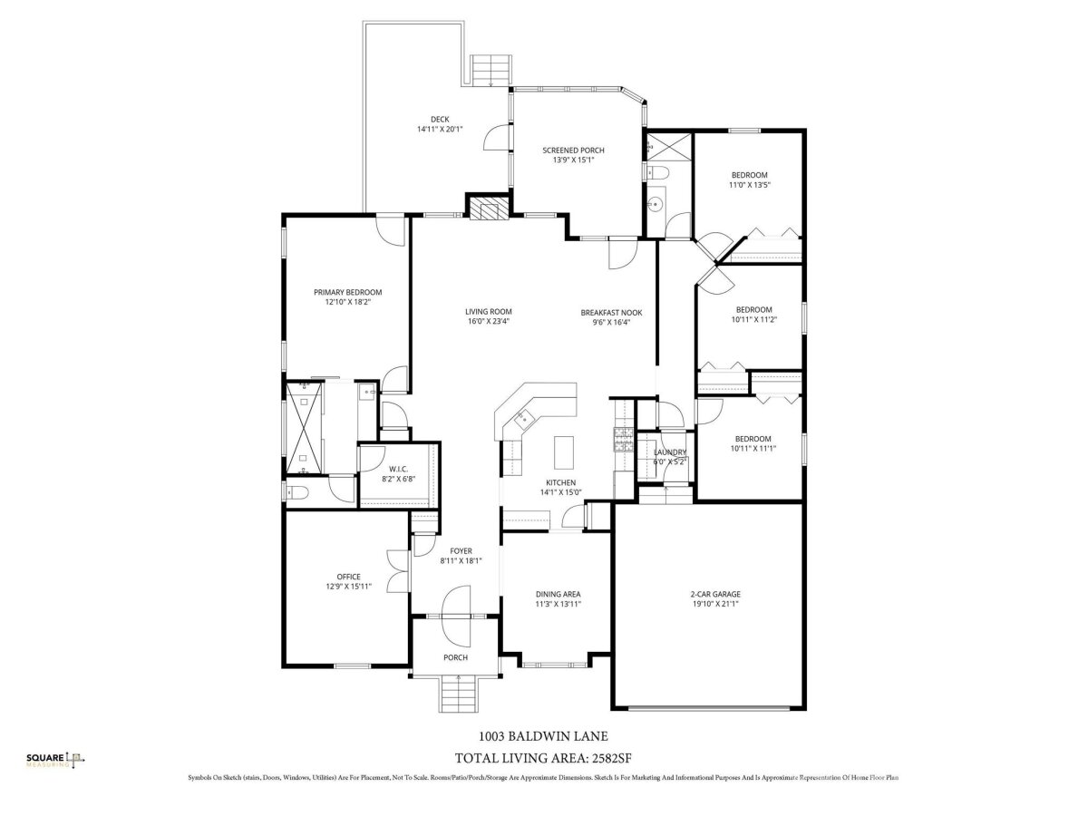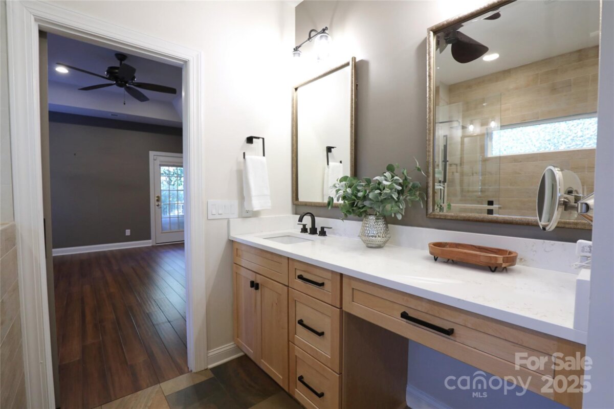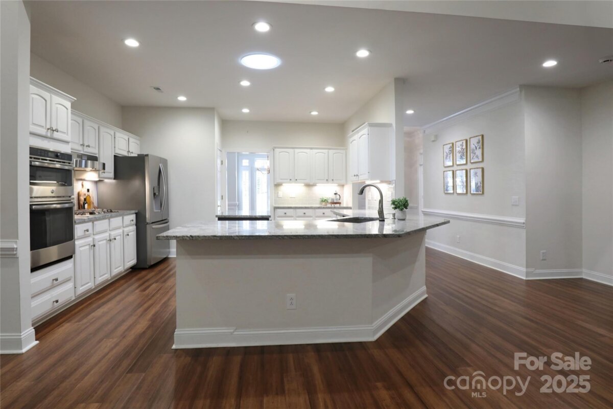 Very hard to find 4 bedroom / 2 bath ranch home with office features top-level finishes and upgrades in desirable Hunter Oaks! Beautifully updated flooring in all living and bedroom areas welcome as you enter the spacious foyer. French doors lead to office with updated recessed lighting. Gorgeous open kitchen with ample counter space and cabinetry plus gorgeous upgraded granite and deep single-basin sink with bar seating. Solar tube added in kitchen to bring in additional natural light with night-light option. Spacious living room centers the home with built-ins, gas log fireplace, and beautifilly connects this split-bedroom plan. Primary suite with trey ceiling and upgraded bath with walk-in shower, dual shower heads, towel warmer, and more! All windows upgraded with plantation shutters and sunroom windows upgraded with custom roller shades. 21 x 21' garage with epoxy floor (2021). Replaced existing deck with Trex and extended with new stairs (2023). New aluminum fence (2022). Tankless water heater (2021). Whole house water filtration (2021). Updated with beautiful landscaping and uplighting added to compliment irrigation system already in place. HVAC system updated (2022). Encapsulated crawl space (2022). Gutters upgraded to new 6" gutters and gutter guards (2022). Electrical panel upgraded (2025). All windows screens replaced (2022). Google Fiber available. Just minutes from Blakeney and Waverly shopping and restaurants. Beautiful neighborhood amenities and walking trails.