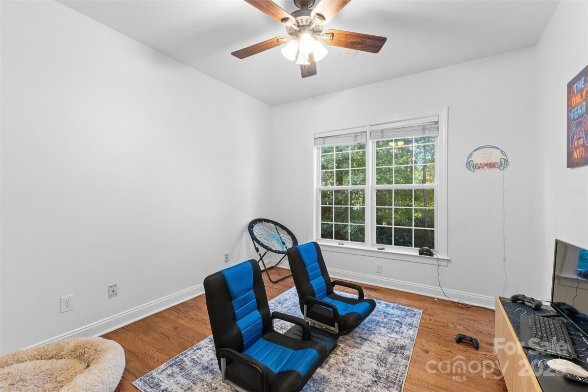 Beautiful 4-bedroom house with a bonus room on a cul-de-sac in Hunter Oaks subdivision. Office and den / extra room on main. Kitchen with island, pantry and gas stove top. Master bedroom with decorative woodwork and barn door. Master bath with garden tub, dual vanities and oversized frameless shower. Hardwoods throughout main level, custom drop zone, screened in porch and large private wooded lot. Encapsulated crawl space. Community has two pools - one on each side, club house, tennis courts, playgrounds and walking trails. Surround sound doesn't work.