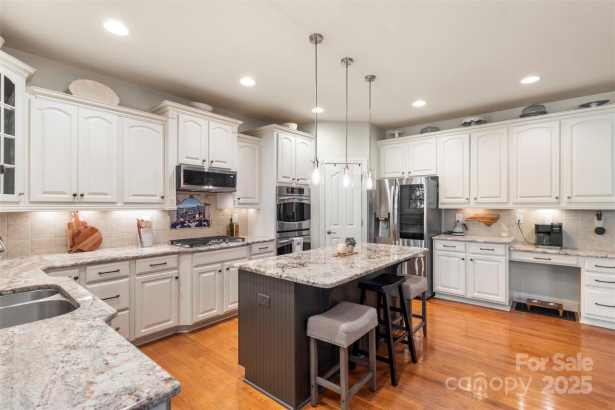 Welcome home to this gorgeous gem in the highly desirable Lawson community, served by top-rated Cuthbertson schools! A spacious front porch sets the tone before stepping inside to gleaming hardwoods and an upgraded kitchen with granite, a large island, and sun-filled charm. The open-concept design blends seamlessly with a formal office, dining room, and guest suite on the main. Upstairs, discover a huge bonus room and four bedrooms, including a dreamy primary retreat with THREE walk-in closets—one large enough for a vanity. Move-in ready with countless recent upgrades including a new roof, furnace, water heater, and much more (see the attached PDF for ‘Recent Updates & Improvements’), this home is perfect for both everyday living and entertaining. Step outside to your massive, covered porch and oversized deck with wooded views on a generous lot. Lawson’s resort-style amenities include pools, playgrounds, fitness centers, tennis, trails, and more!