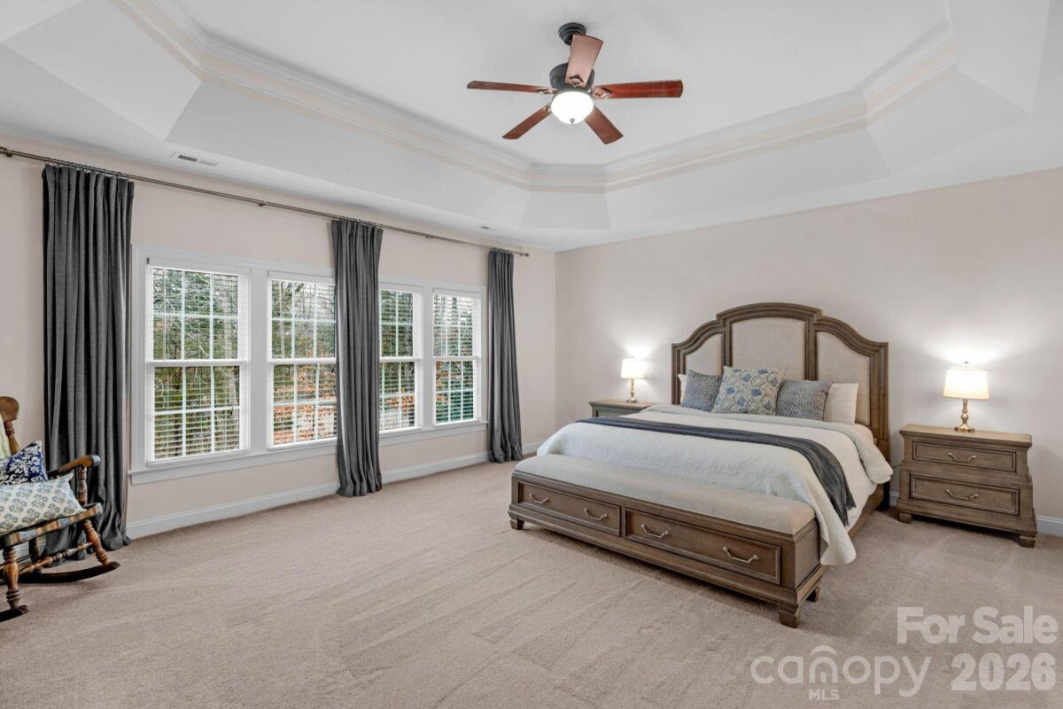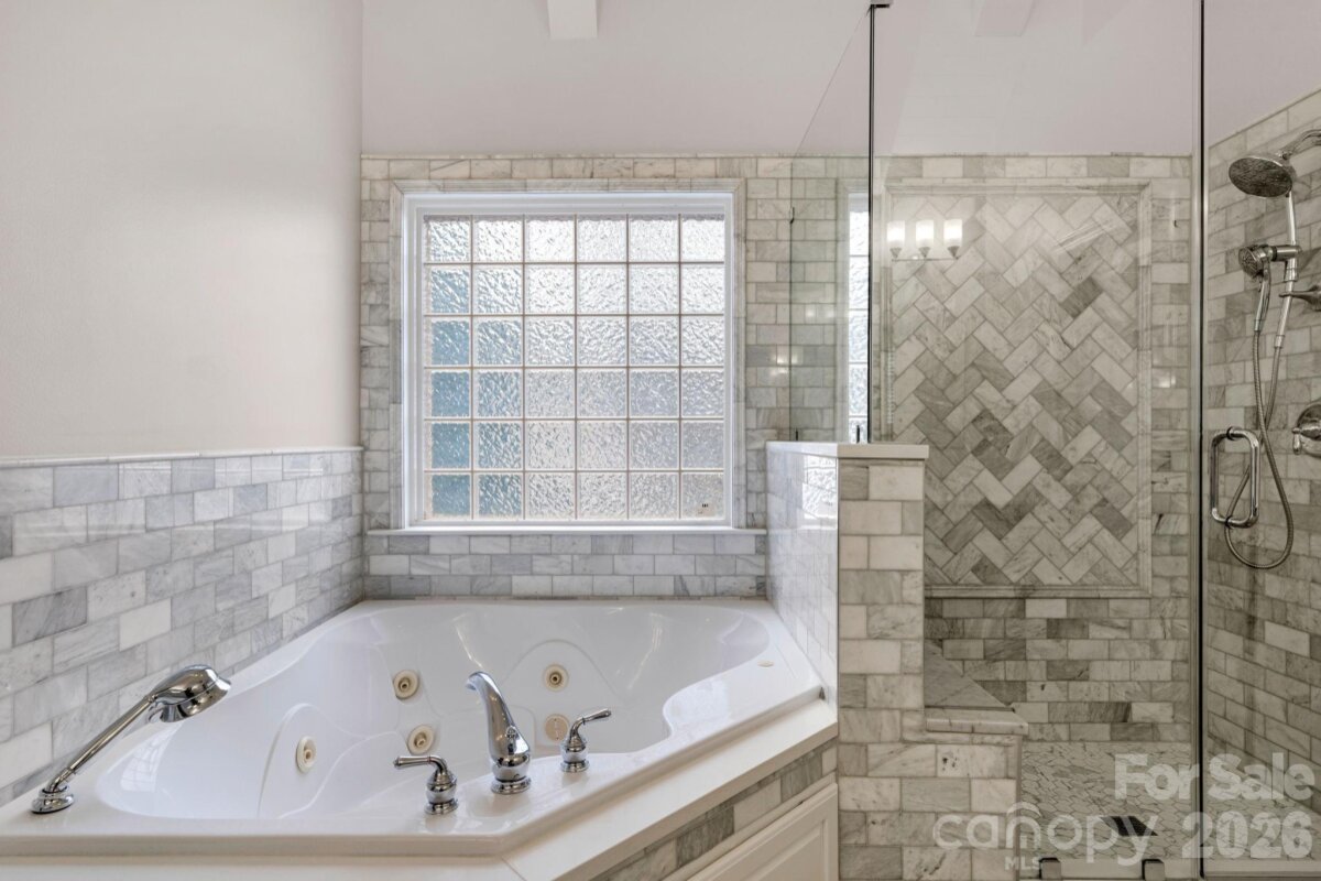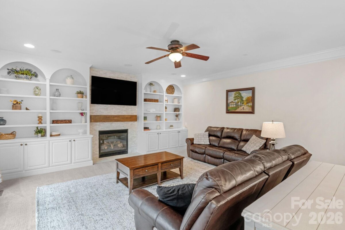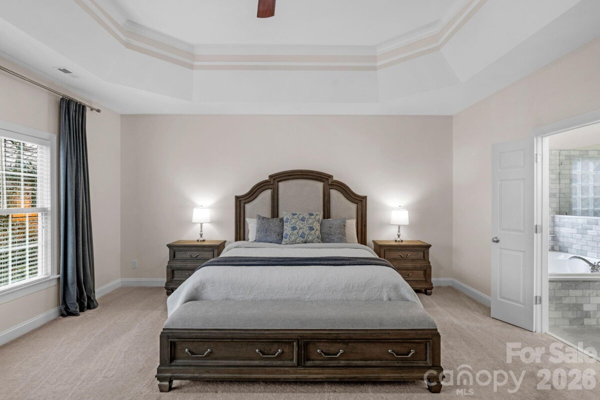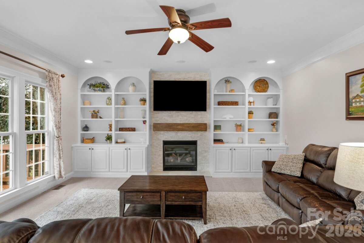 This stunning home is truly turn key! NO REAR NEIGHBORS and just steps from the amazing community amenities that Lawson has to offer. Resort style amenities include: a clubhouse, pools, fitness centers, playgrounds, tennis and pickleball courts, walking trails and so much more! Zoned for Cuthbertson Schools. Thoughtfully upgraded with fresh paint, new light fixtures, and custom touches throughout. The dramatic 2 story foyer sets the tone as you enter. Formal living room features a coffered ceiling and leads into the large dining room- perfect for entertaining. The chef's kitchen has a new 5 burner gas cooktop, dishwasher and refrigerator. You will also love the double ovens, granite countertops and new marble backsplash! Gorgeous white cabinets and counter space galore ensure plenty of room for meal prep. A niche style charging station for devices was added for extra convenience as well. The breakfast nook and large family room- allows plenty of room to spread out. The family room has built-ins and a custom marble stone fireplace and new mantle. Surround sound system will convey. The downstairs bedroom and full bathroom offer guests a space of their own. Not to be missed is the downstairs laundry and mudroom with cabinets, a drop zone and even more storage! Upstairs the huge primary bedroom and upgraded en-suite bathroom is a showstopper! A true spa like retreat - it boasts mixed metal fixtures, a double vanity with abundant cabinet space, separate stall shower with marble tile and a lighted niche too! Don't forget the jacuzzi tub. It gets better- as you enter the massive closet you will see custom built-ins that your closet dreams are made of! Also upstairs there are 3 additional bedrooms and 2 full bathrooms - one Jack and Jill style. The large upstairs bonus room with custom built-ins and included beverage refrigerator, has an 85 inch TV and surround sound system that will convey as well! Watch your favorite team or screen movies- you choose! The 3 car garage has a separate workshop space, a utility sink and a pedestrian door. Overhead storage racks will convey. The wooded area with fire pit and seating to the right of the driveway is part of this property! Make sure you check it out- perfect spot to hang out with neighbors or watch the sunset. Outside the screened back deck leads to the open air deck and included hot tub for ultimate relaxation. In-ground irrigation in front and back yard will keep your grass looking great. Fully fenced backyard. This well maintained and beautifully updated home is ready for you! New roof 2024. 2 New HVAC 2021 and 2025. New water heater 2023. No work needed- it's already done!