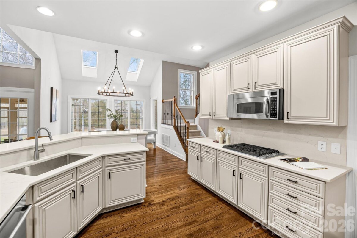 One of the best locations in Marvin Creek! Enjoy the peace and quiet of a private cul-de-sac lot within walking distance to elementary school & bus stop. This beautifully updated home features a whole house Generac generator powered by natural gas, site finished hardwoods on main, new carpet & paint throughout, and a fully finished walk-out basement on a .74 acre lot. 2 story family room is open to an updated kitchen which features stainless steel appliances, double wall oven, quartz counter tops, light cabinets and large walk in pantry. Enjoy seamless indoor/outdoor living in the custom 3 season porch featuring a wood burning fireplace w/gas fired log starter, & Eze Breeze windows. Primary bedroom located on main level features a fully renovated bathroom with spacious shower, freestanding soaking tub, separate vanites and walk-in closet w/built in shelving. Either of the two staircases lead to the upstairs where you will find a large bonus room & 3 secondary bedrooms, one with ensuite bathroom and 2 sharing a Jack/Jill bathroom. The basement has a what can be a large bedroom with ensuite bathroom or office, bar area for entertaining and open area for media or play, great for guests. Conveniently located to schools, shopping, entertainment and restaurants in Blakeney & Waverly, this one is not to be missed! Basement bedroom does not have egress.